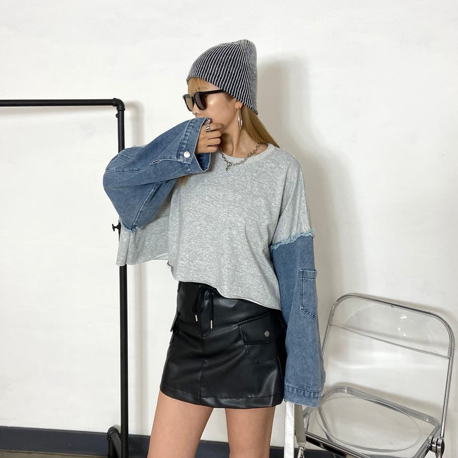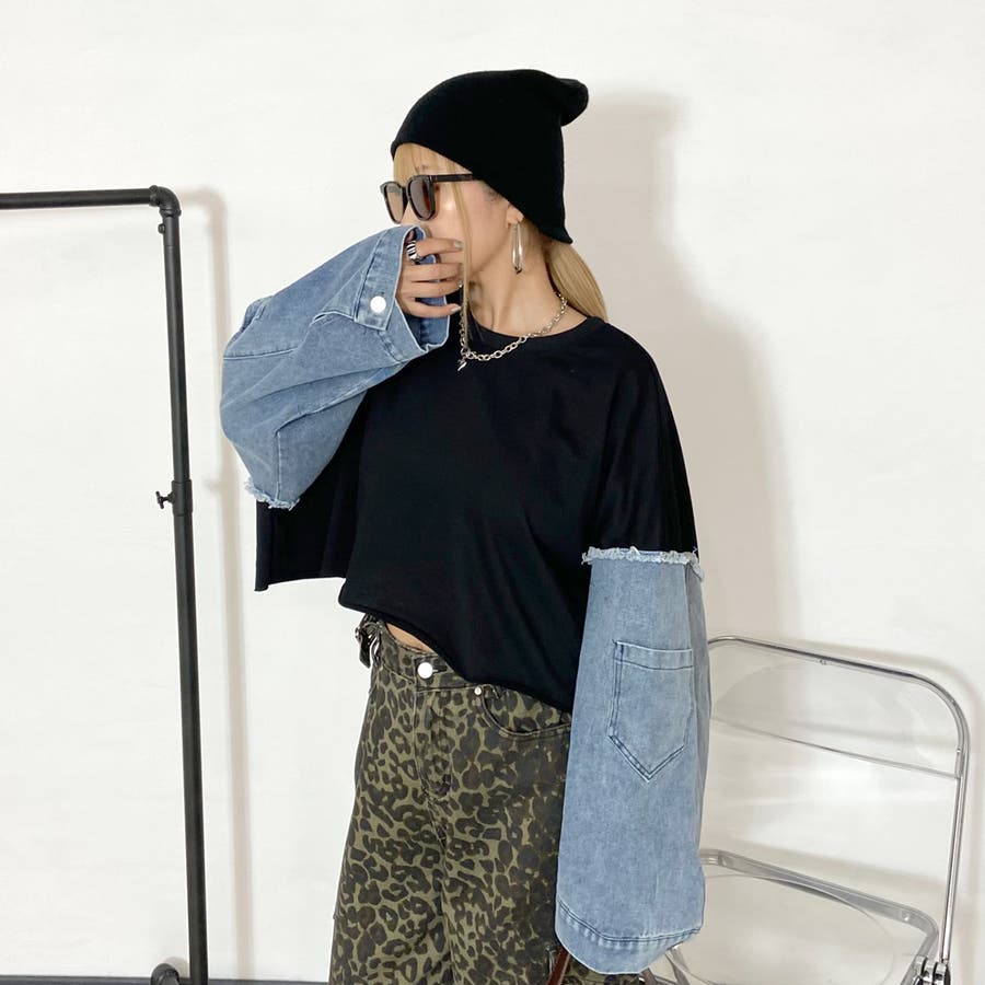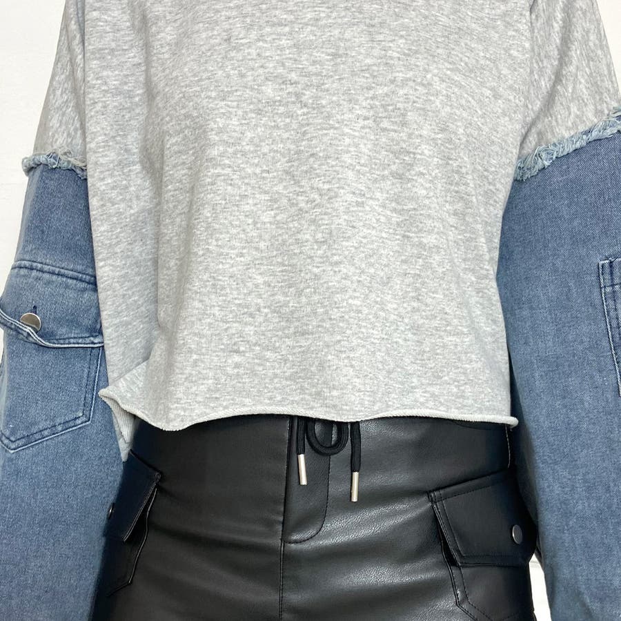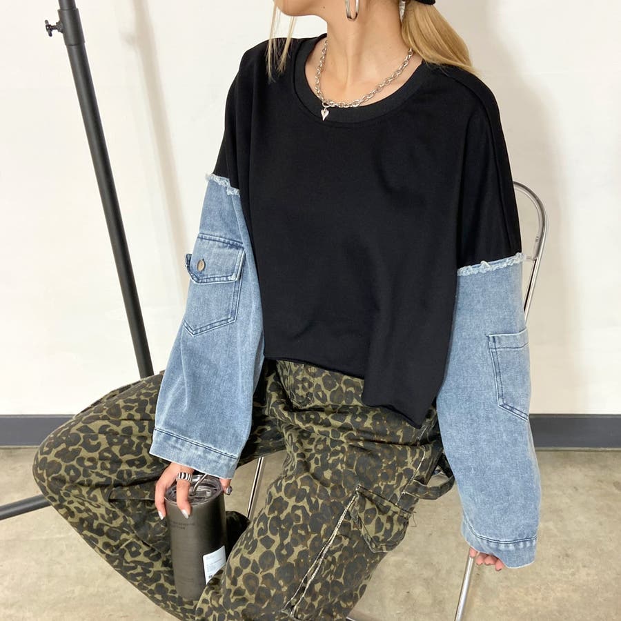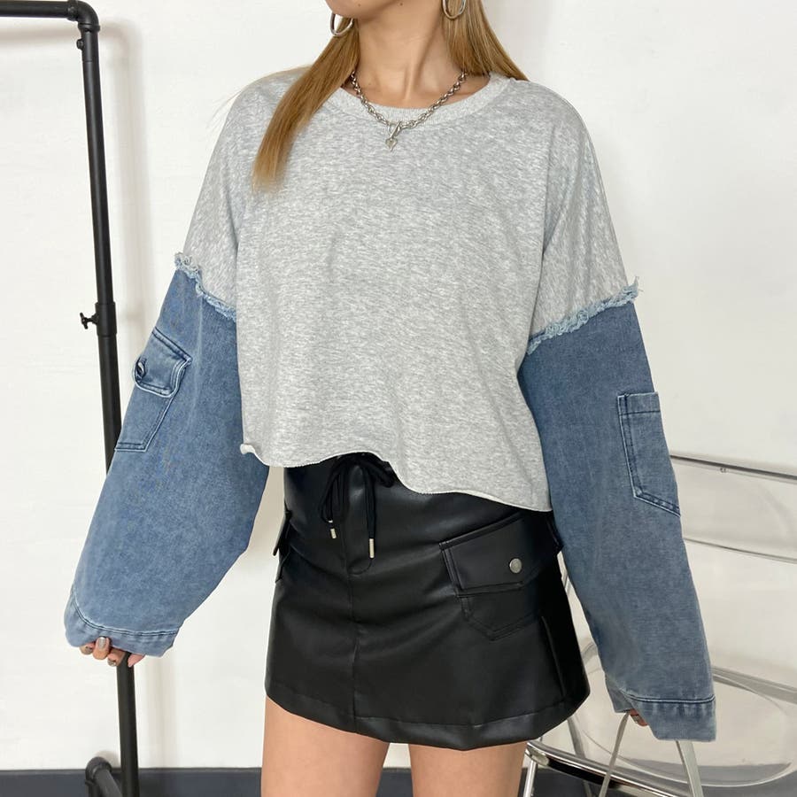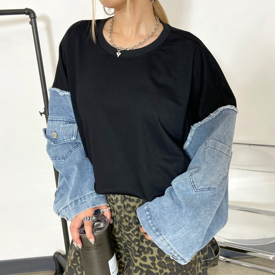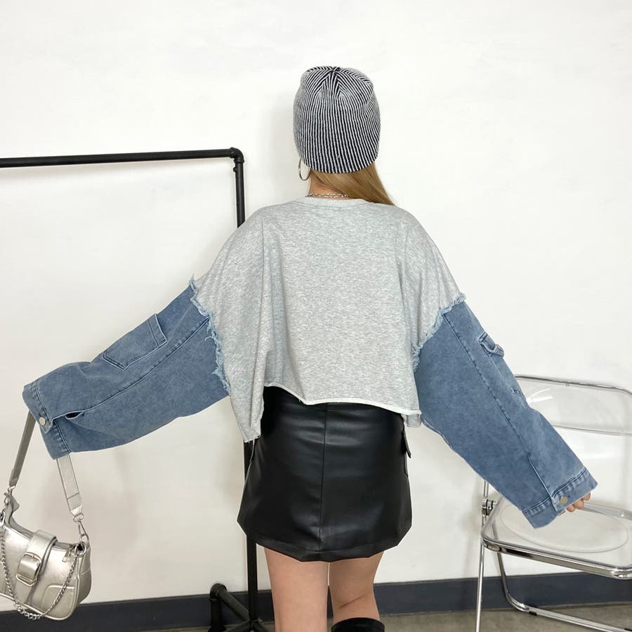 袖のデニム切り替えがトレンドライクな、