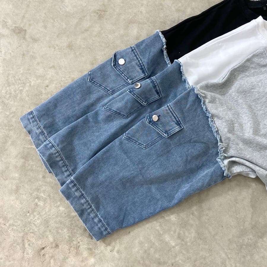 デニム切替ショートトップス