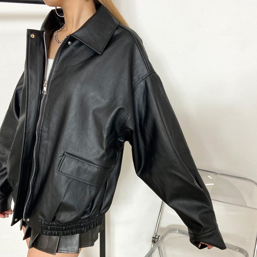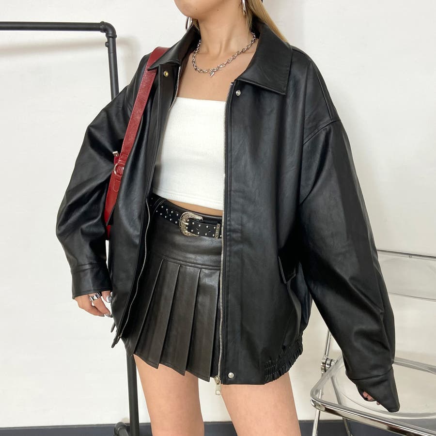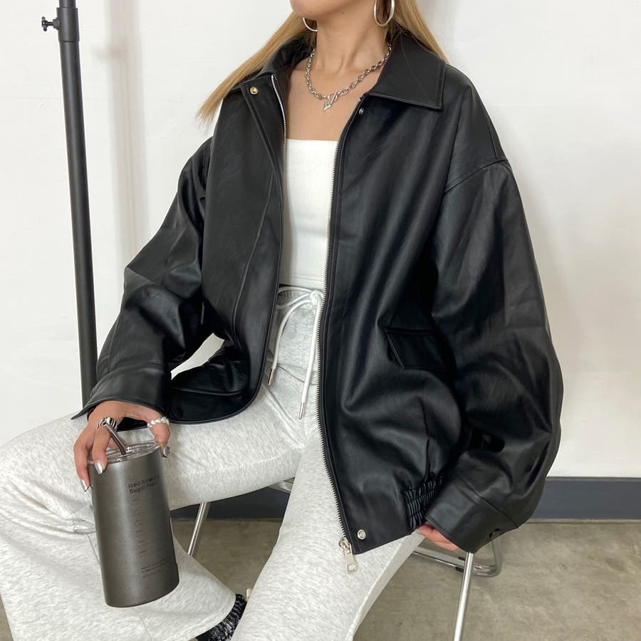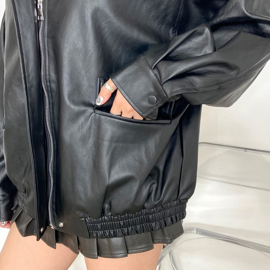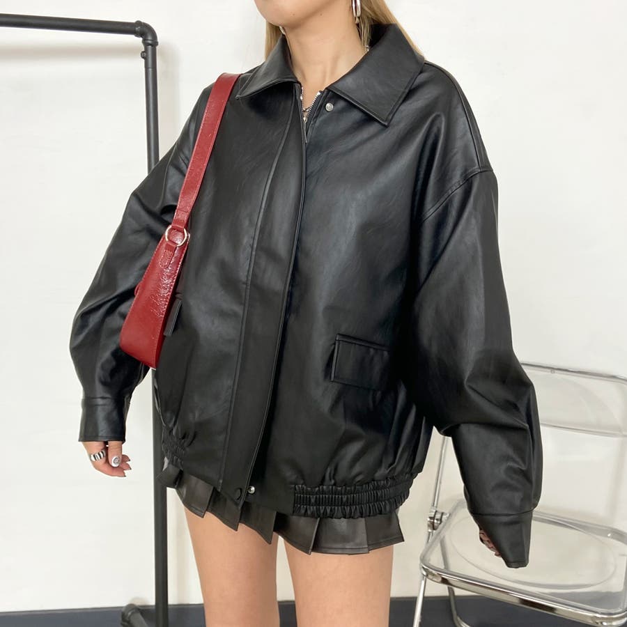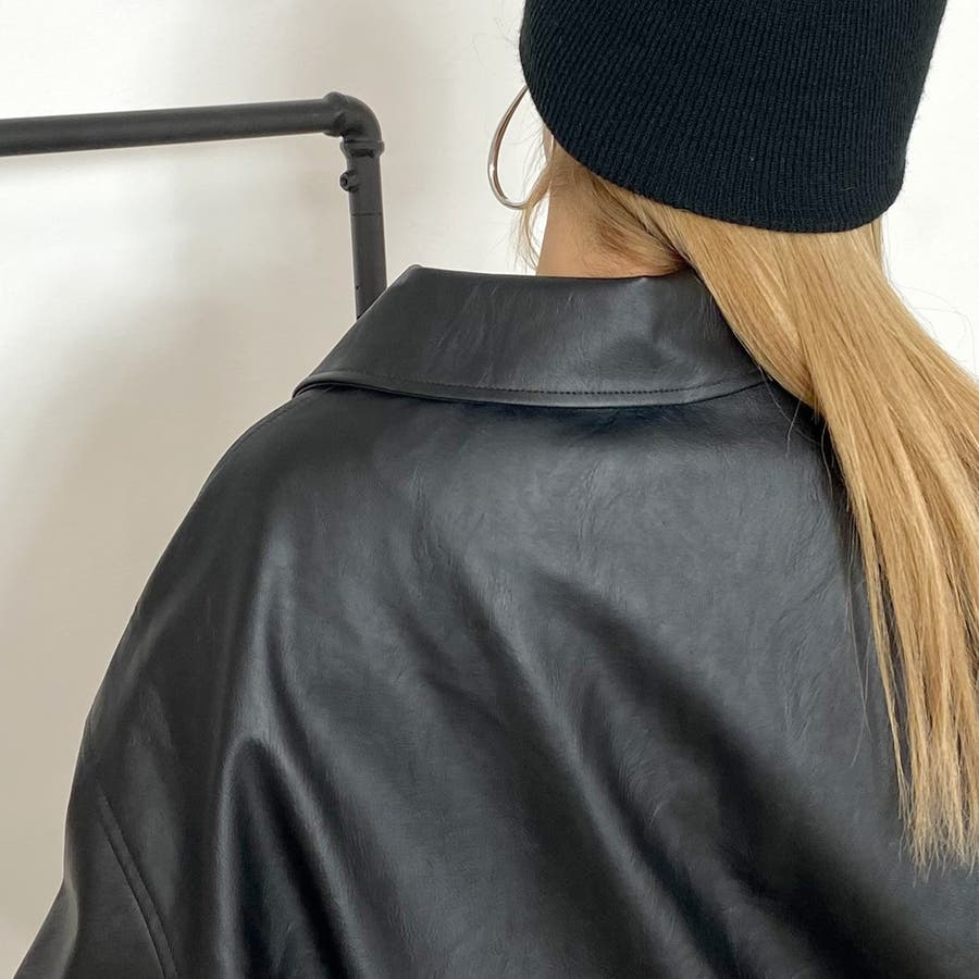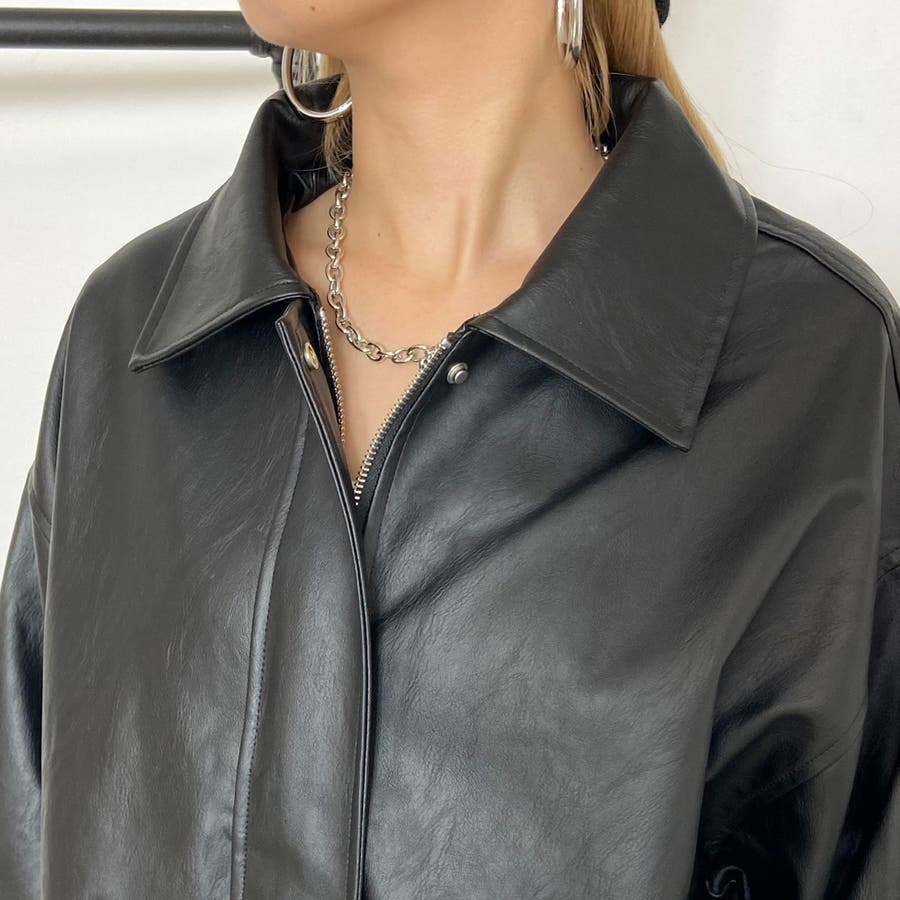 オーバーシルエット合成皮革ジャケット。