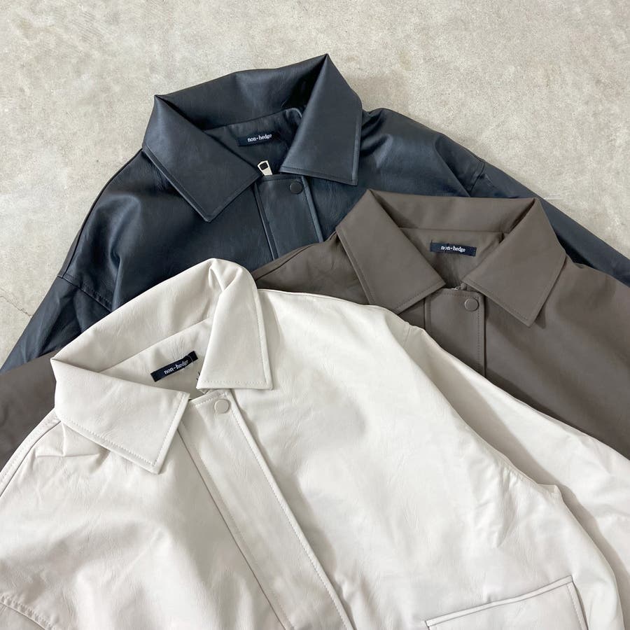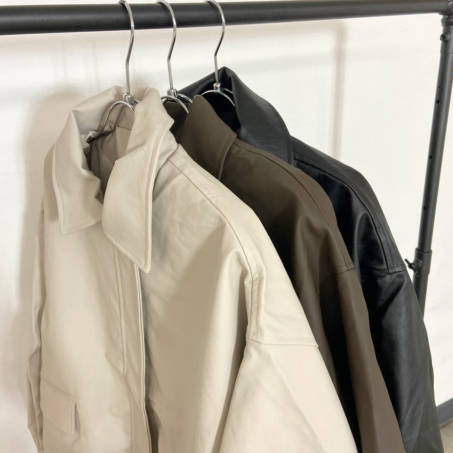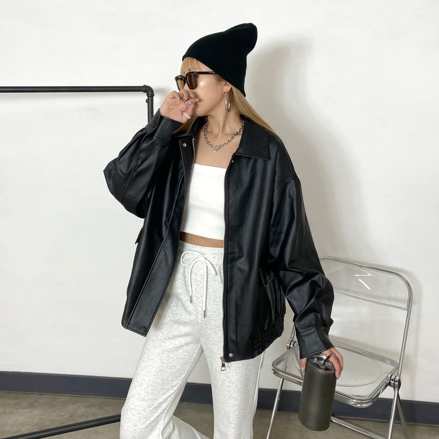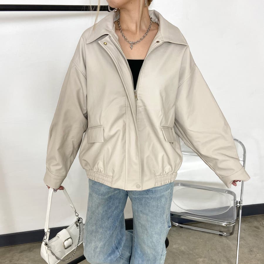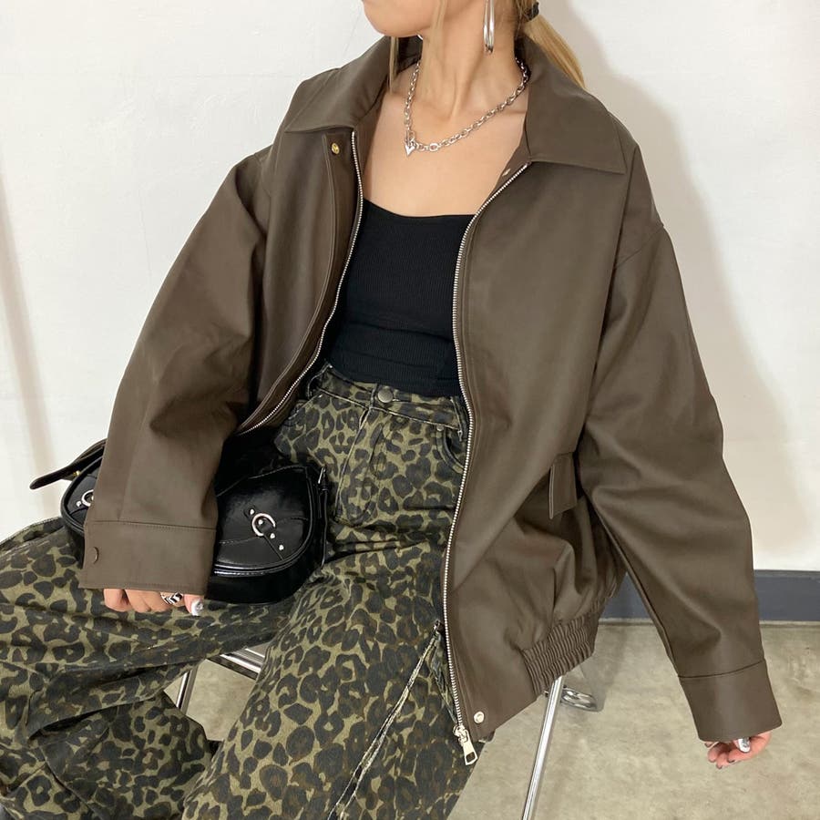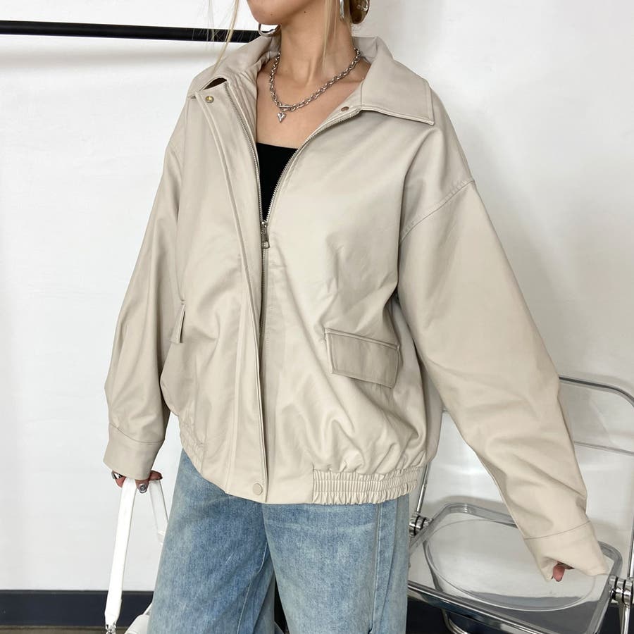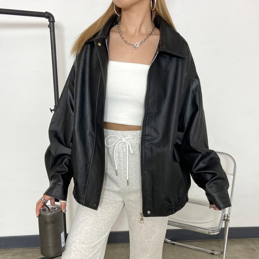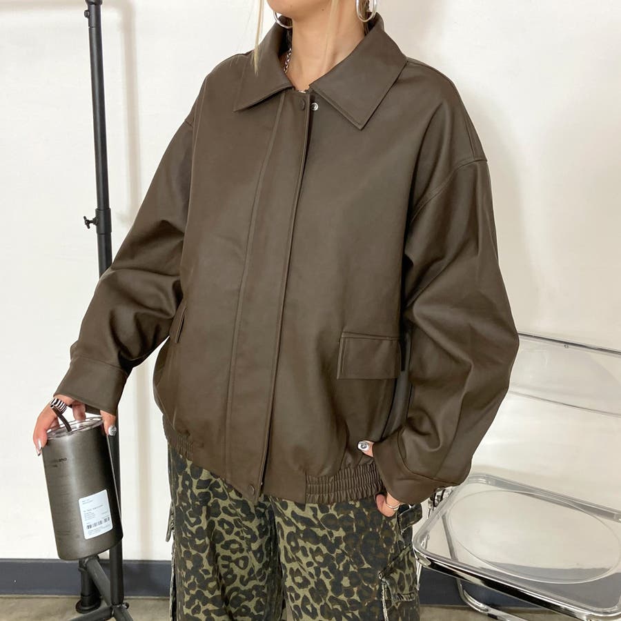 オーバーシルエット合成皮革ジャケット。