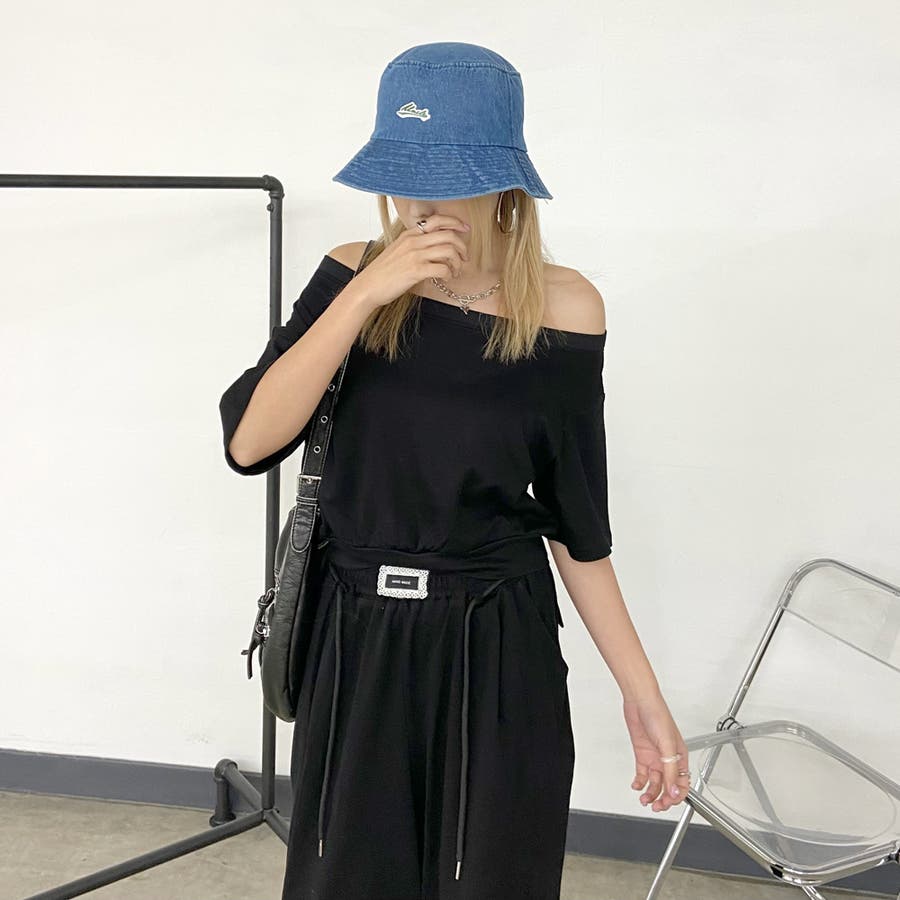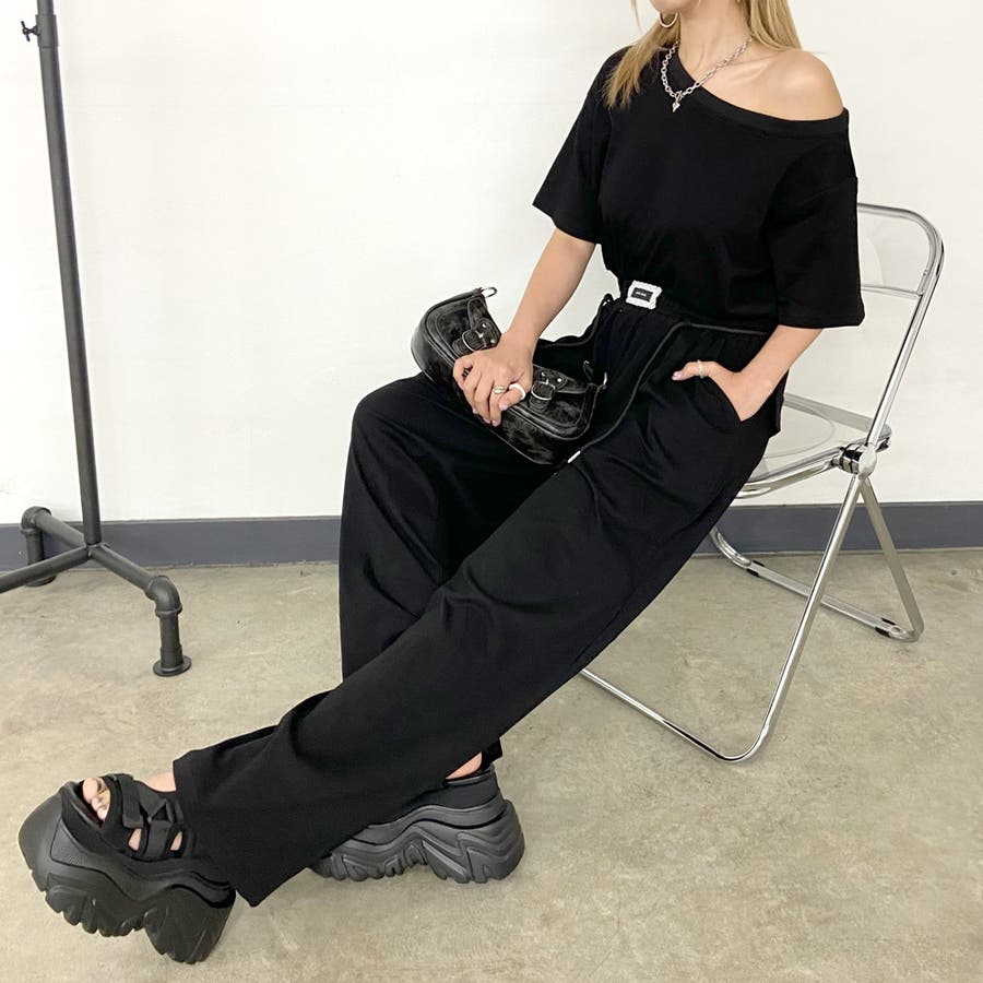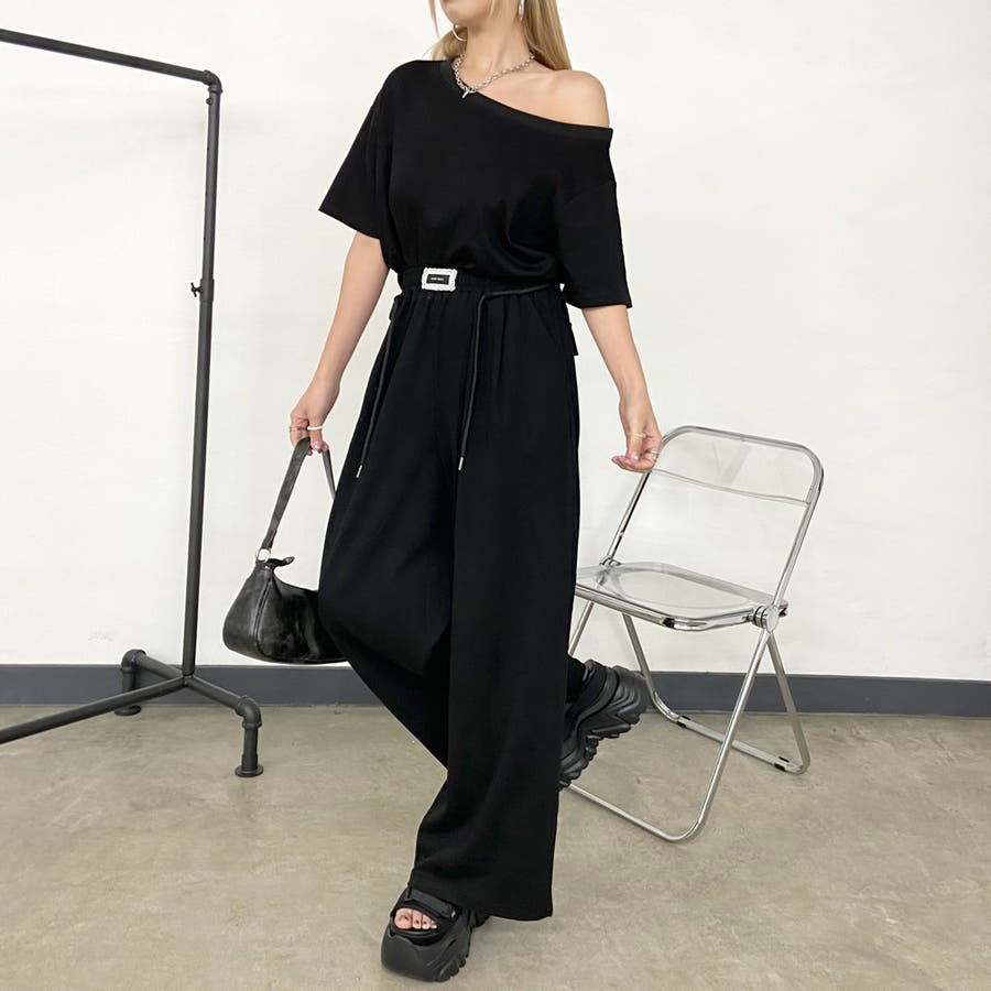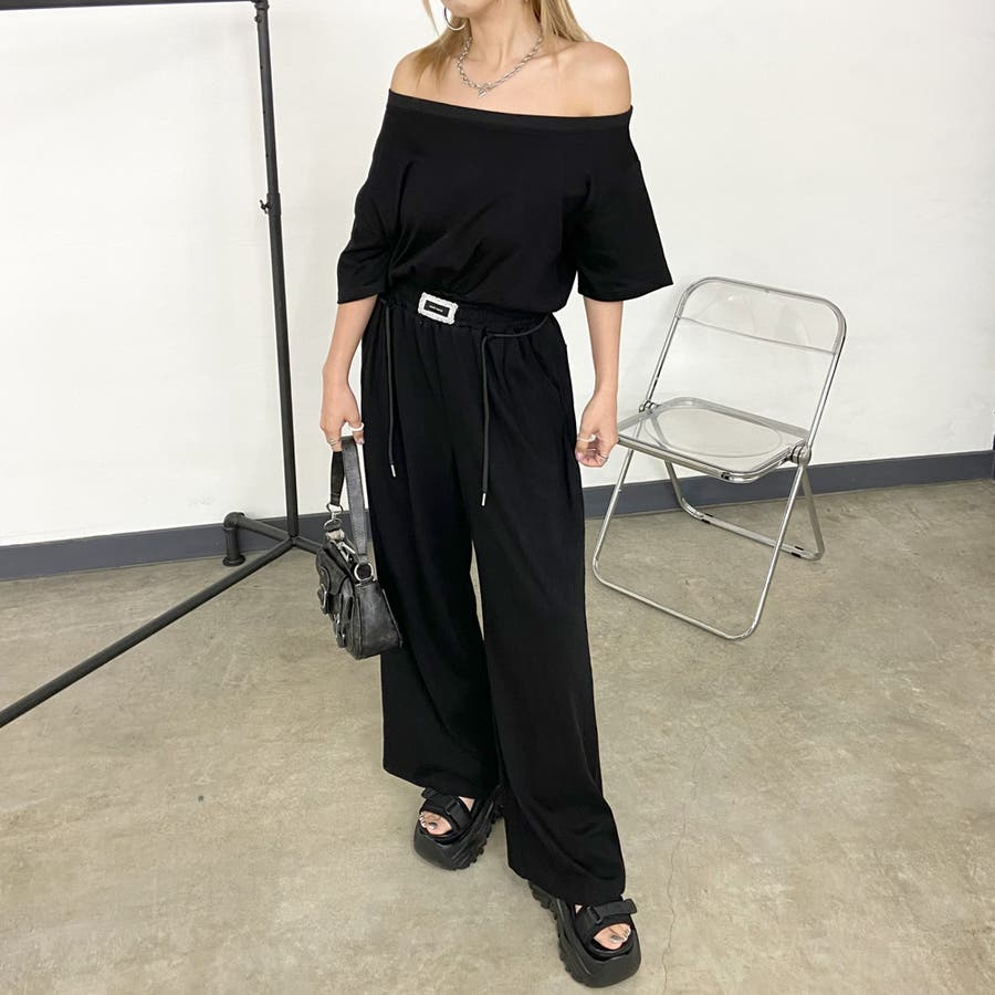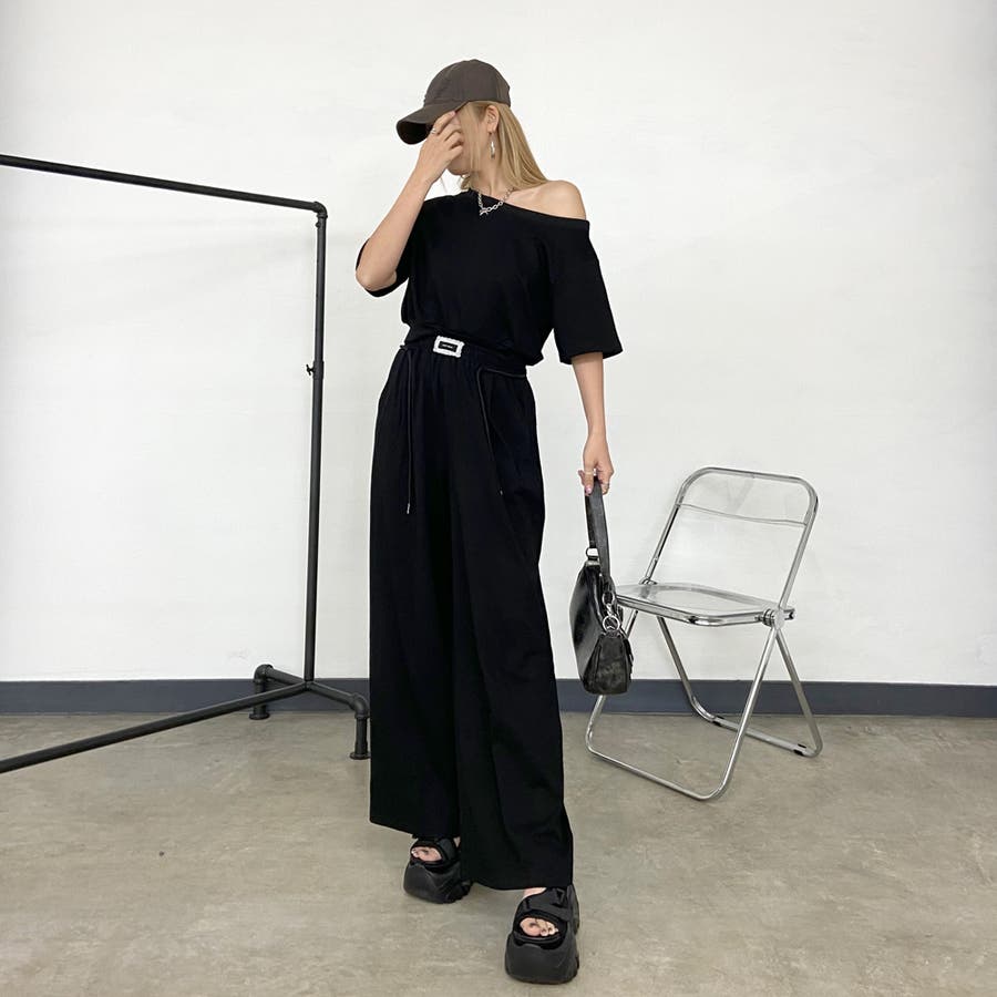 最初から、トップスは、ワンショルみたいに肩が下がってる作りでした。めちゃくちゃ着やすい素材でパンツも可愛いループ紐で、緩かわセットアップ