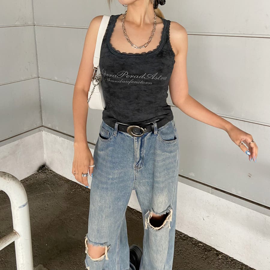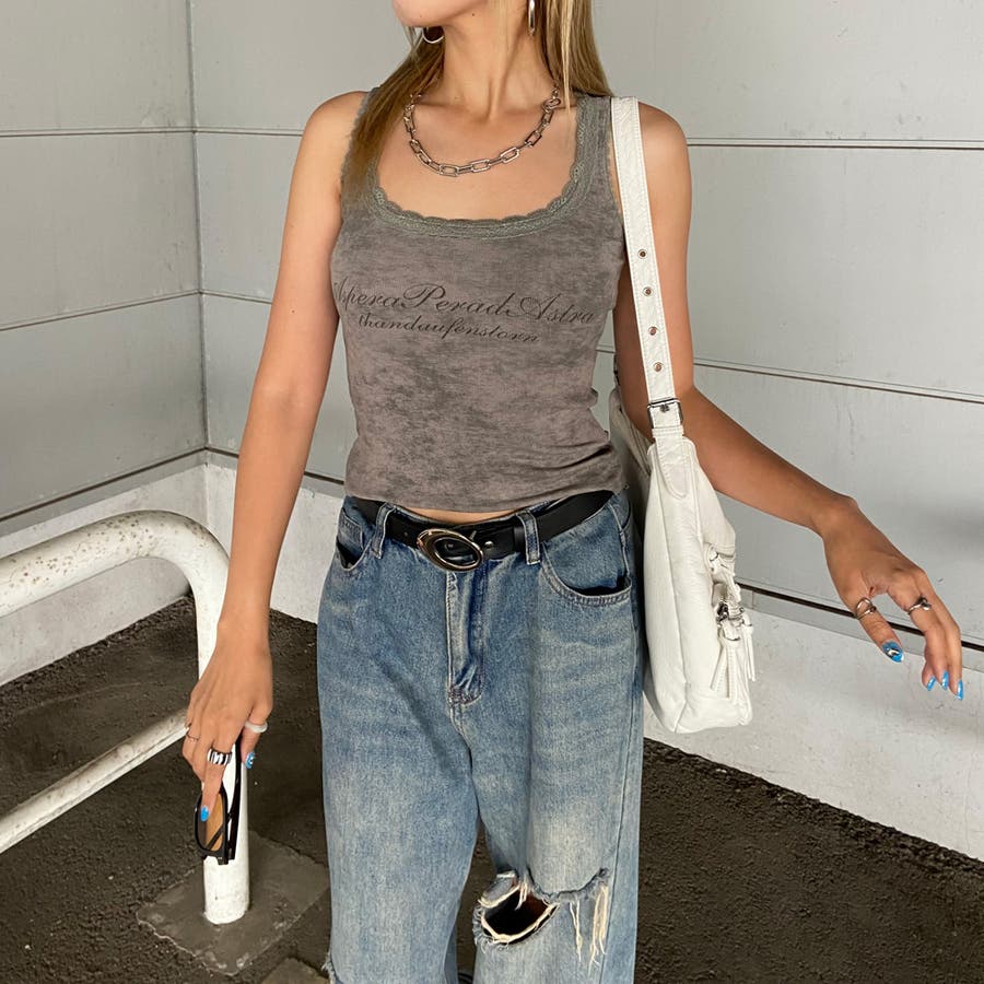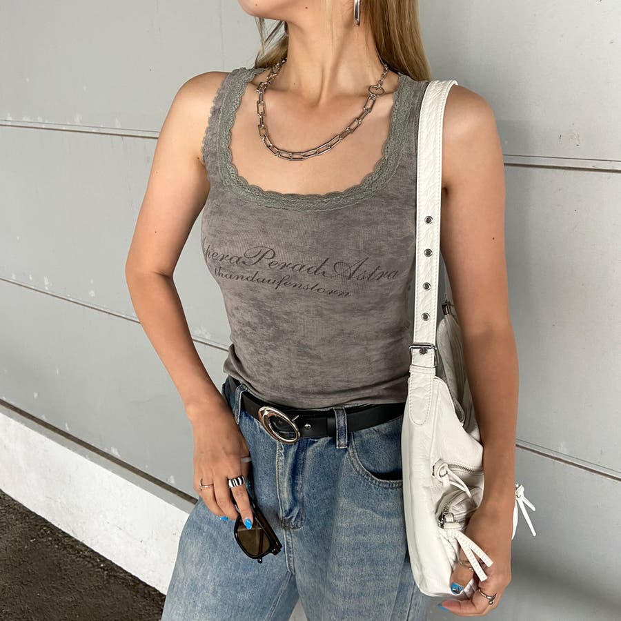 レースロゴムラタンクトップ