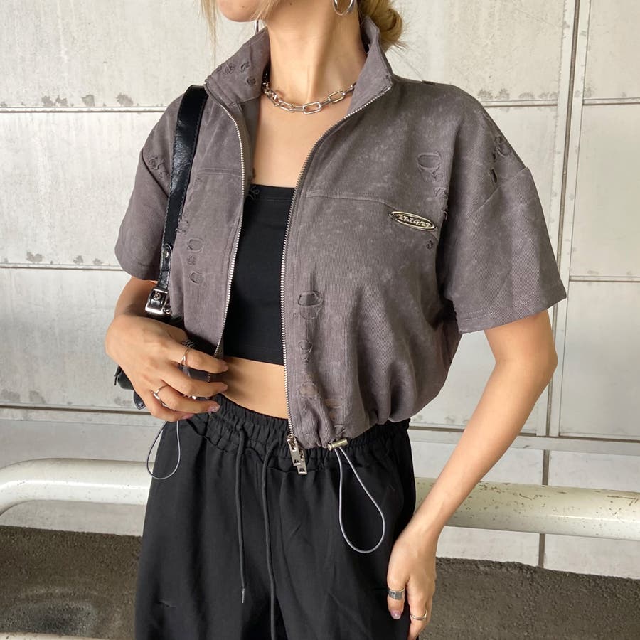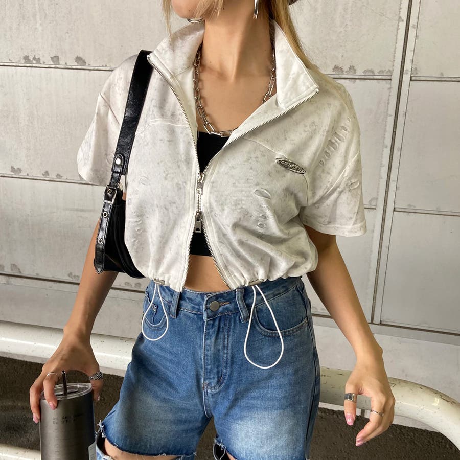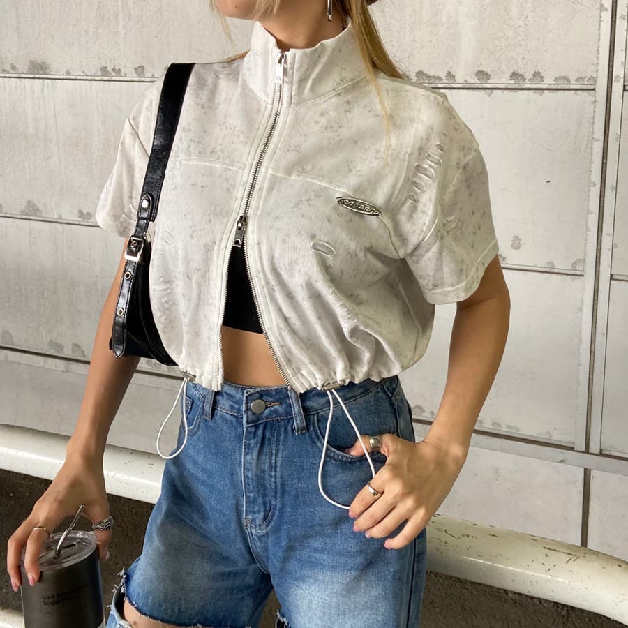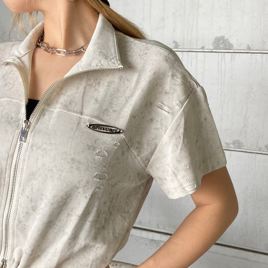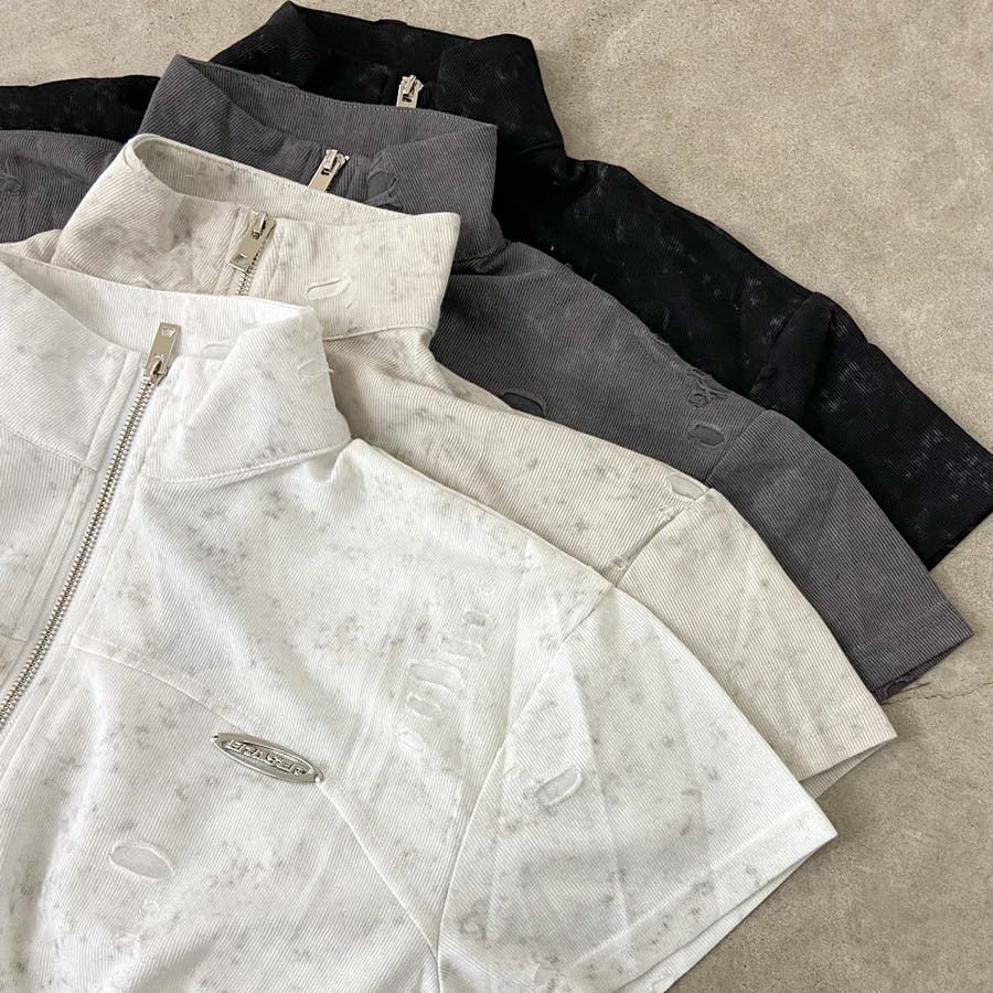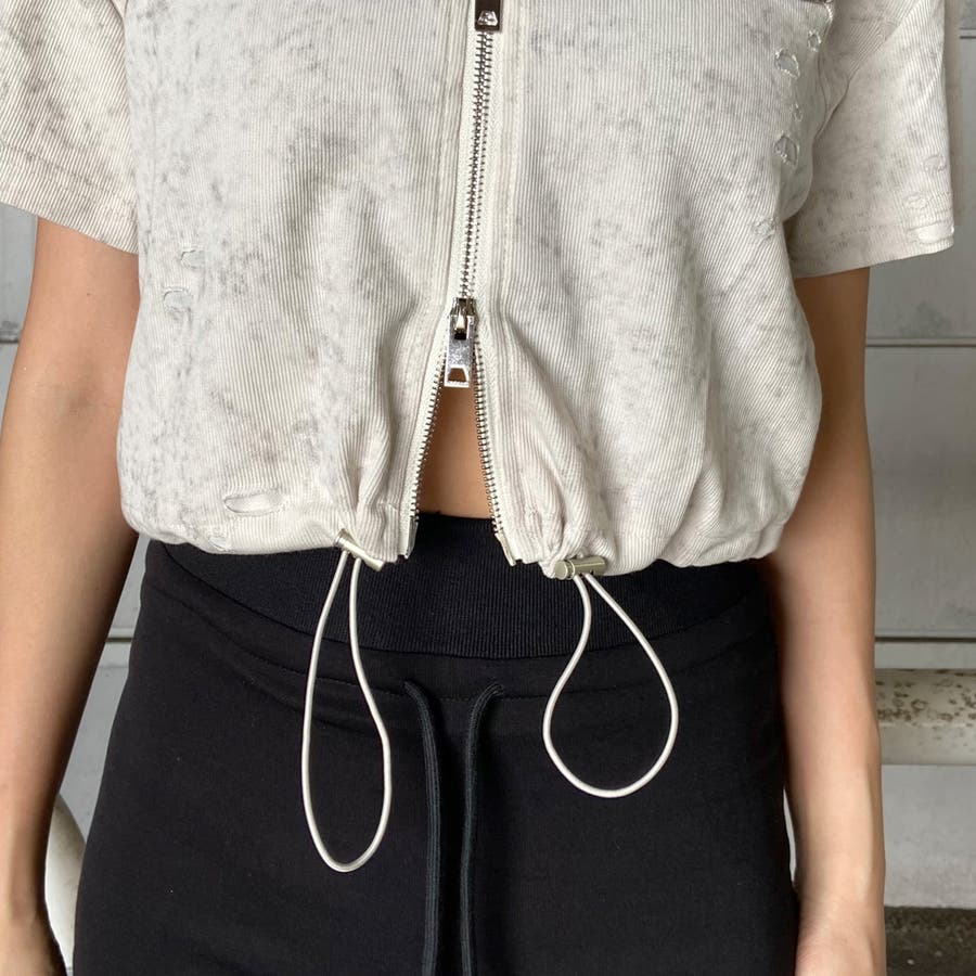 プレートダメージWZIPトップス