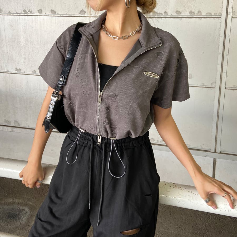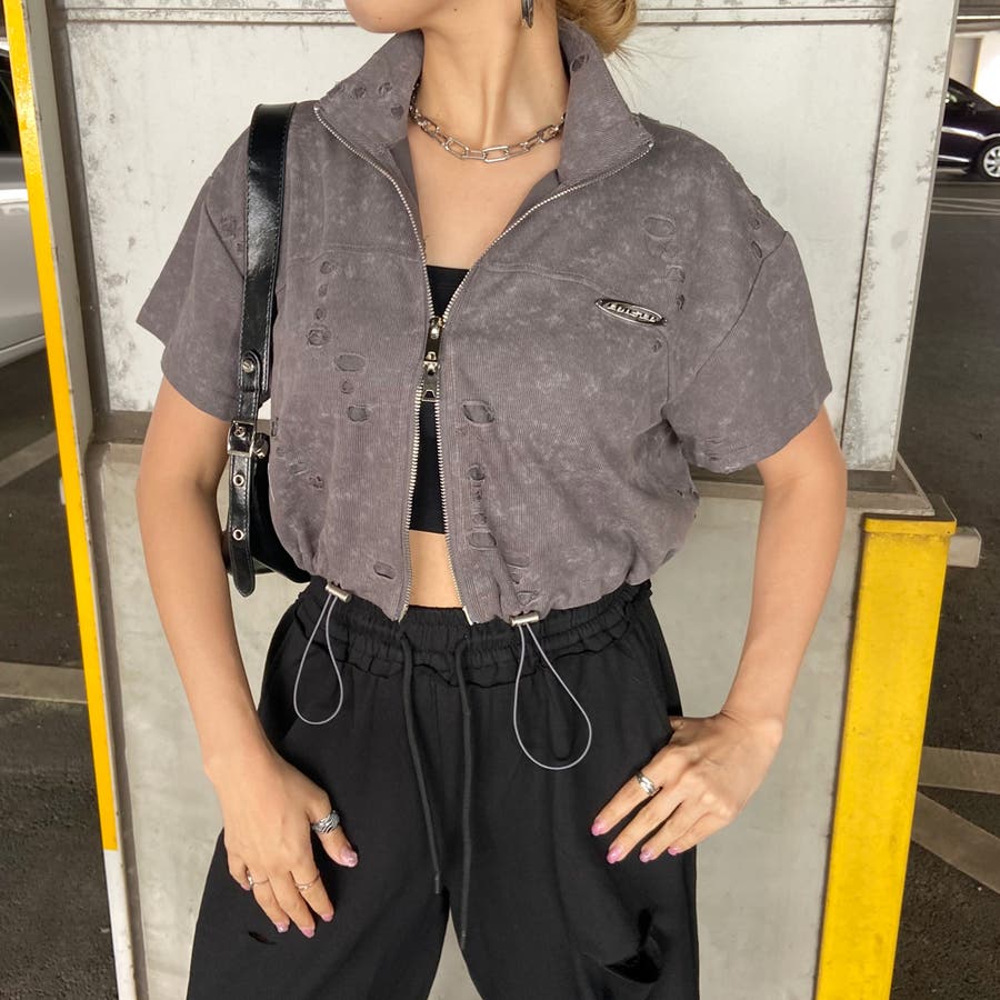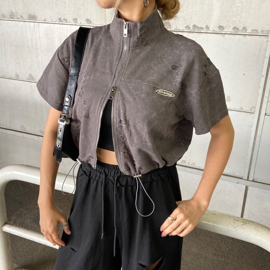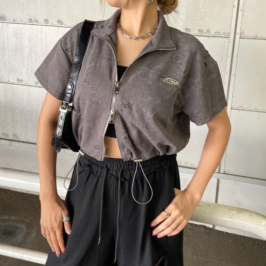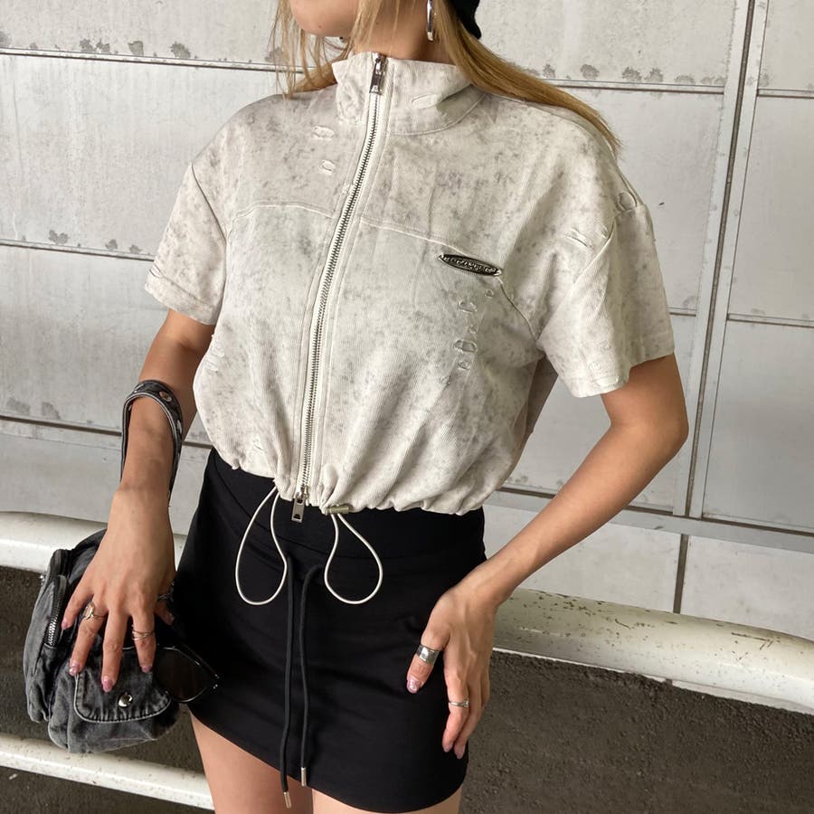 プレートダメージWZIPトップス