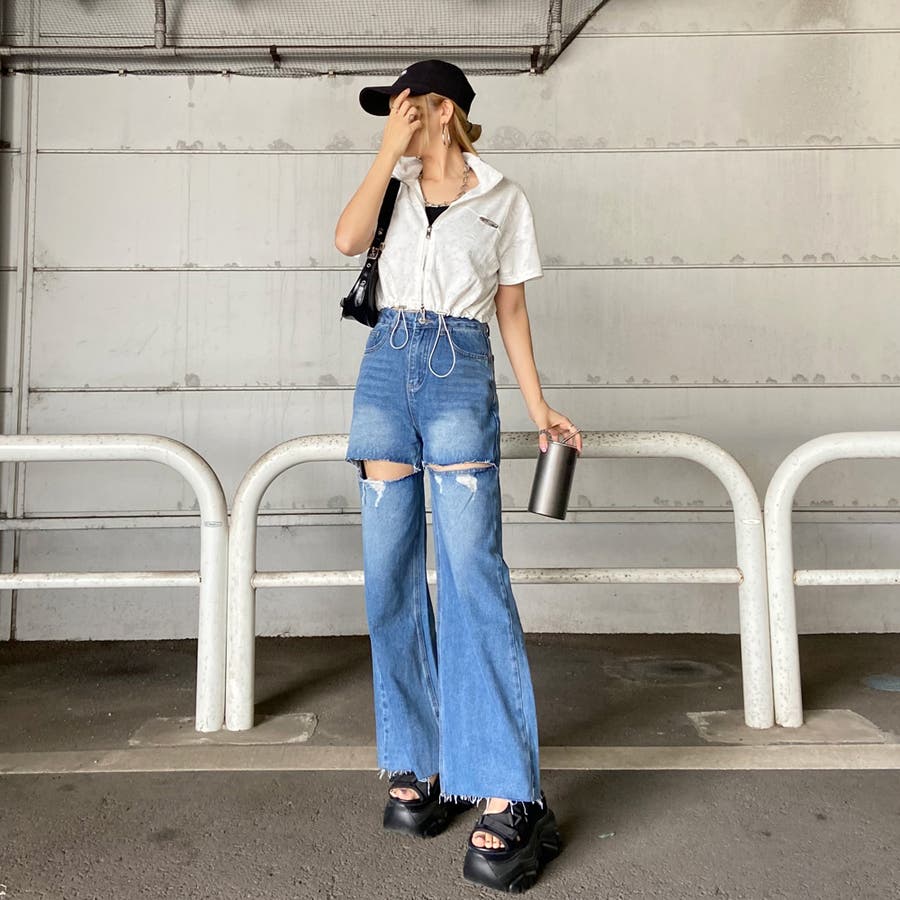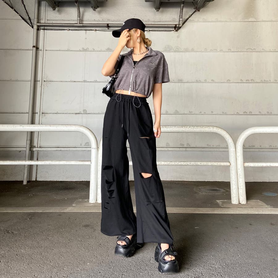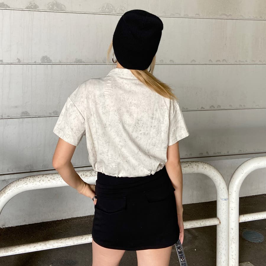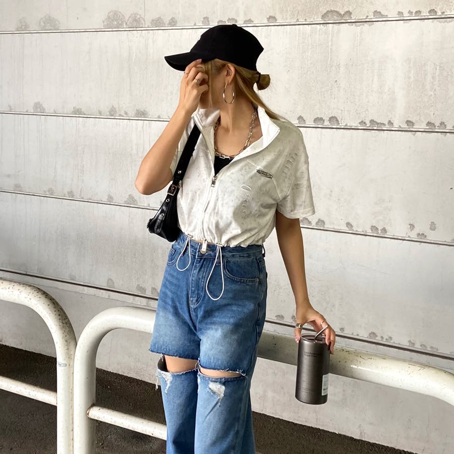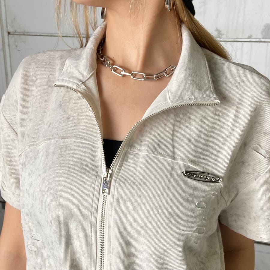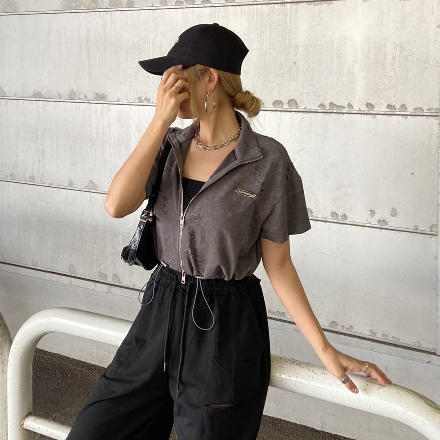 プレートダメージWZIPトップス