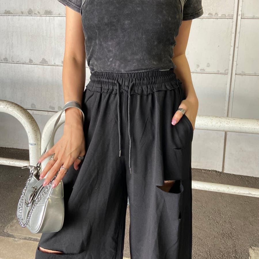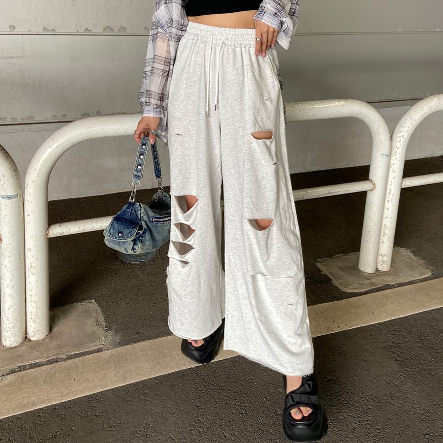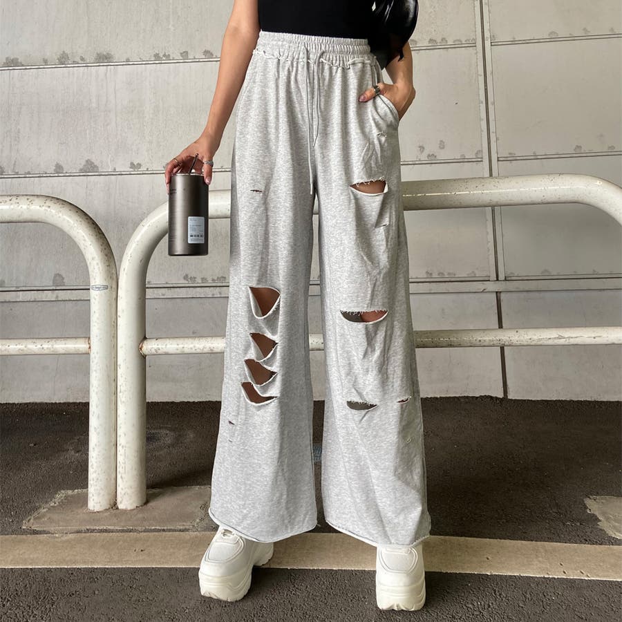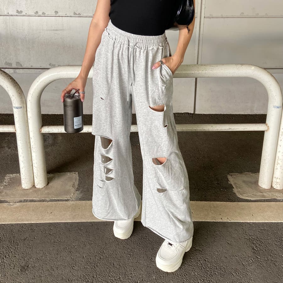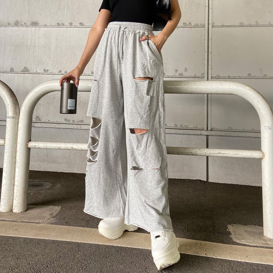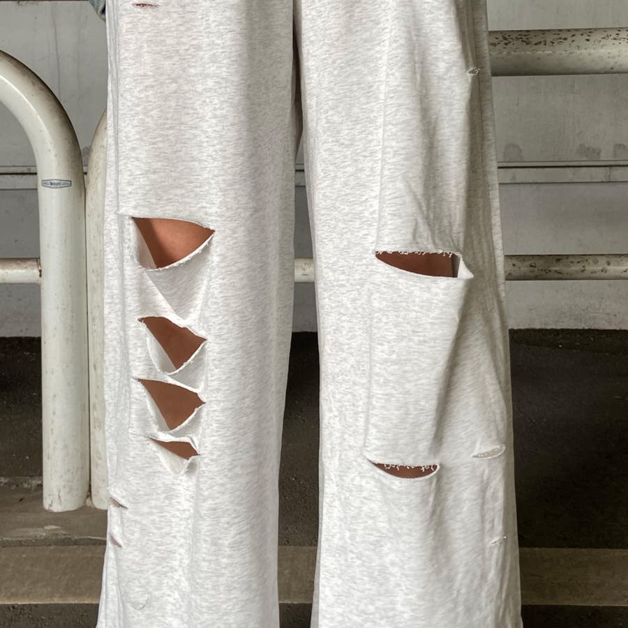 裏毛ダメージワイドパンツ