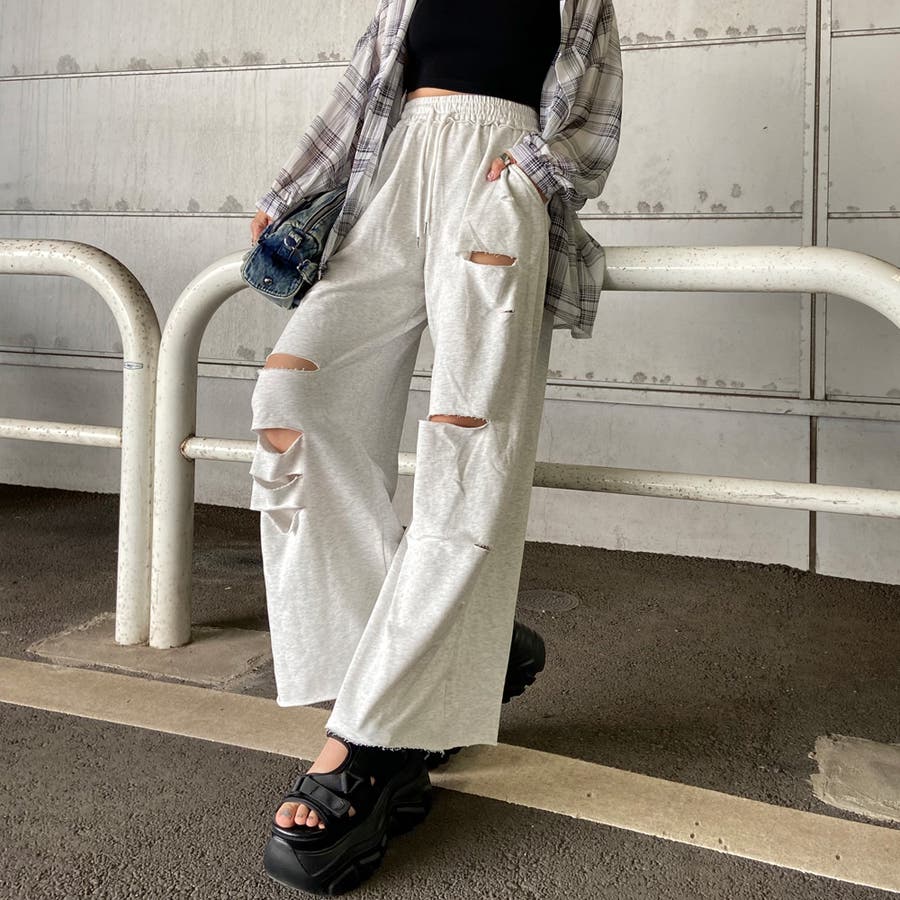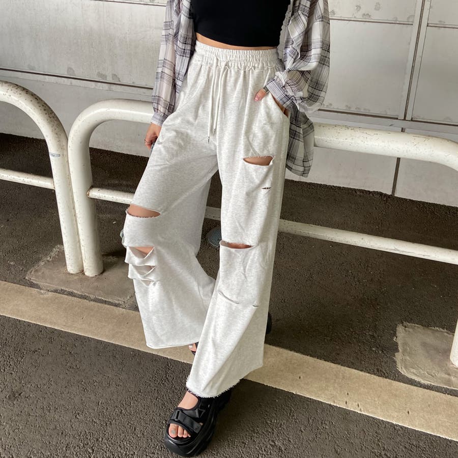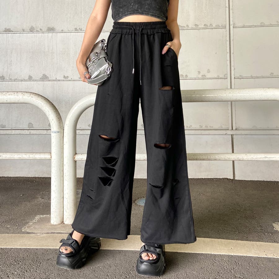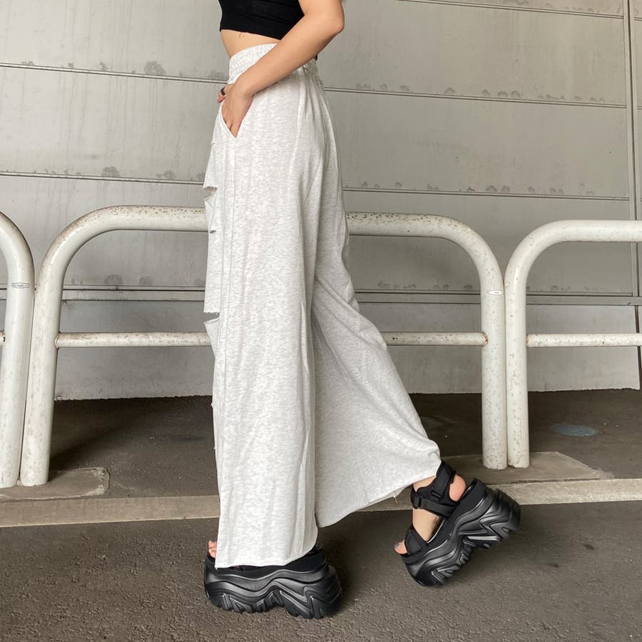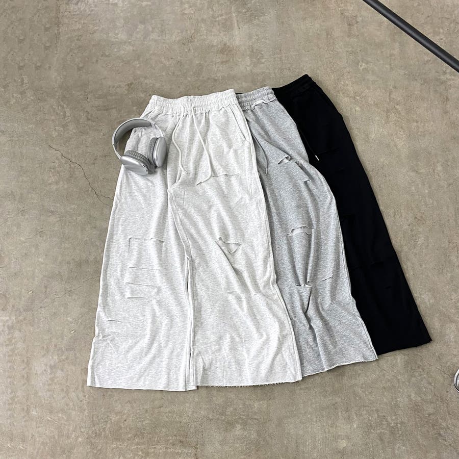 裏毛ダメージワイドパンツ