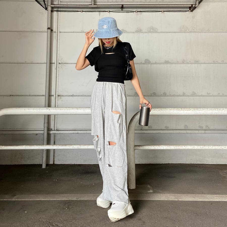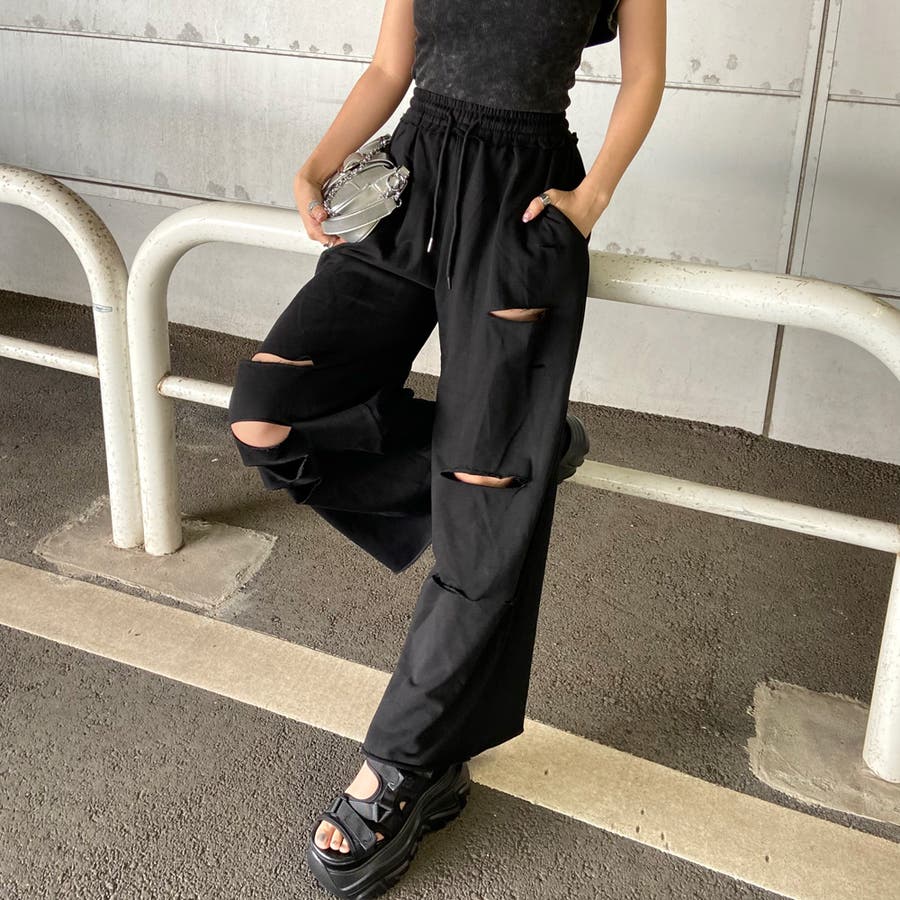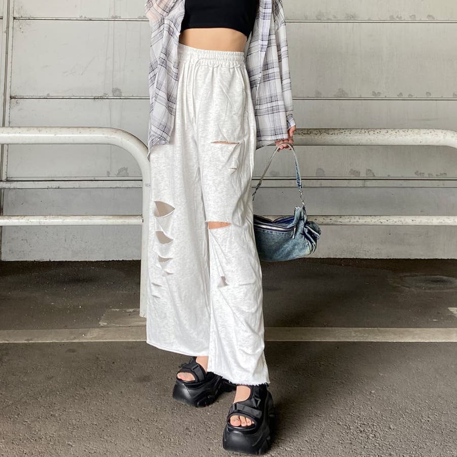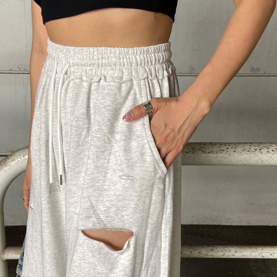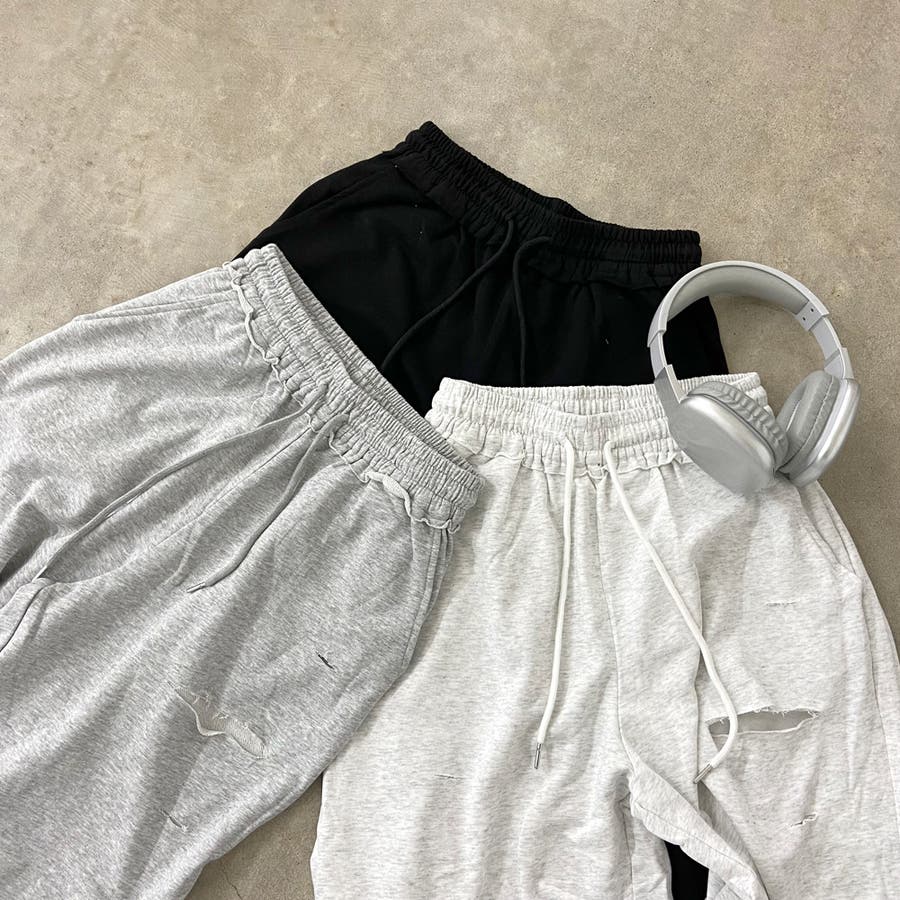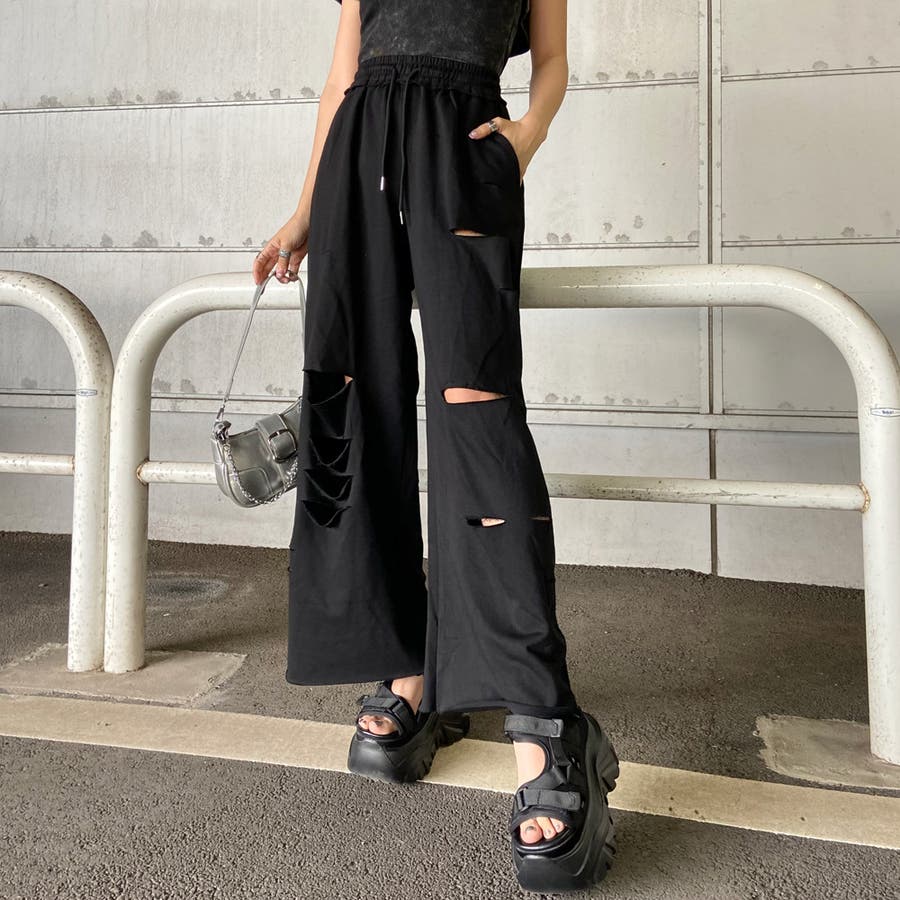裏毛ダメージワイドパンツ