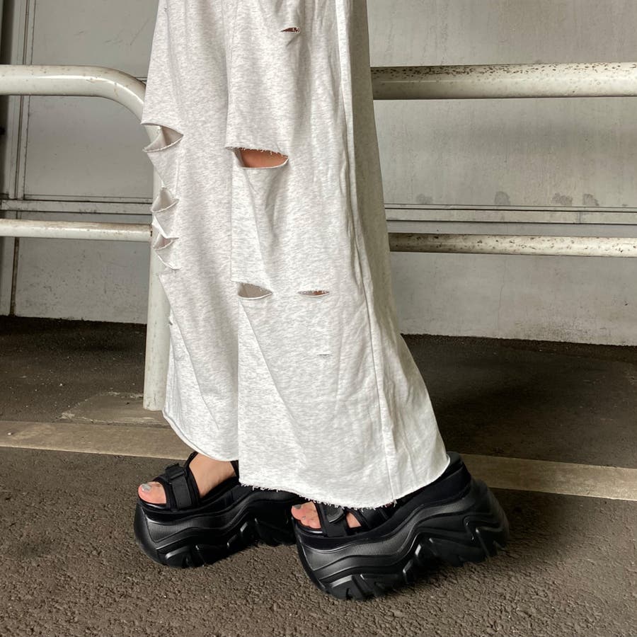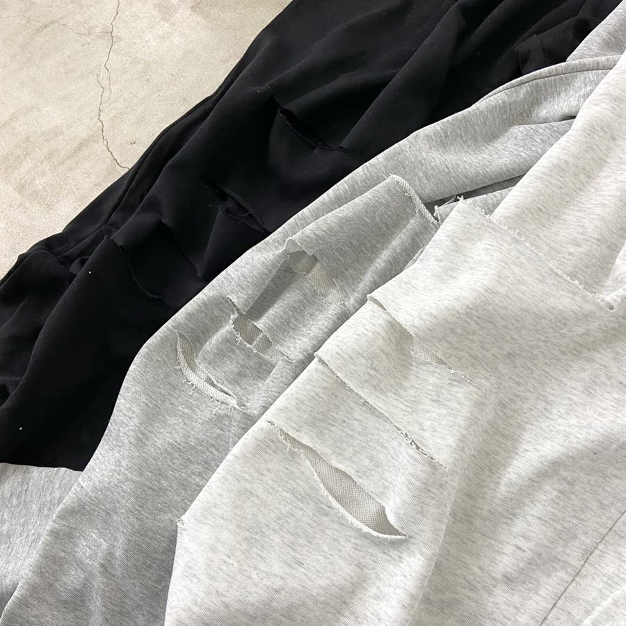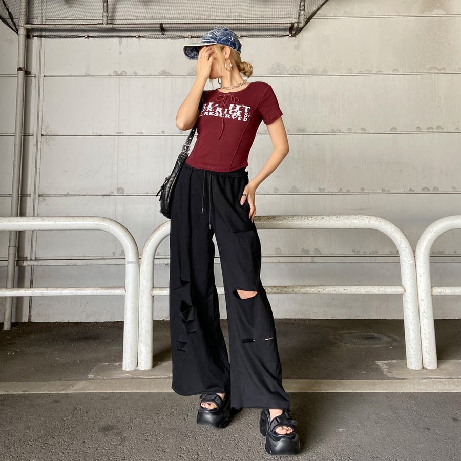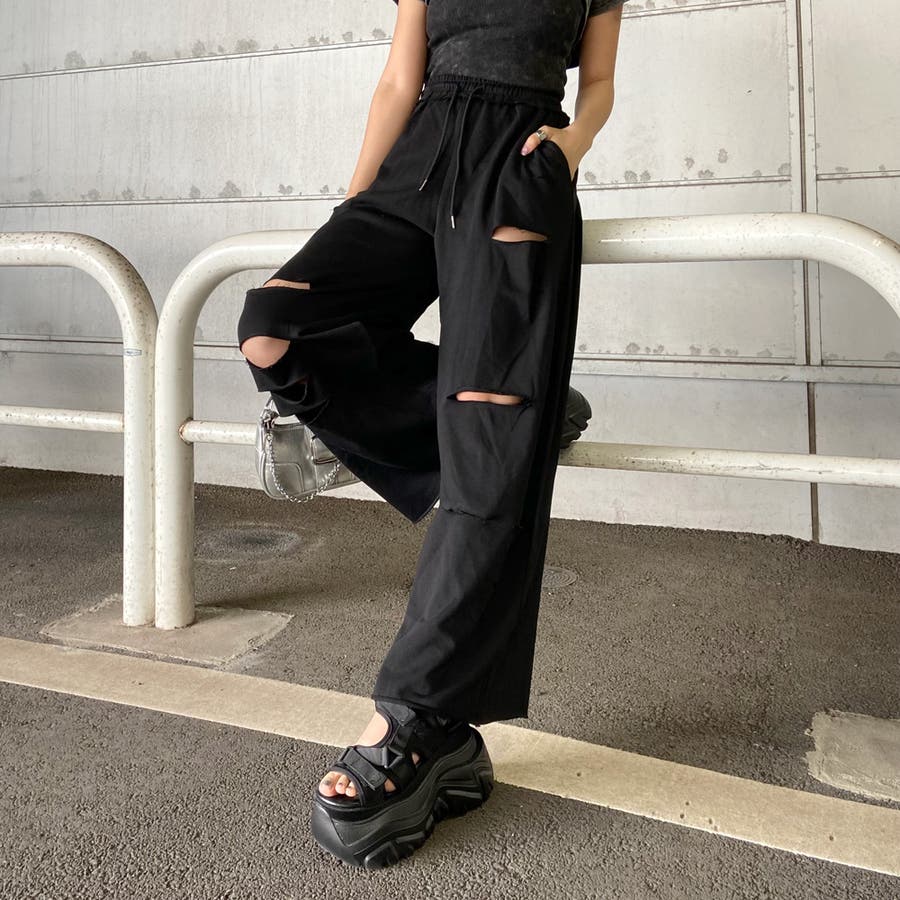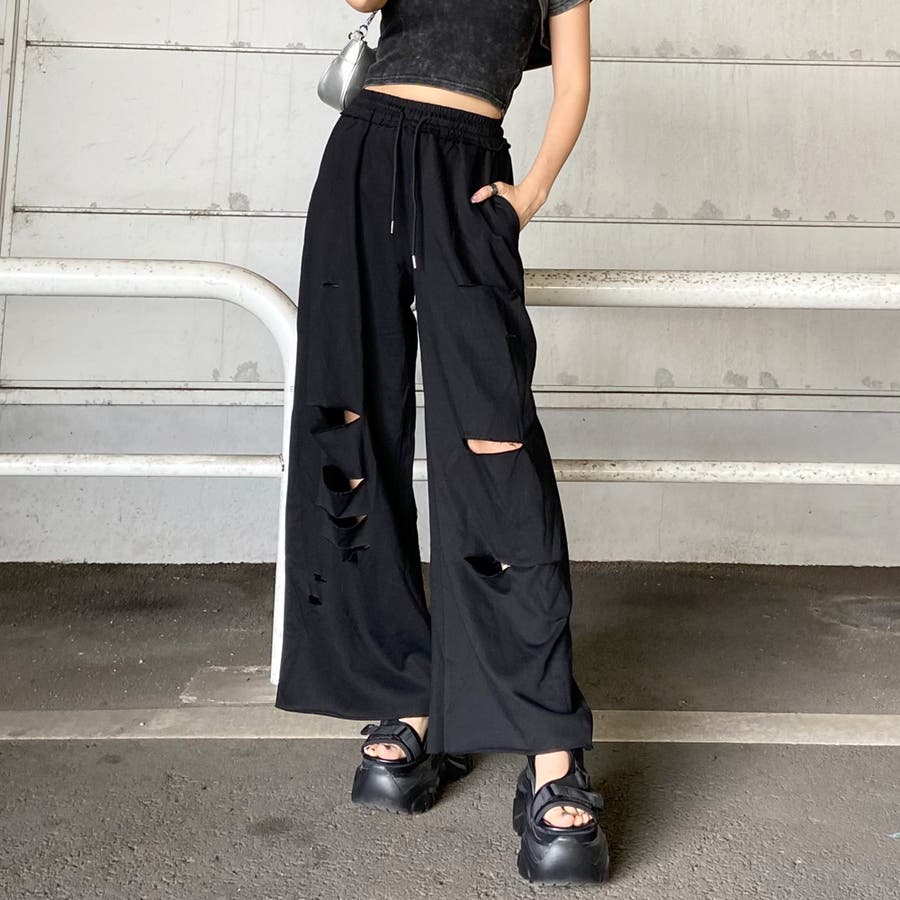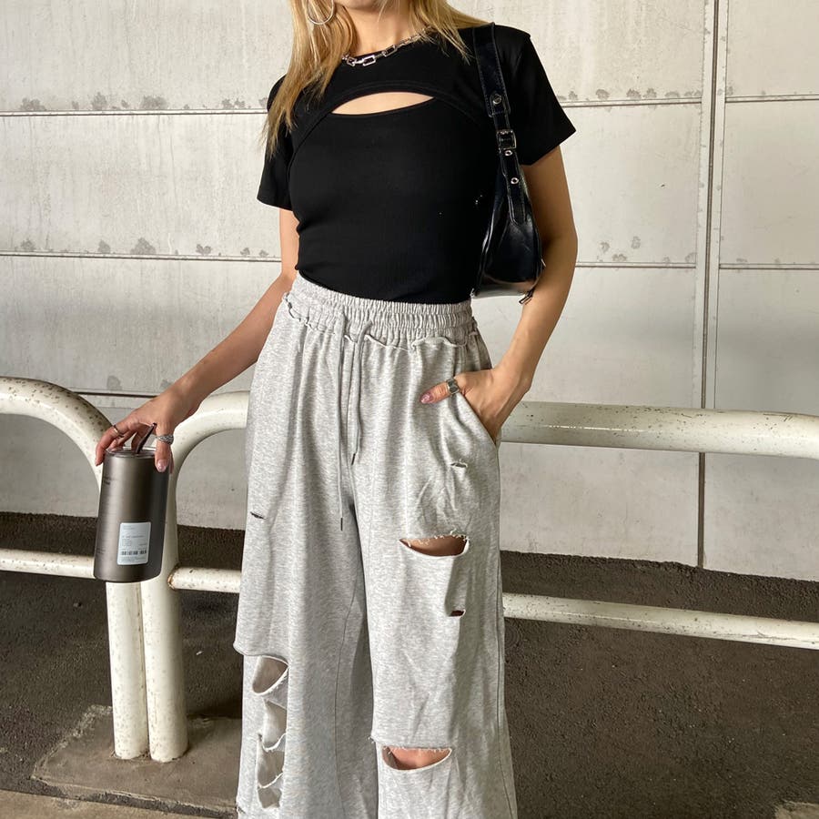 裏毛ダメージワイドパンツ