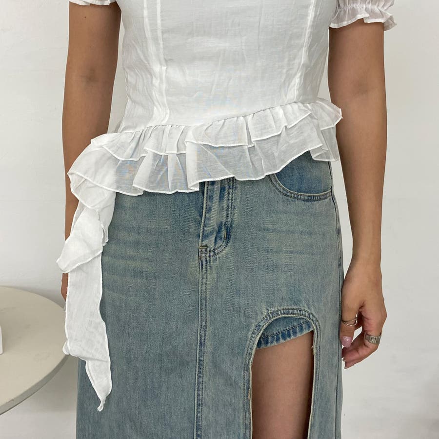 イレギュラーヘムと垂れ下がったフリルが