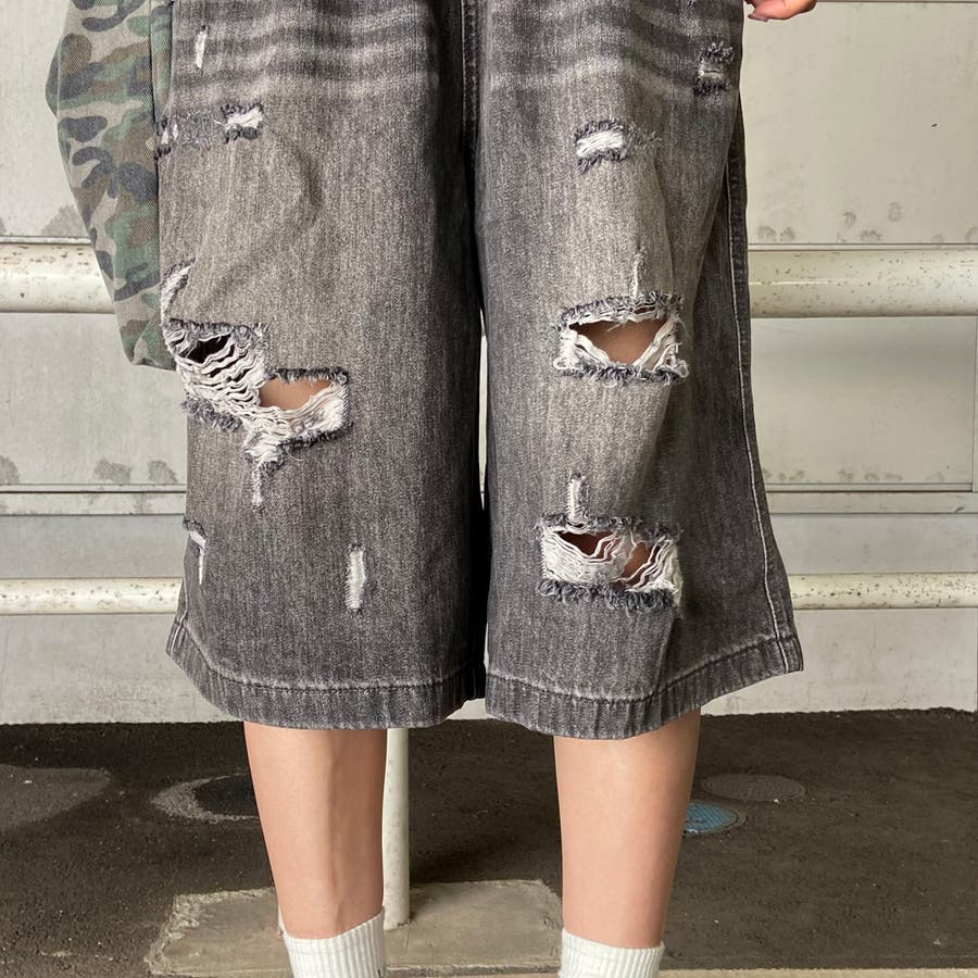 デニムダメージハーフパンツ