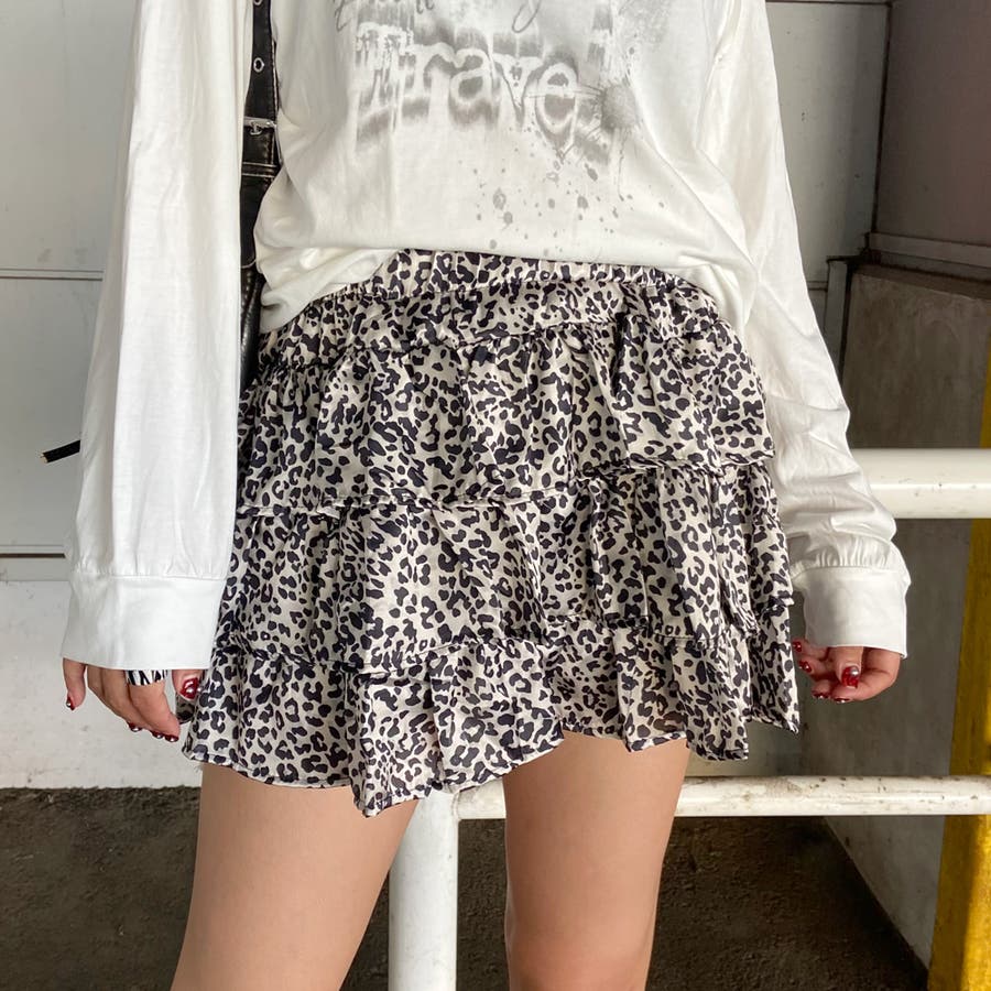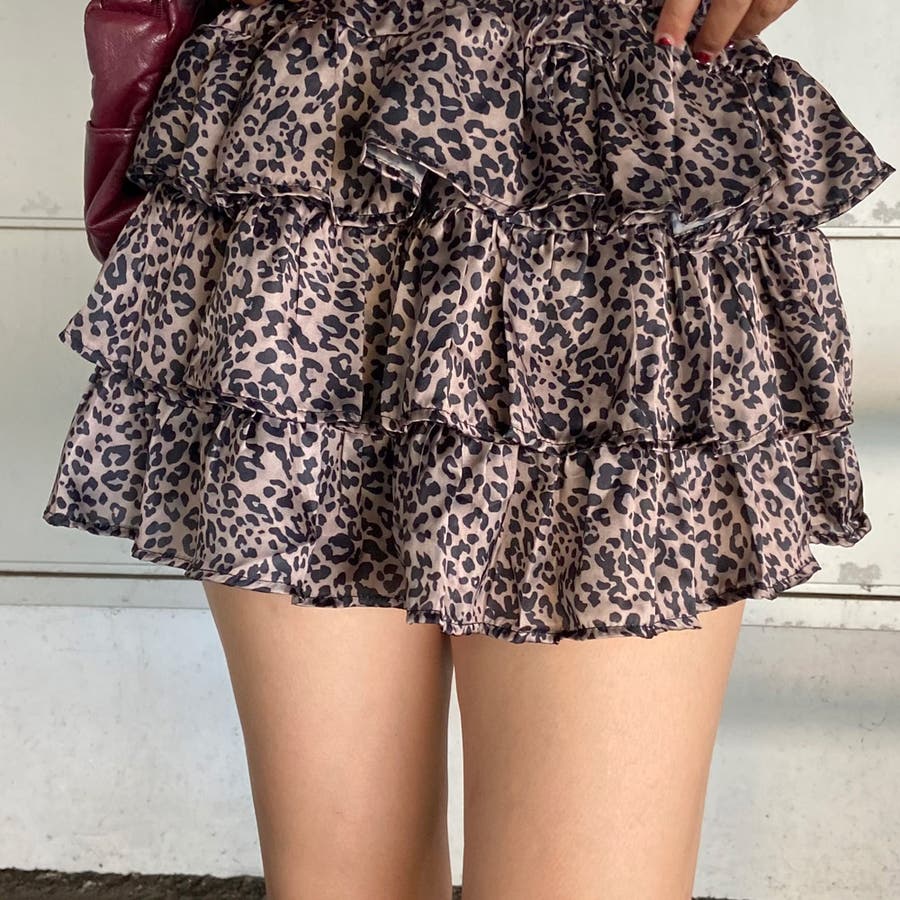 ヒョウ柄ティアードミニスカート。
