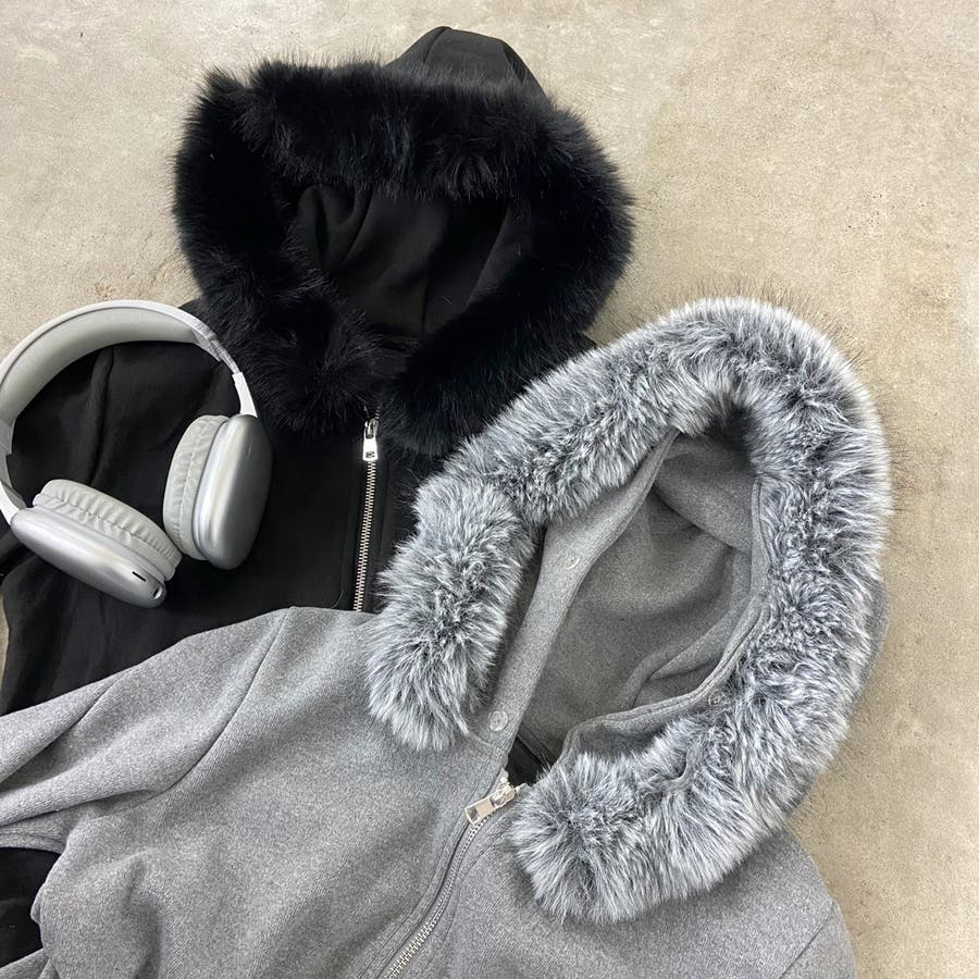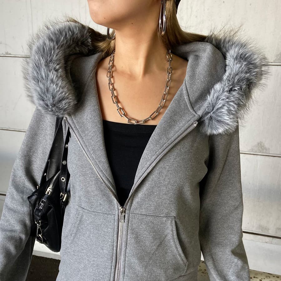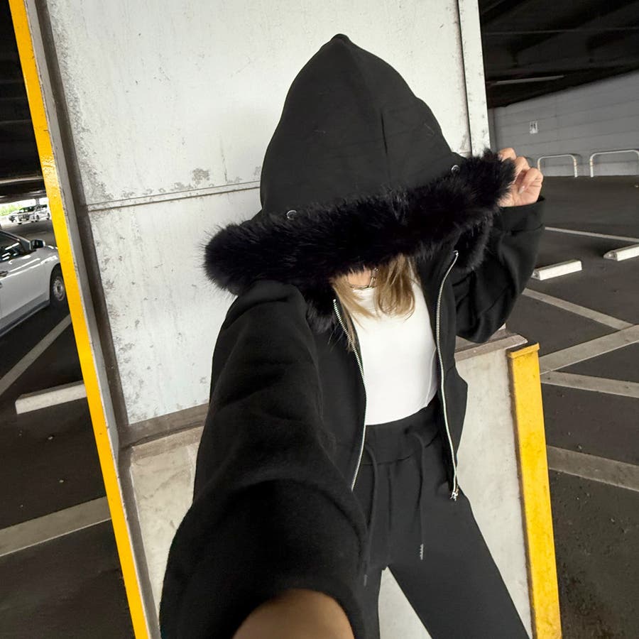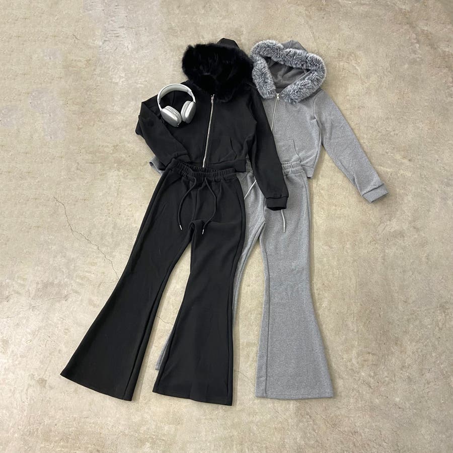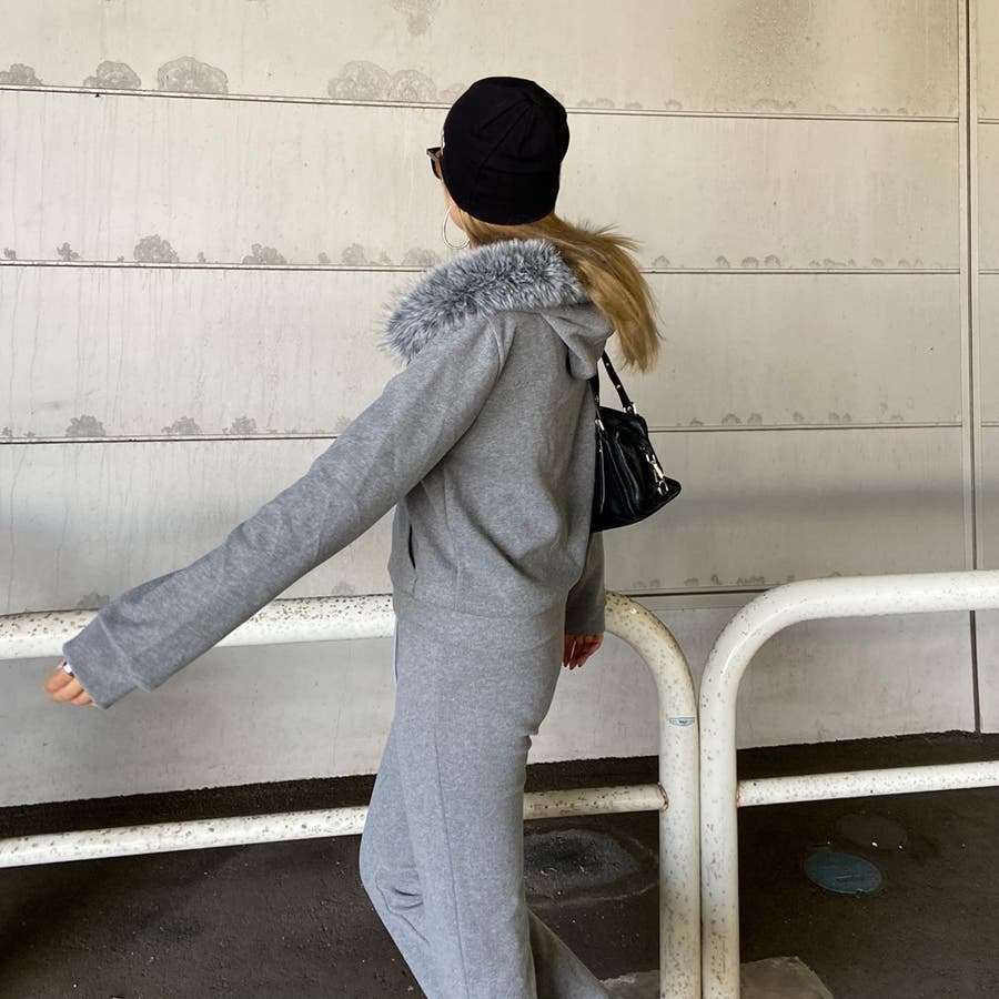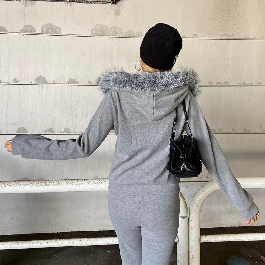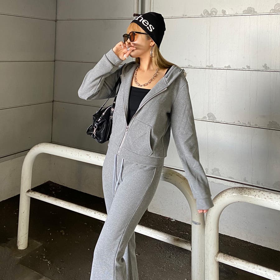 ファーフードZIPパーカー・フレアパンツセットアップ