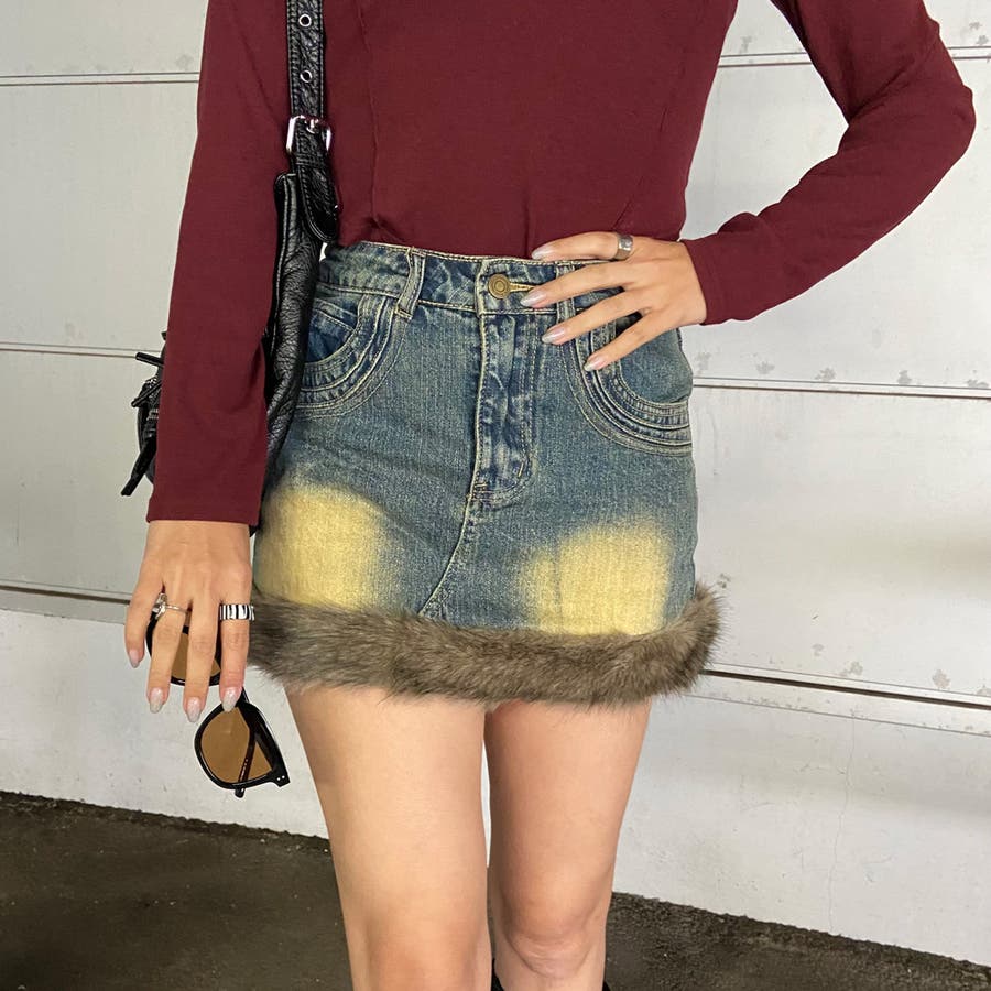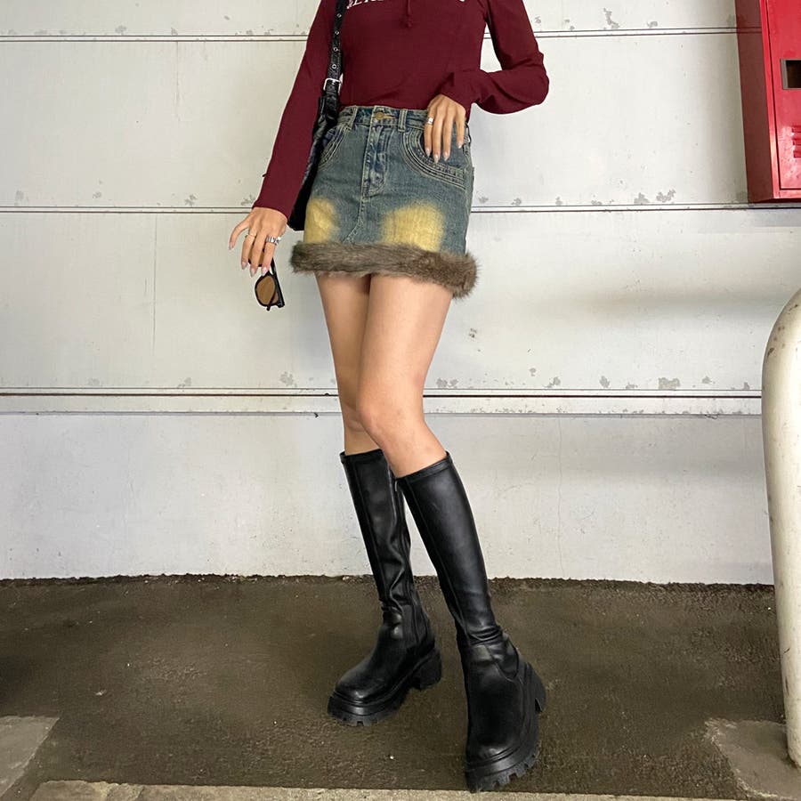 2025/2025新作/2025SS/ootd/code/outfit/coordinate/fashion/skirt/ウェア/レディース/ファッション/女性/大人/おしゃれ/合わせやすい/韓国/韓国ファッション/韓国通販/海外ファッション/韓国ストリート/10代/20代/30代/40代/50代/春/夏/秋/冬/SS/AW/春夏秋冬/オールシーズン/シーズンレス/春服/夏服/秋服/冬服/新作/新着/新規/人気/定番/おすすめ/トレンド/流行/カジュアル/大人カジュアル/デイリー/モード/ギャル/Y2K/Y3K/サイバー/サイバーファッション/近未来感/かわいい/可愛い/かっこいい/地雷系/量産型/パンク/ゴスロリ/ロック/レトロ/ストリート/スポーティー/スポーティ/スポーツミックス/スポーツMIX/スケーター/ミリタリー/クール/スタイリッシュ/マニッシュ/スマート/キレイめ/フェミニン/ガーリー/ナチュラル/ボトムス/ボトム/お出掛け/おでかけ/デート/デザイン/無地/着回し/重ね着/レイヤード/コーデ/コーディネート/レディース ボトム/スカート/ミニスカート/ミニスカ/ハイウエスト/ハイウエストスカート/Aライン/Aラインスカート/タイト/タイトスカート/デニム/デニムスカート/デニムミニスカート/台形スカート/ヴィンテージ/ヴィンテージライク/フェード/ミニ丈/スカート/インナーパンツ/ペチパン/ペチコート/スカパン/スカートパンツ/ショートパンツ/ショーパン/フェード加工/ユーズド感/ケミカル/ケミカルデニム/ウォッシュ加工/ウォッシュデニム/ウォッシュド/ブリーチ/ブリーチ加工/骨格ストレート/骨スト/骨格ナチュラル/骨ナチュ/骨格ウェーブ/骨ウェブ/イエベ/ブルべ/高身長/低身長/抜け感/ワンホン/オルチャン/お出掛けコーデ/カジュアルコーデ/デートコーデ/カジュアルウェア/秋コーデ/冬コーデ/ユーティリティ/ブロケットコア/ブロークコア/グランジ/グランジファッション/グランジストリート/グランパコア/シティシック/ミニマルシック/シミラールック/フェイクファー/裾ファー/ファーデニム/ファーデニムスカート/異素材切替/ドッキング/アンティークゴールド/スタッズ/ブラック/クロ/黒/ブルー/青/ダークブルー