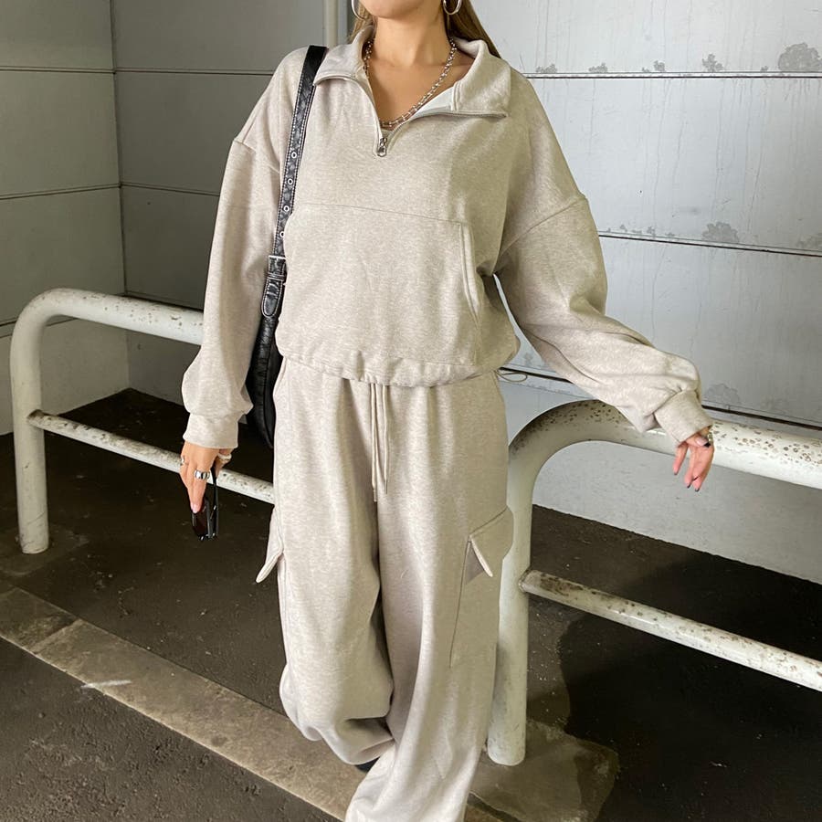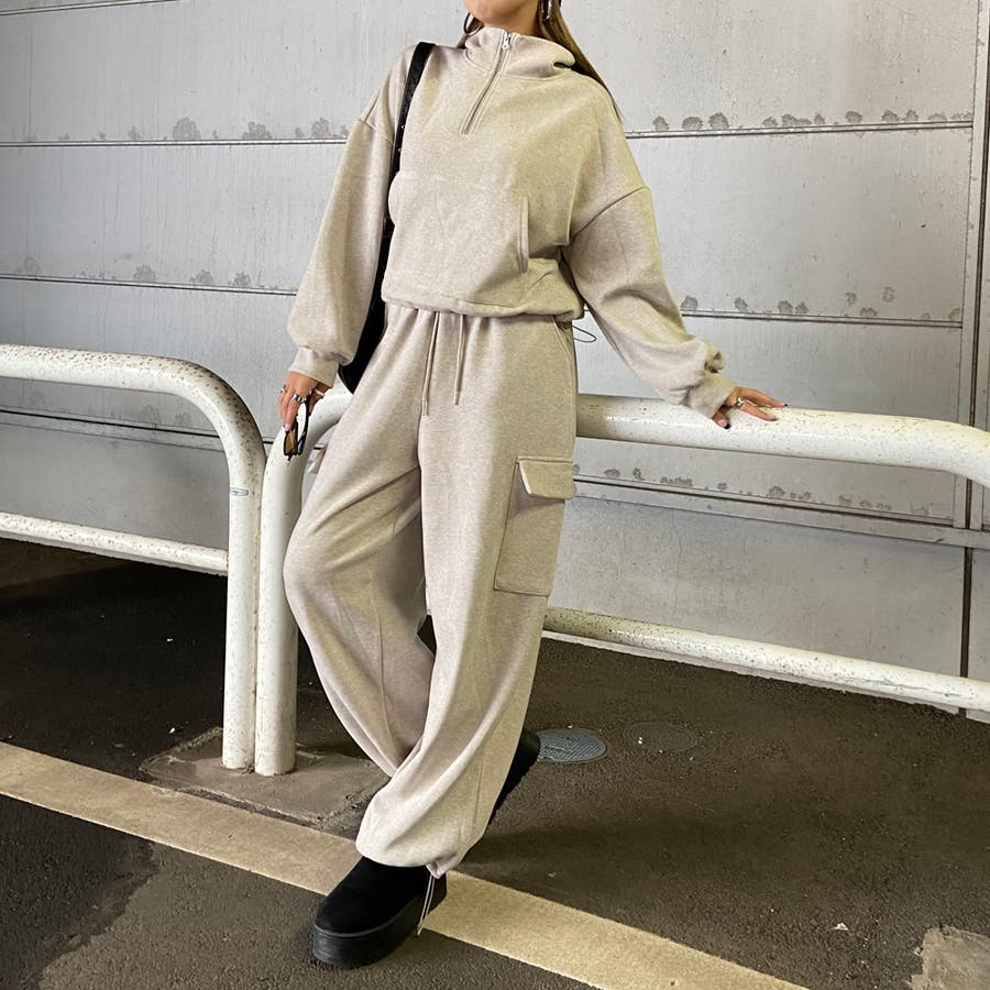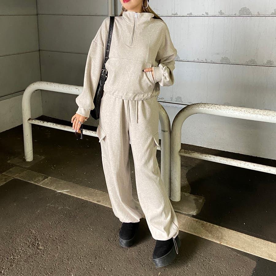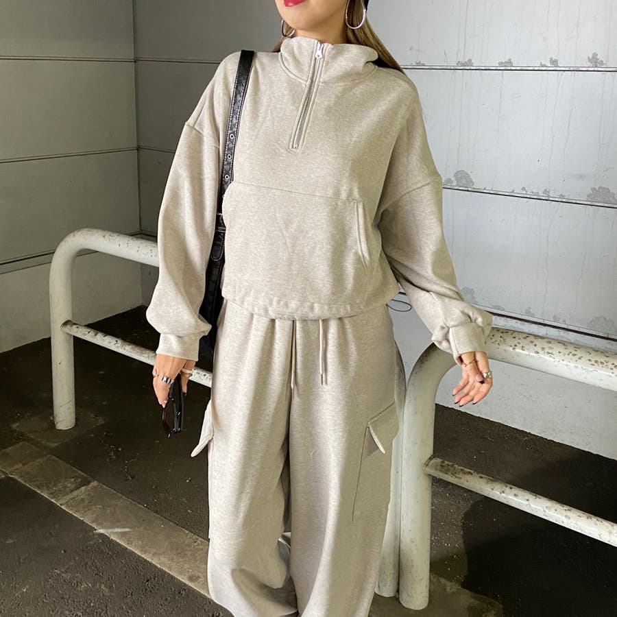 ZIPハイネックトップス・カーゴパンツセットアップ