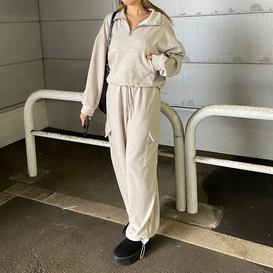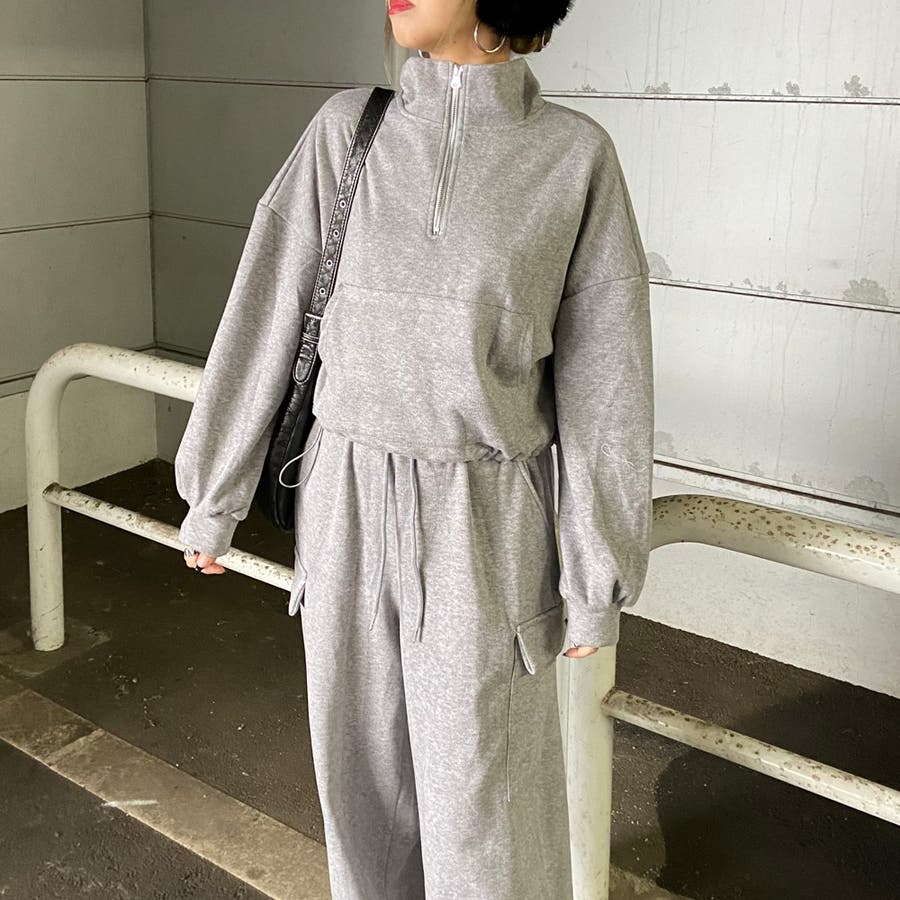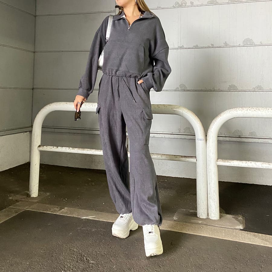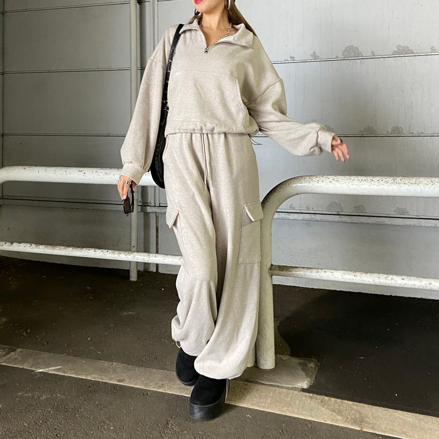 ZIPハイネックトップス・カーゴパンツセットアップ