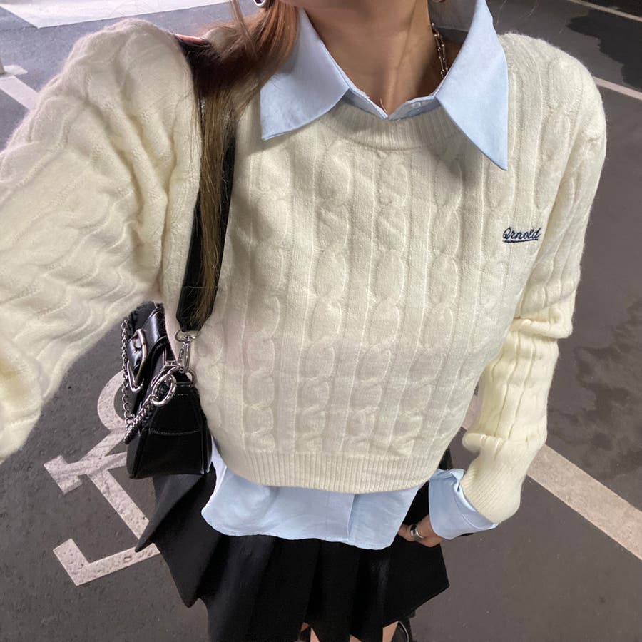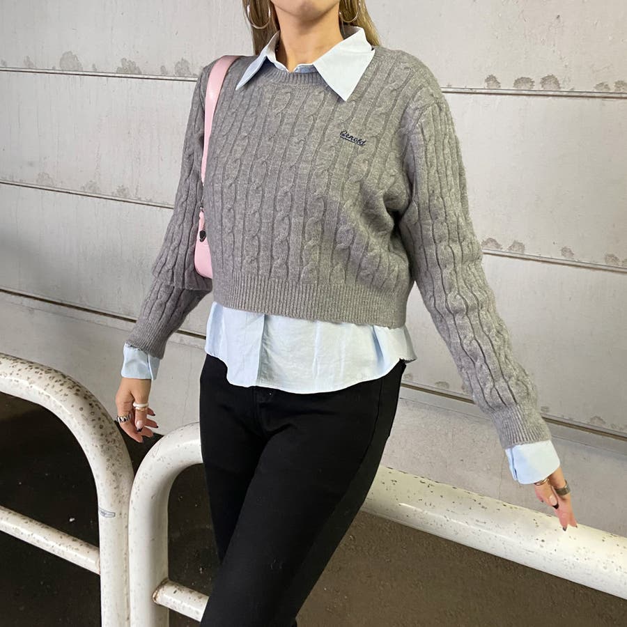 2026/2026新作/2025/2025新作/2025AW/2026SS/ootd/code/outfit/coordinate/fashion/tops/knit/ウェア/レディース/ファッション/おしゃれ/合わせやすい/大人/女性/韓国/韓国ファッション/韓国通販/韓国ストリート/海外ファッション/海外ガール/10代/20代/30代/40代/50代/春/秋/冬/SS/AW/秋服/冬服/春服/人気/定番/新作/新着/新規/流行/トレンド/モード/フェミニン/アメカジ/レトロ/ストリート/クール/マニッシュ/サステナブル/キレイめ/ナチュラル/ミリタリー/ガーリー/カジュアル/大人カジュアル/スポーティー/スポーティ/スポーツミックス/スポーツMIX/スケーター/シンプル/ベーシック/ノームコア/トラッド/セクシー/ギャル/Y2K/Y3K/サイバー/サイバーファッション/近未来感/地雷系/量産型/ゴスロリ/パンク/ロック/デザイン/伸縮性/ストレッチ/ニット/ニットトップス/ニットプルオーバー/ケーブルニット/シャツ/ブラウス/トップス/チュニック/長袖/長袖トップス/長袖ニット/重ね着/レイヤード/レディース/異素材/異素材切替/異素材MIX/ニットチュニック/デニム切替/デニム/見せかけ/レイヤードデザイン/着回し/おすすめ/デイリー/コーデ/コーディネート/プチプラ/可愛い/かわいい/かっこいい/配色/バイカラー/シャツ/ブラウス/ショートトップス/クロップド丈/ショート丈/骨格ナチュラル/骨ナチュ/骨格ストレート/骨スト/骨格ウェーブ/骨ウェブ/オルチャン/ワンホン/イエベ/ブルべ/高身長/低身長/ゆったり/リラックス/ラフ/ルーズ/リラクシー/カジュアルウェア/カジュアルコーデ/お出掛けコーデ/デートコーデ/秋コーデ/冬コーデ/春コーデ/シティシック/シミラールック/モノトーン/グランジ/グランジファッション/グランジストリート/ブロケットコア/ブロークコアコージーファッション/グランパコア/メンズライク/ユニセックス/ペアルック/リンクコーデ/ユーティリティ/セット/インナー付き/SET/セット/アンサンブル/2点セット/シャツセット/ニットセット/シャツ付き/ニット付き/ショートシャツ/ショートニット/刺繍ロゴ/ロゴ/アイボリー/シロ/白/グレー/灰色/ネイビー/紺