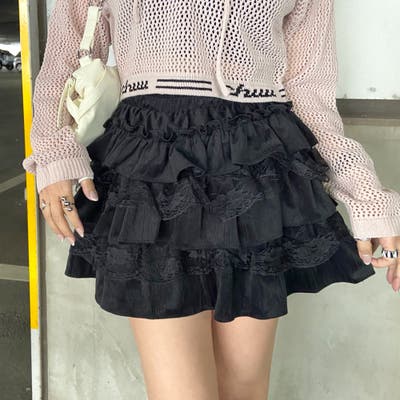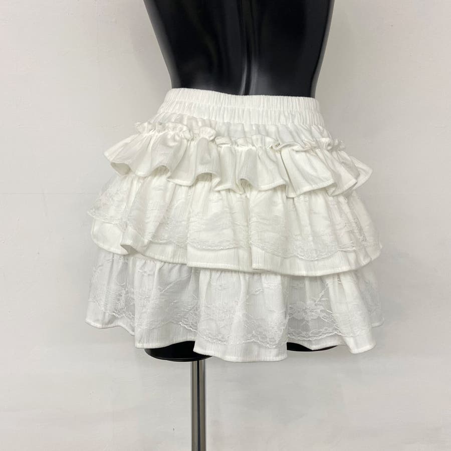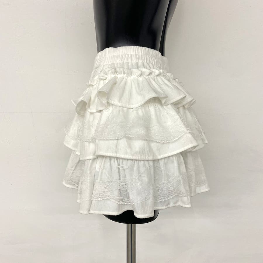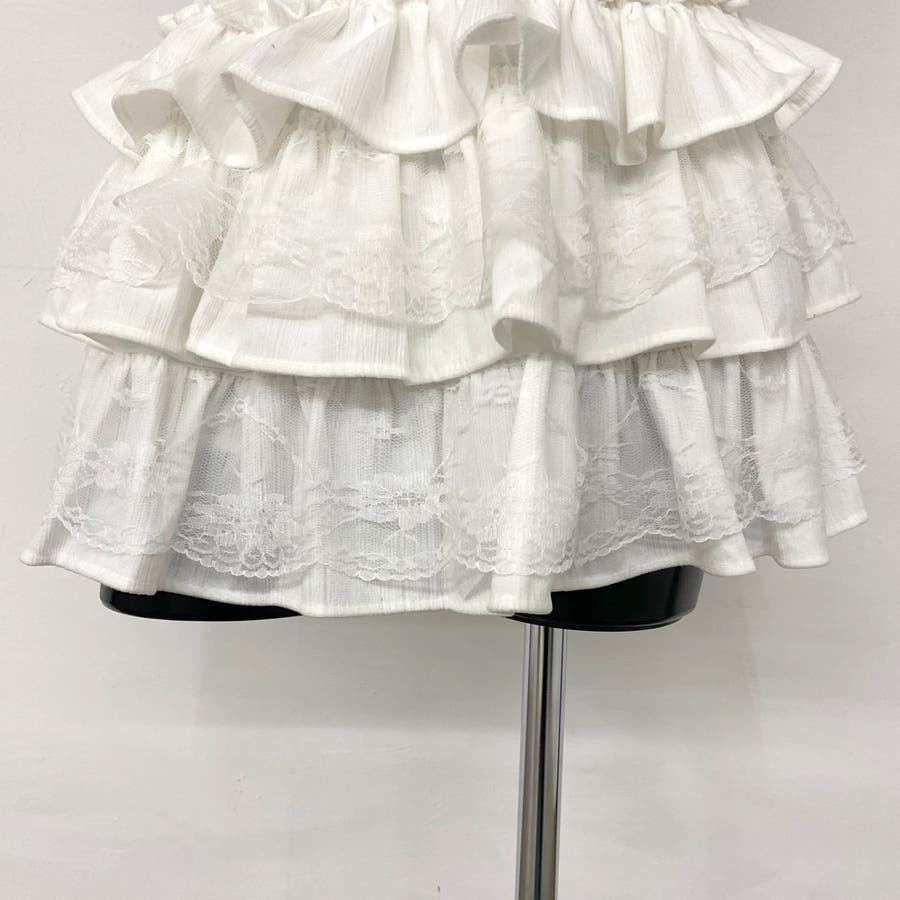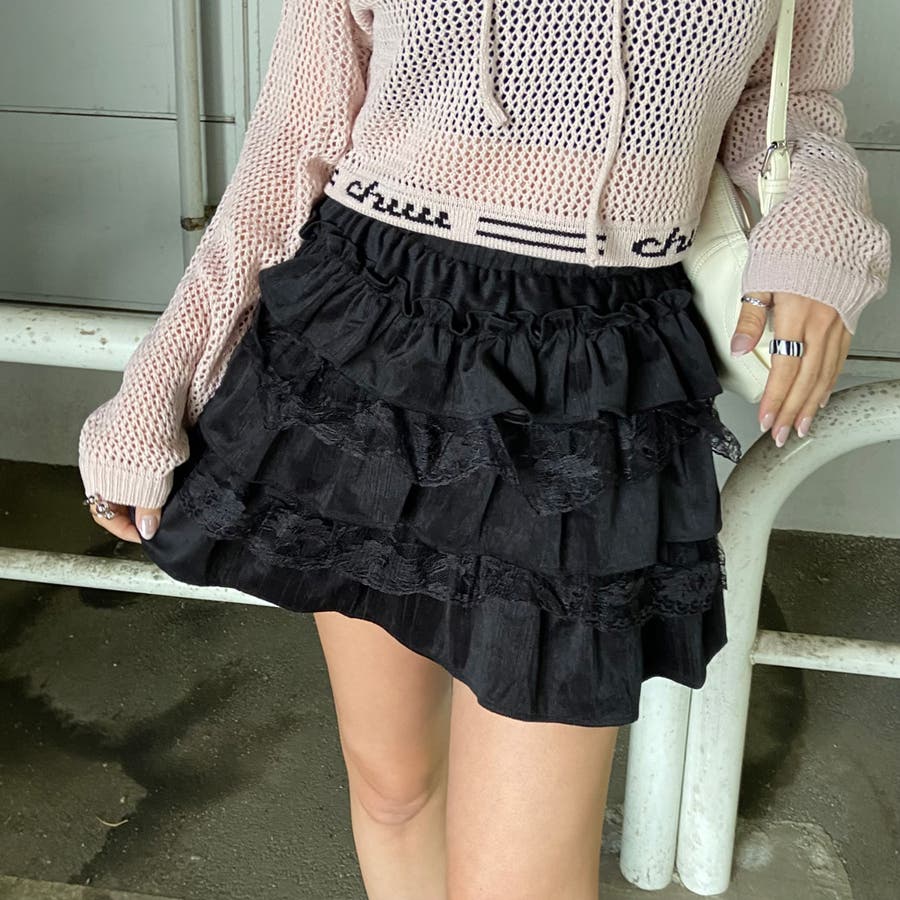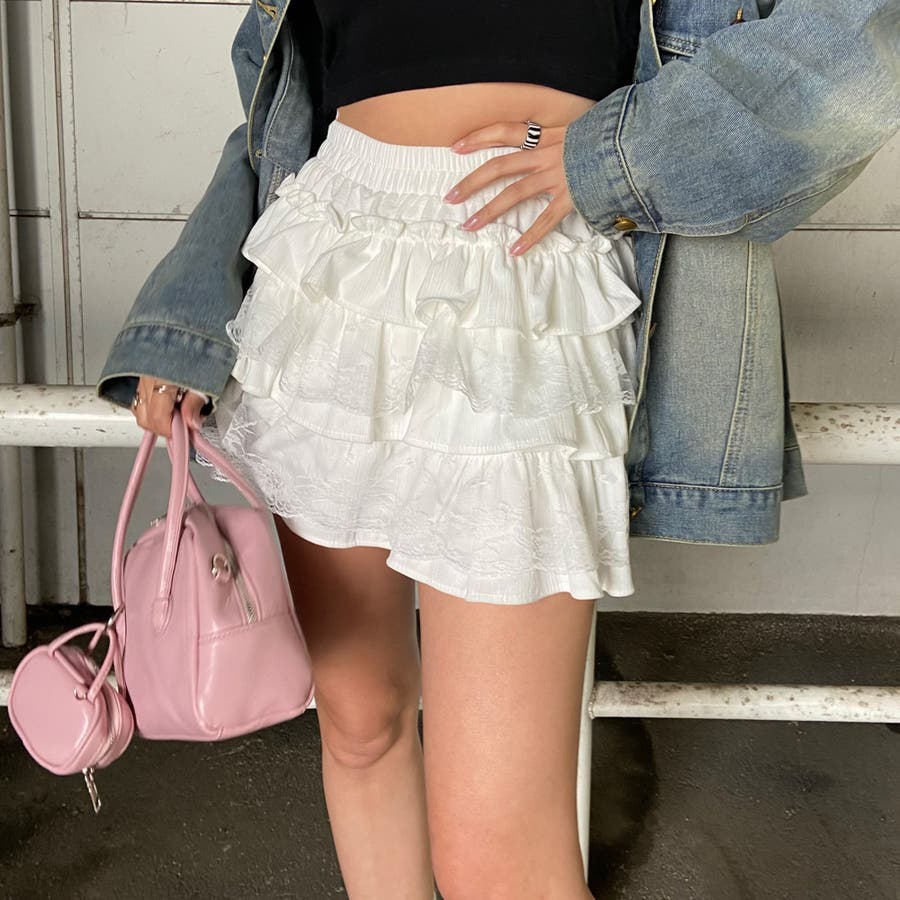 レース切り替えティアードミニスカート。
