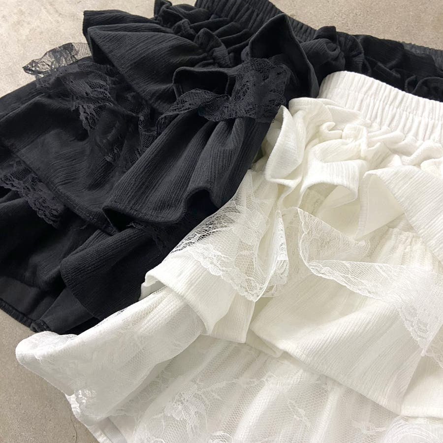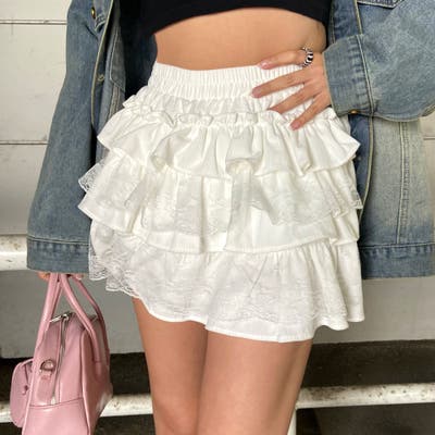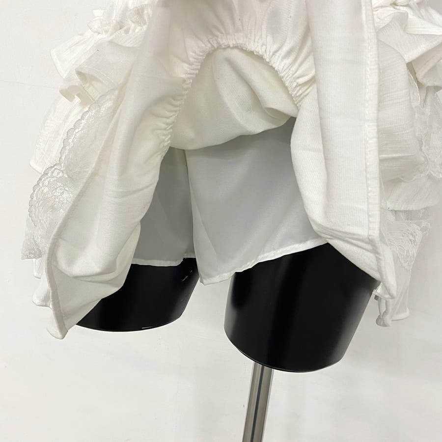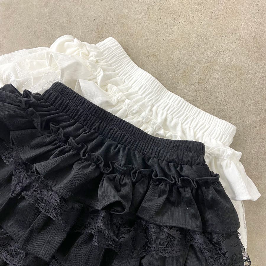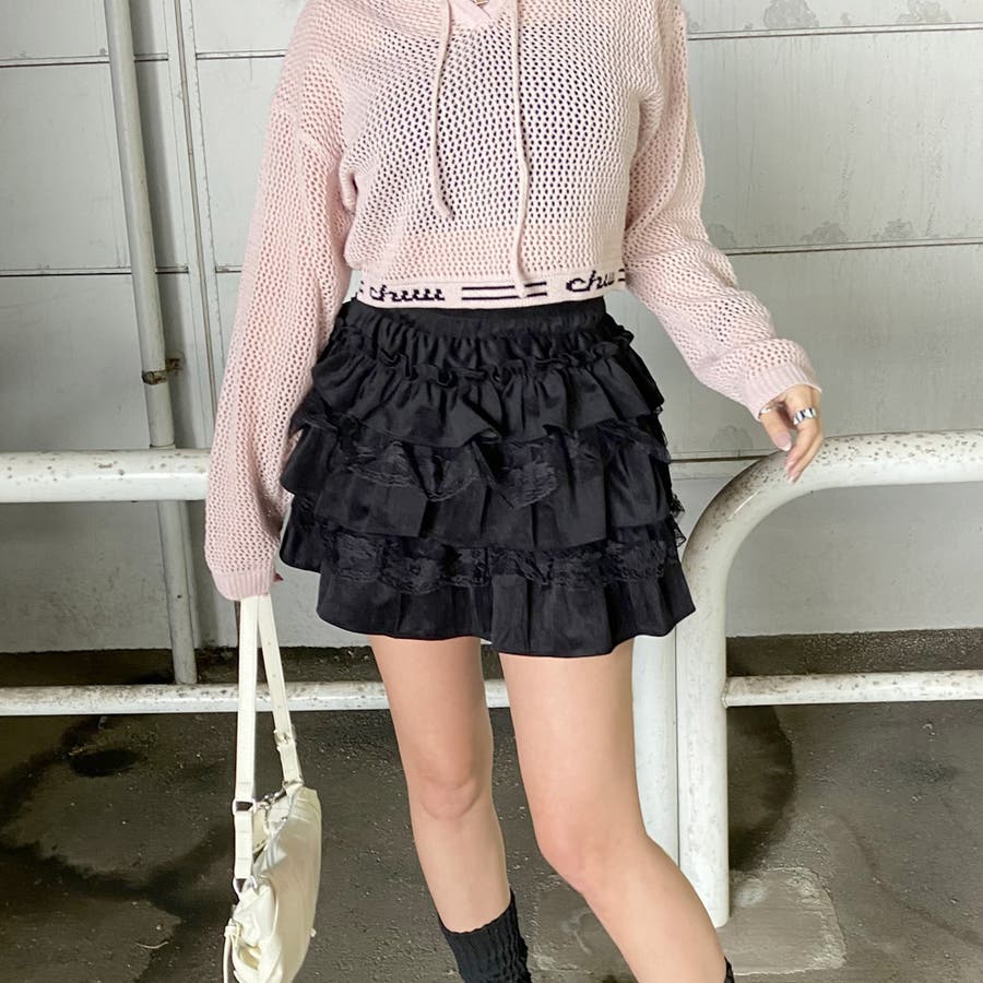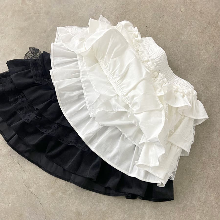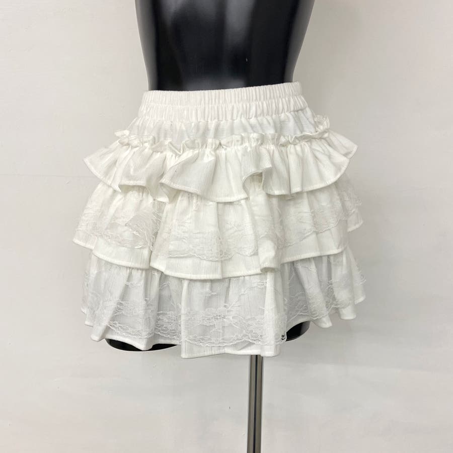 レース切り替えティアードミニスカート。