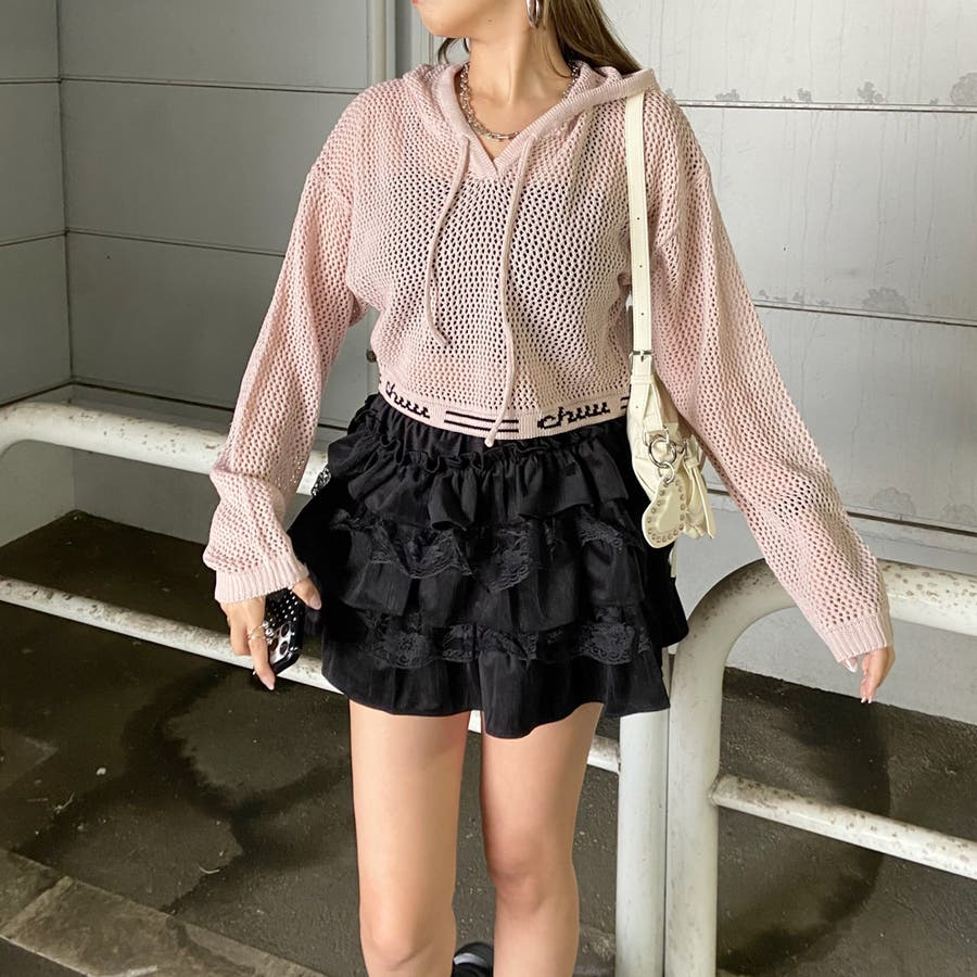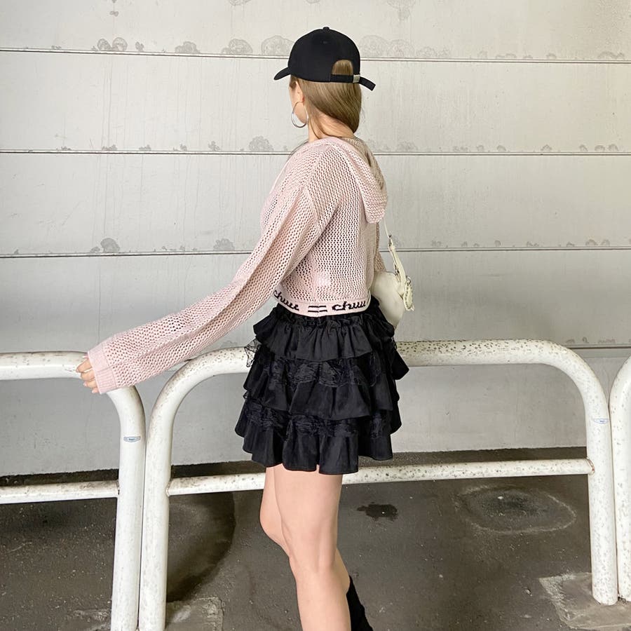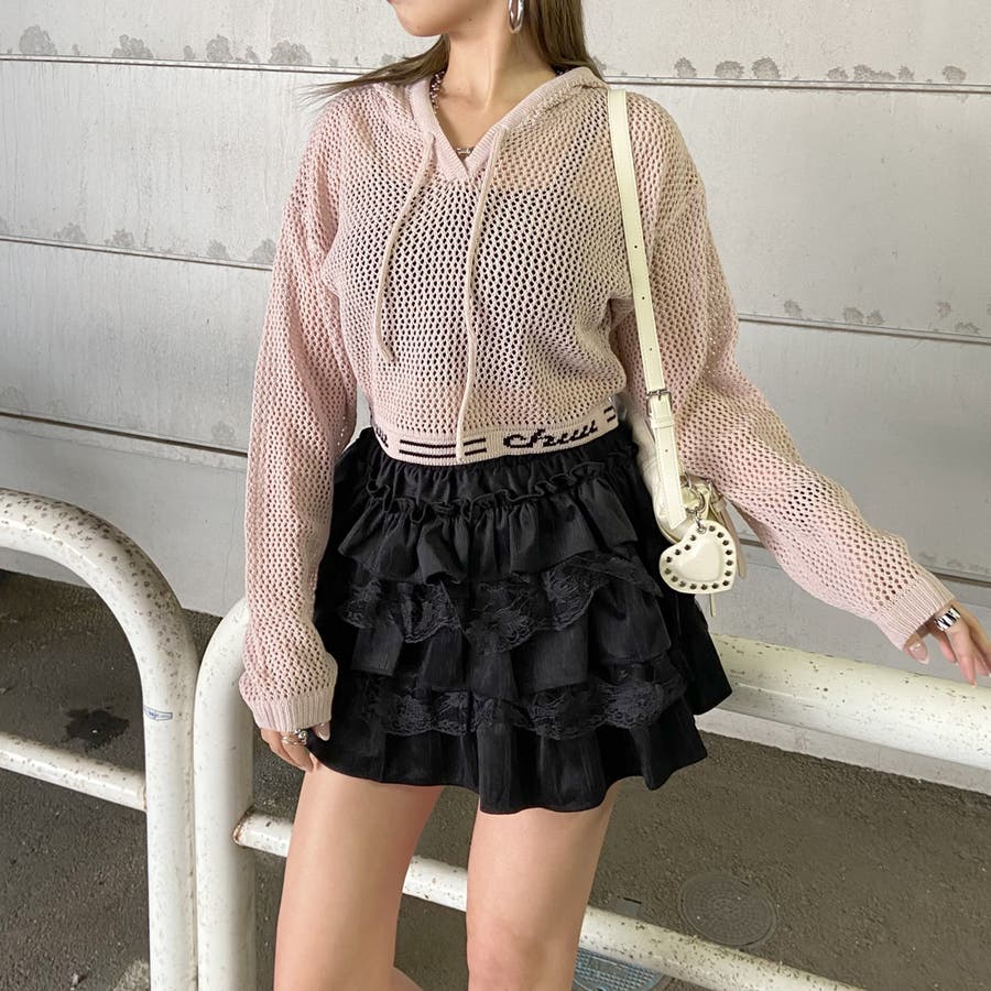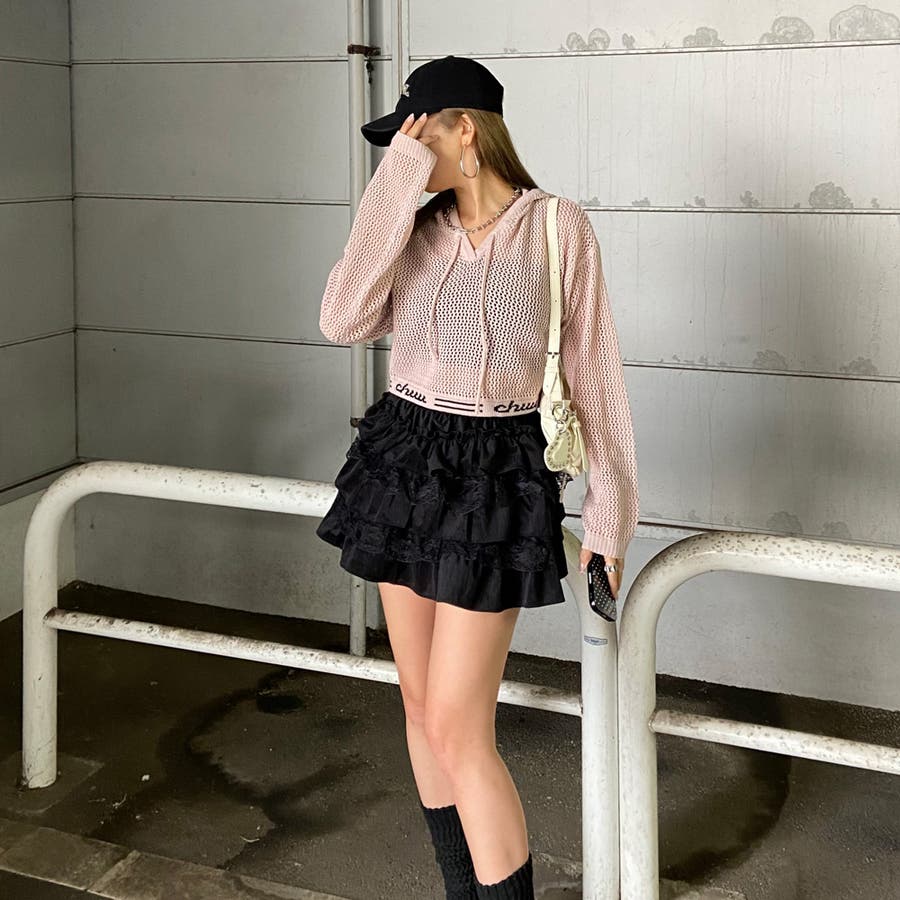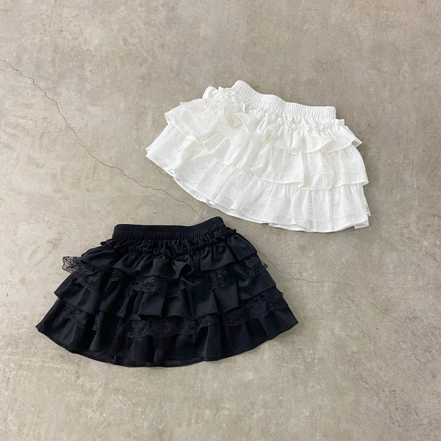 レース切り替えティアードミニスカート。