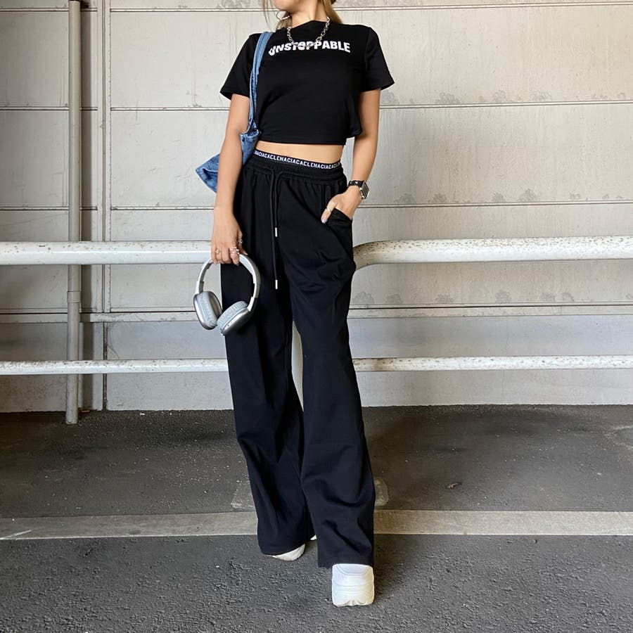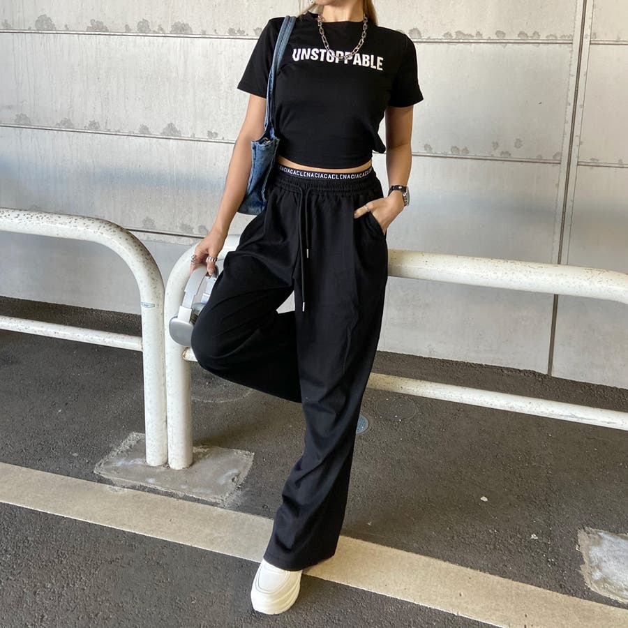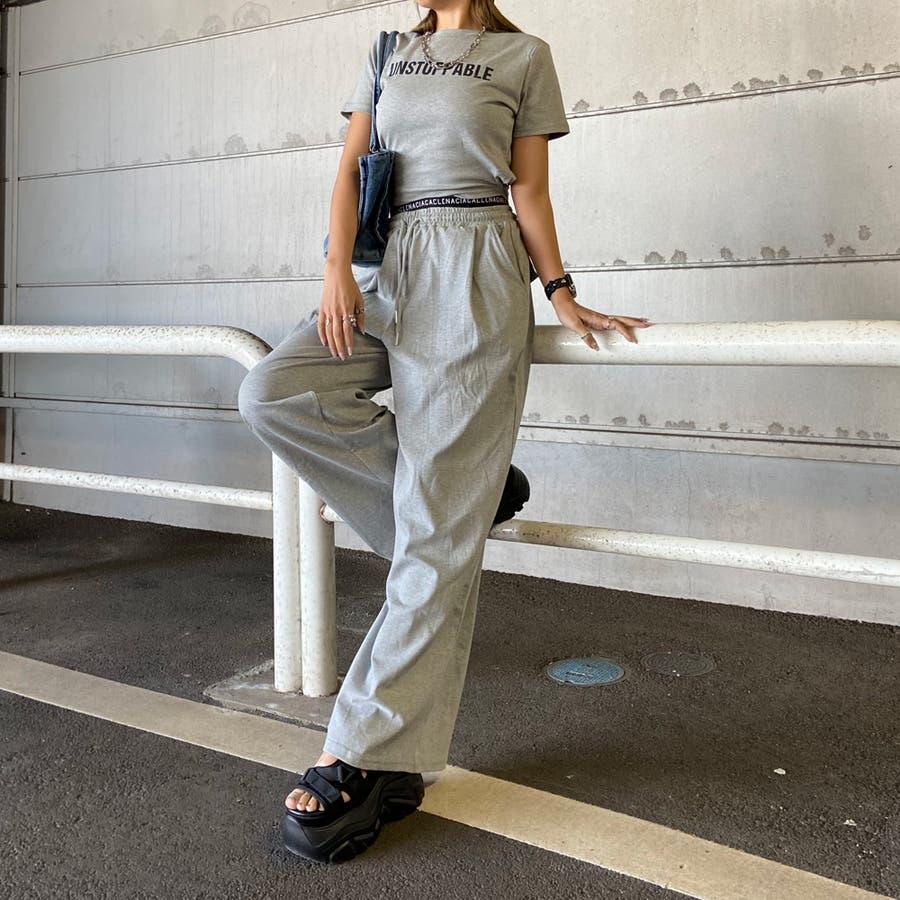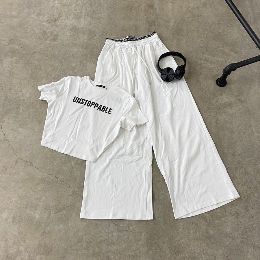 ウエストロゴワイドパンツ・Tシャツセットアップ