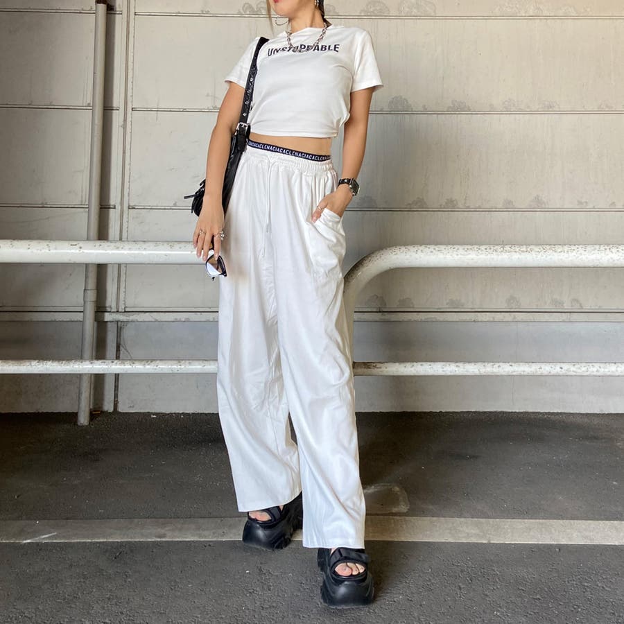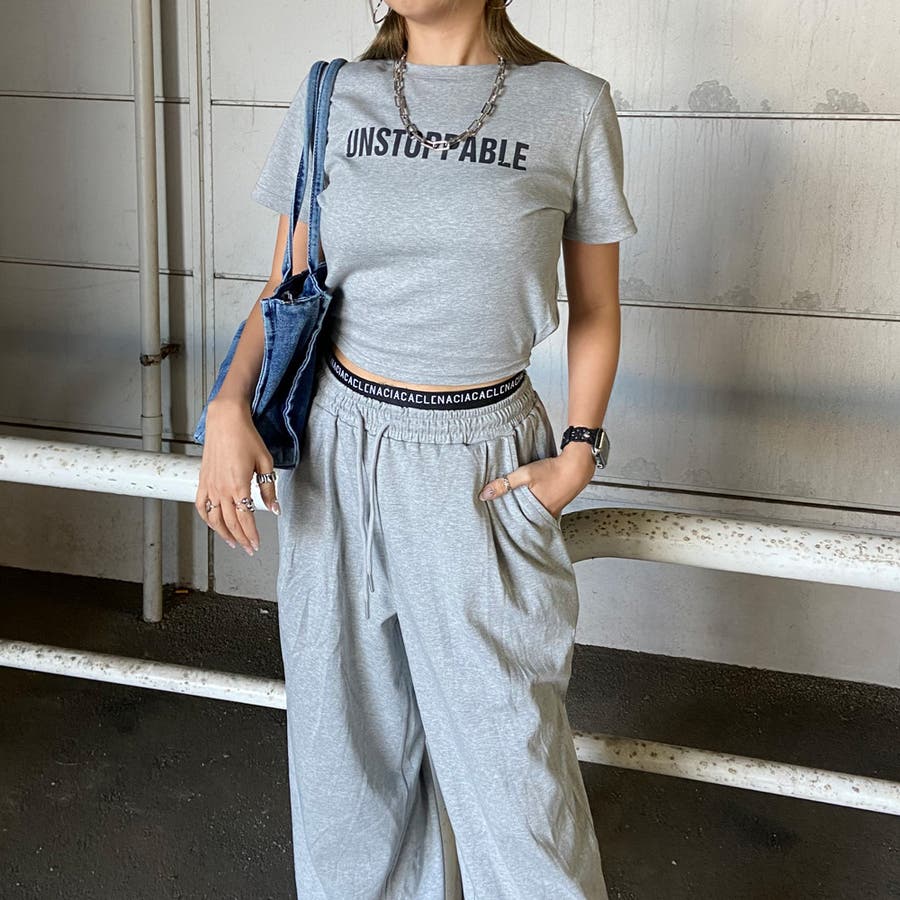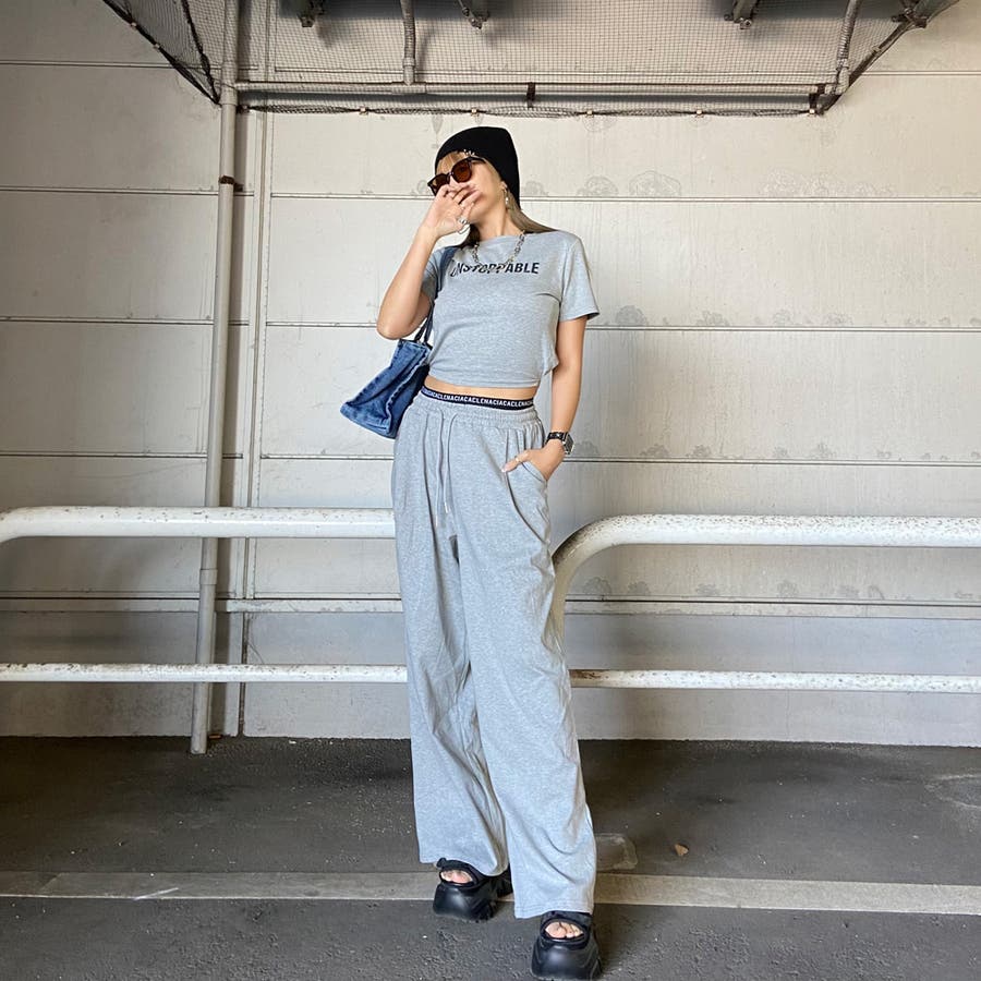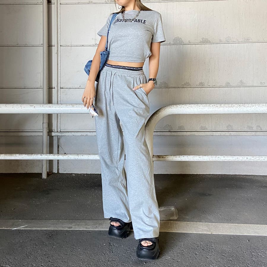 ウエストロゴワイドパンツ・Tシャツセットアップ