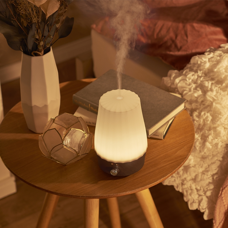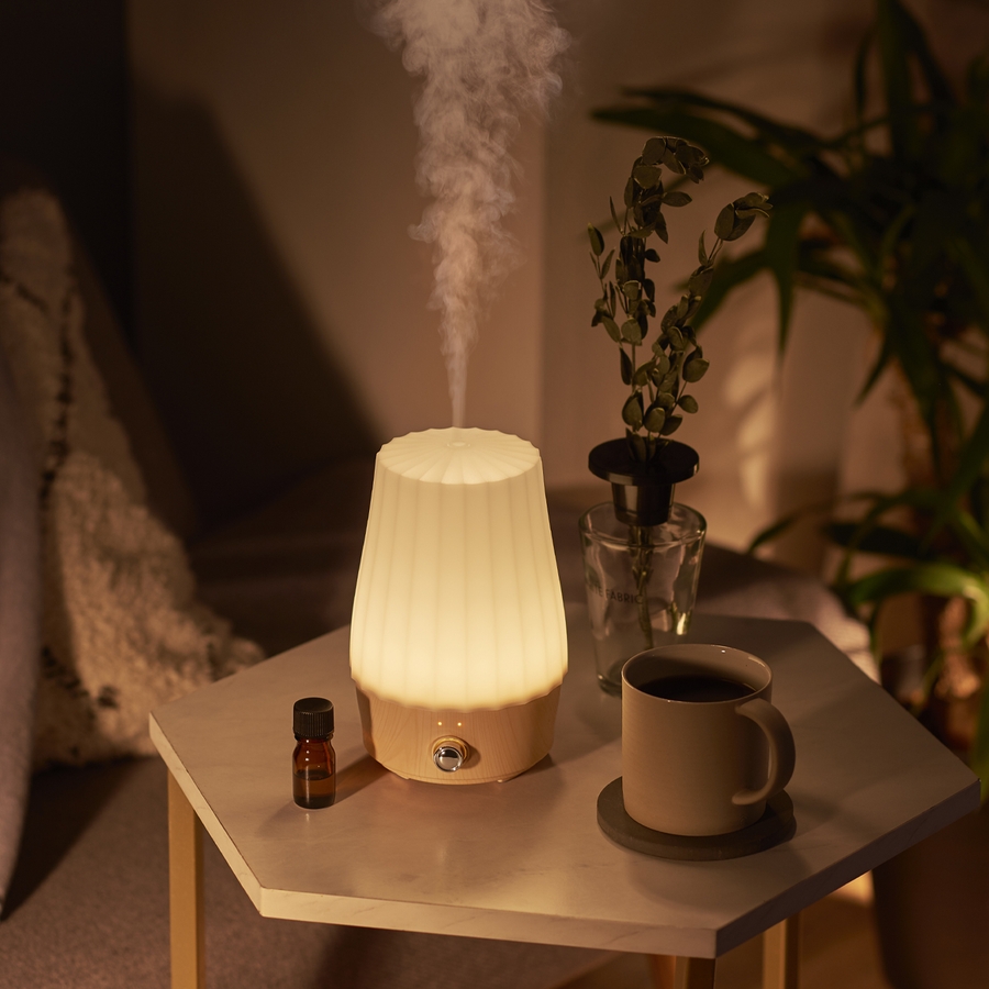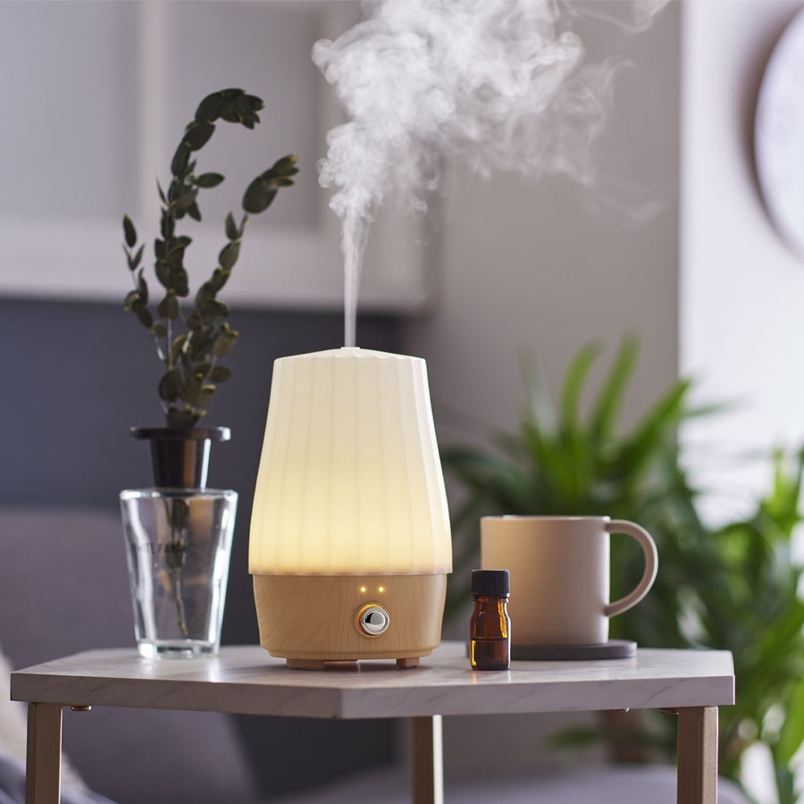 超音波振動でミストとともに香りを拡散するアロマディフューザー。