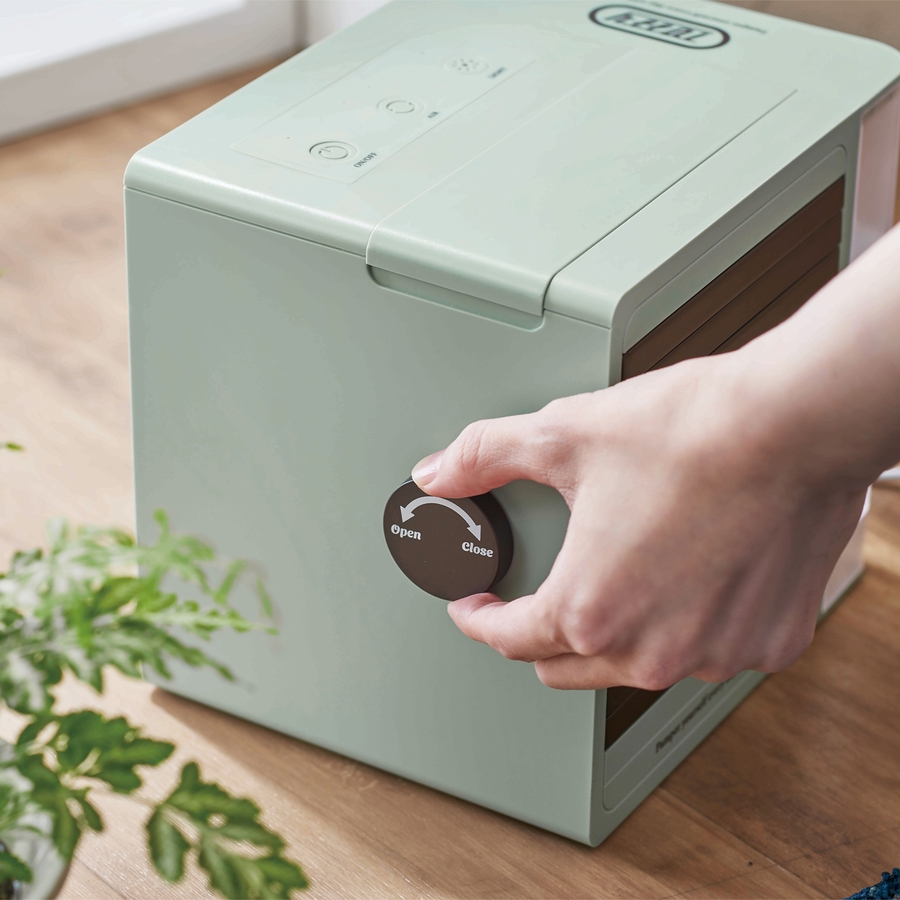 扇風機よりも冷たく、エアコンよりも優しい風で、身体を冷やしすぎることなく、パーソナル空間を涼しく快適にできます。