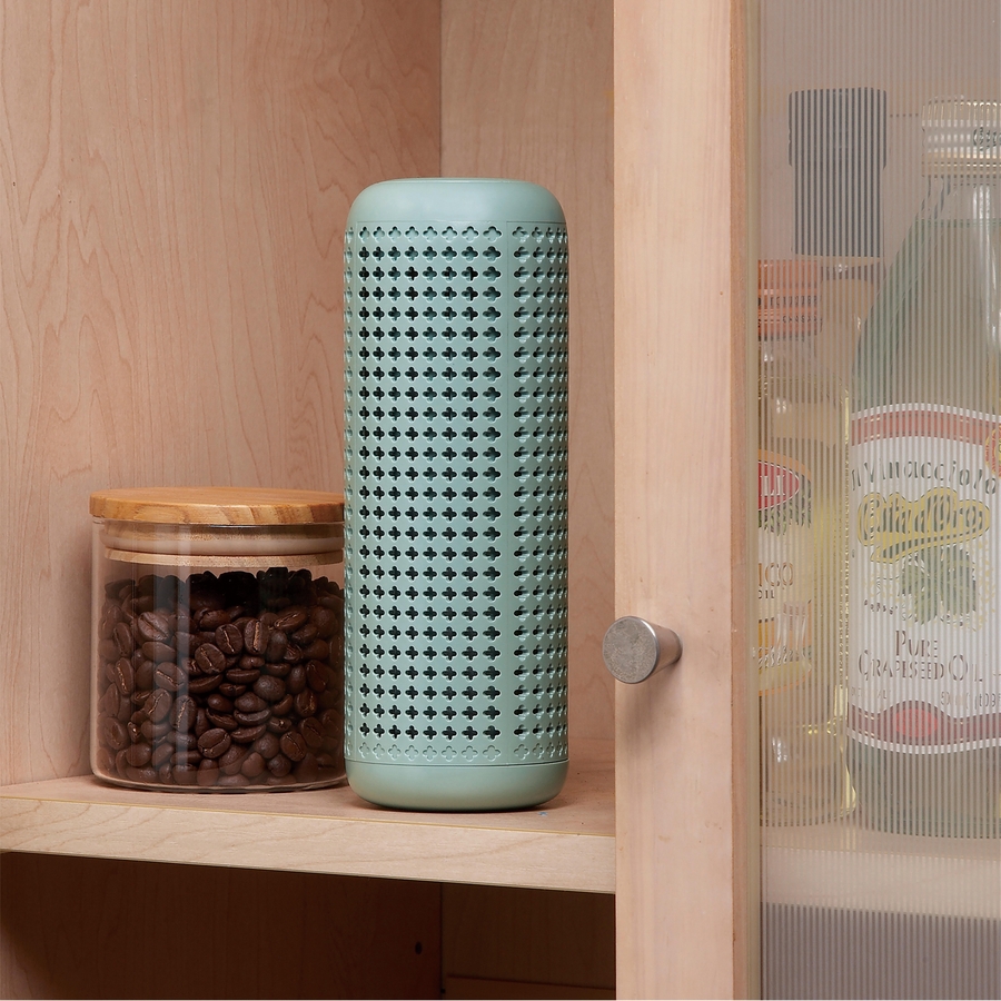 円筒形の本体には吸湿用の穴が360°張り巡らされており、小さいながらしっかりと湿気を吸収します。