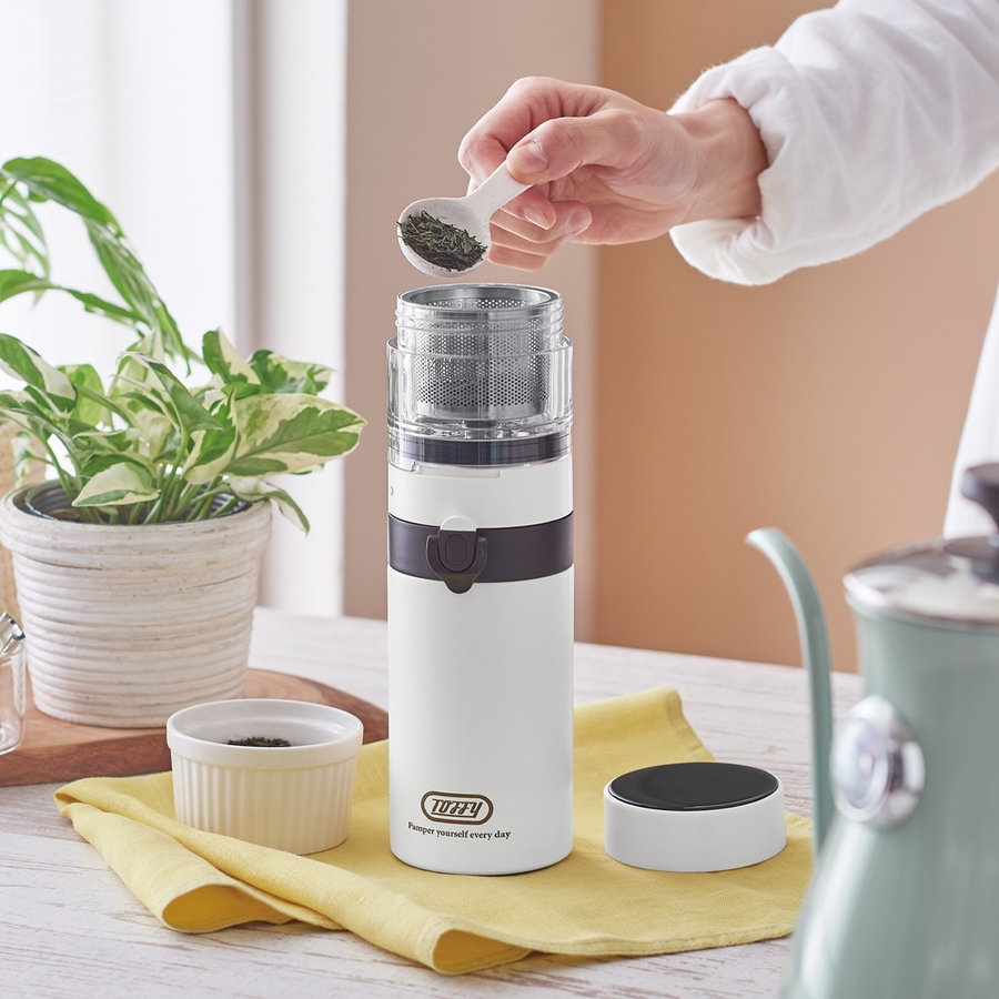 コーヒー/お茶専用のフィルター付き。自分好みのコーヒーや茶葉で淹れたての味と香りを楽しめます。