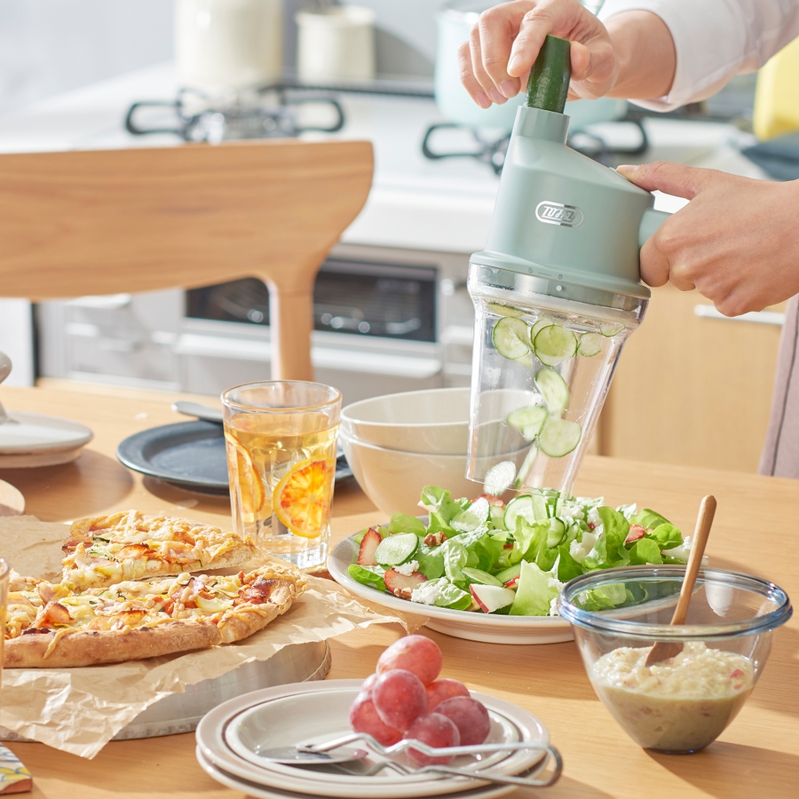 スライサーとチョッパーの2WAY仕様。包丁やまな板いらずで時短調理ができる!