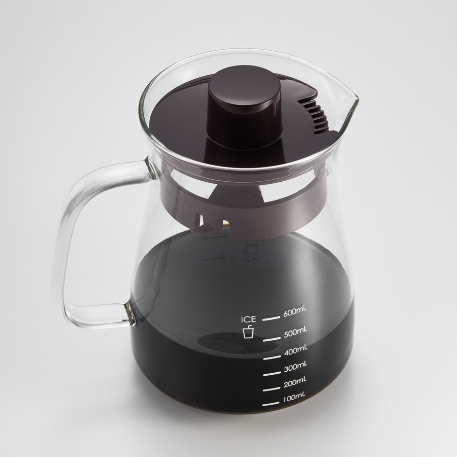 ガラスポットふたをすれば、残ったアイスコーヒーをそのまま冷蔵庫に保存できます。