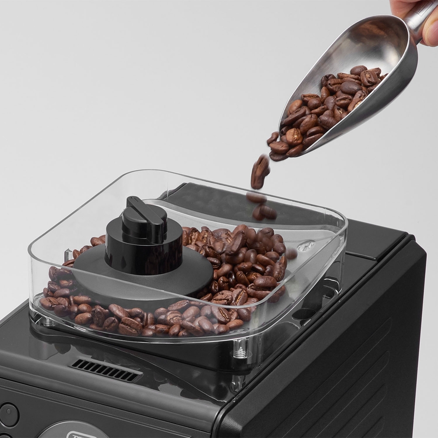 豆タンクには120gまで入れられ、ドリップをする際に計量する必要がない自動投入構造です。