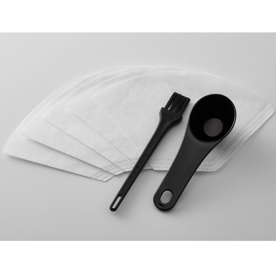 付属品:計量スプーン、掃除用ブラシ、ペーパーフィルター(5枚)、カンタン操作ガイド、ユーザーズガイド(保証書含む)
