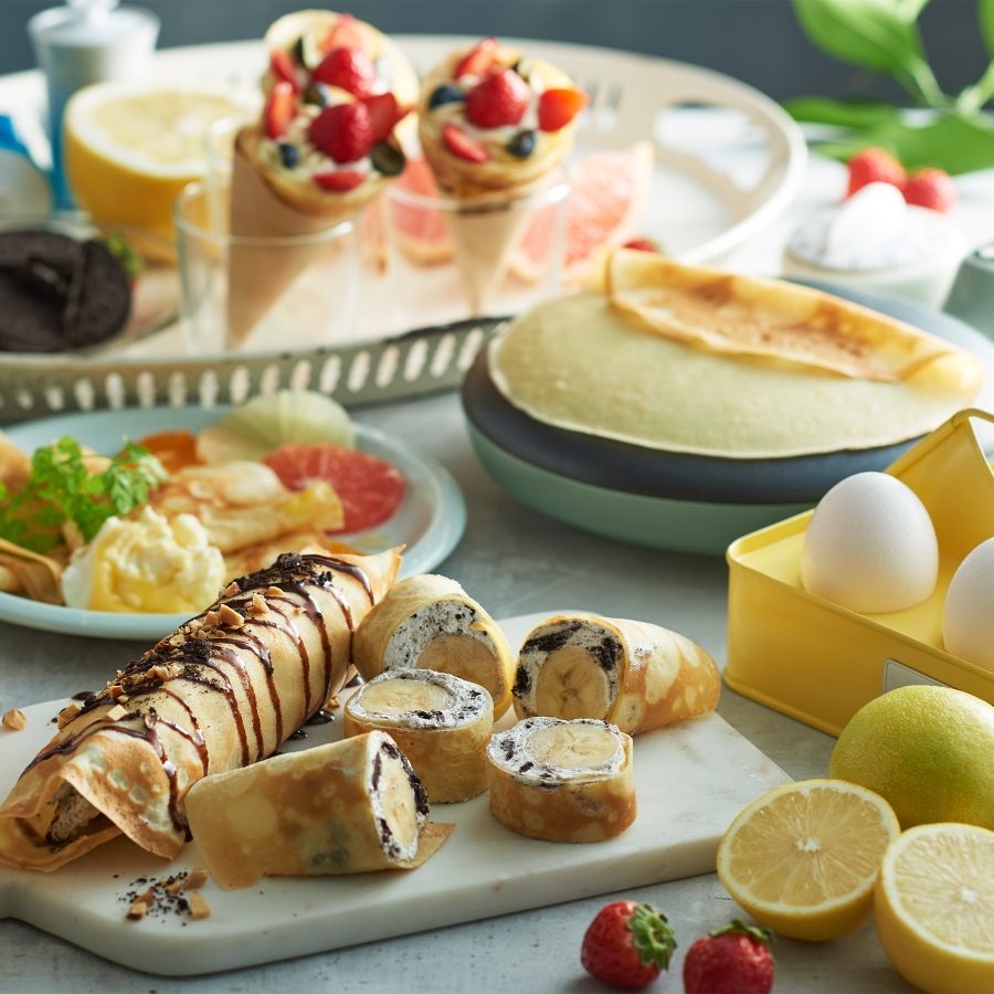 朝ごはんやお子さまのおやつ、ホームパーティーにも最適。みんなで焼けば楽しいクレープパーティーに♪