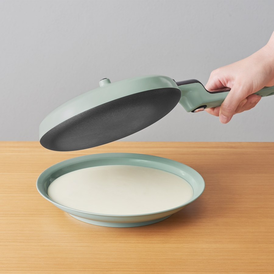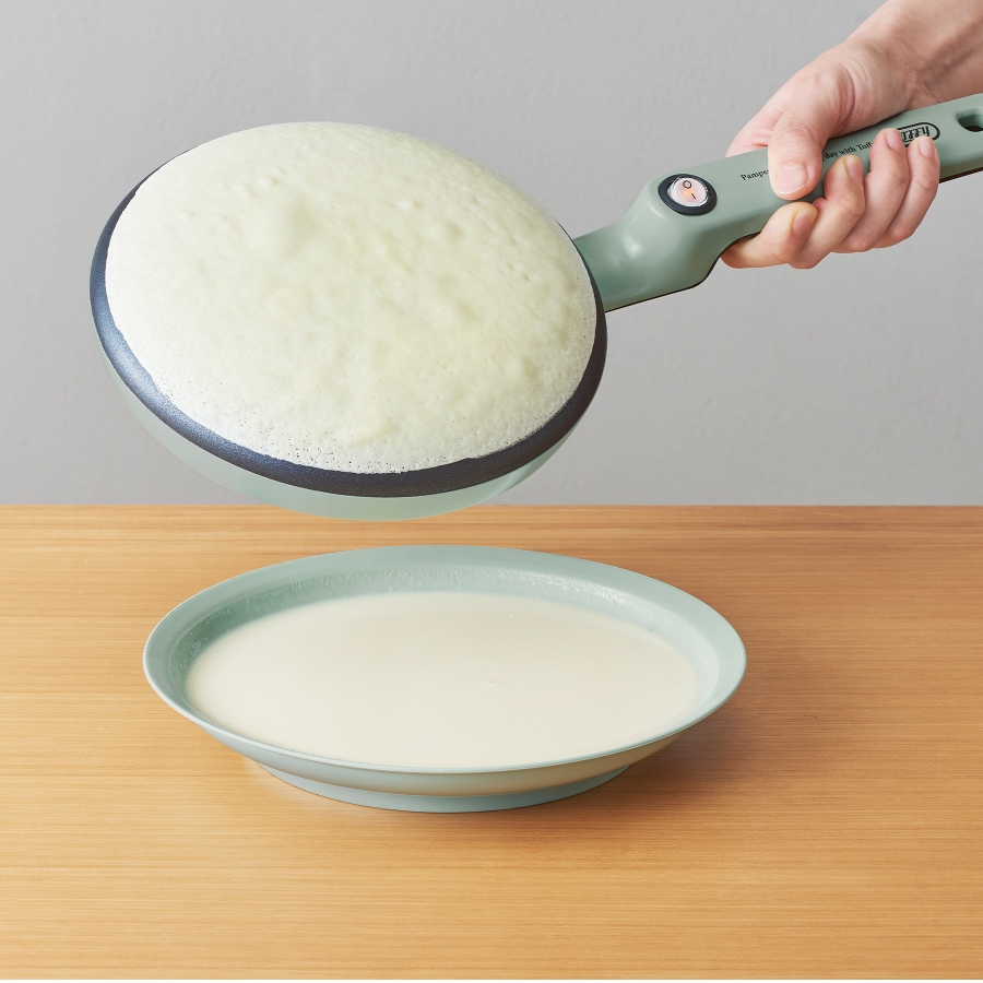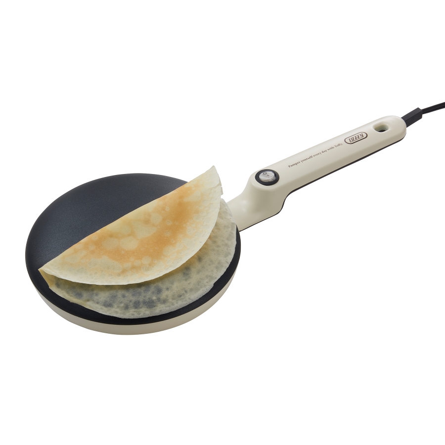 裏返したプレートに生地をつけて焼くことで、薄くて均一な厚みの本格クレープが簡単に焼き上がります。
