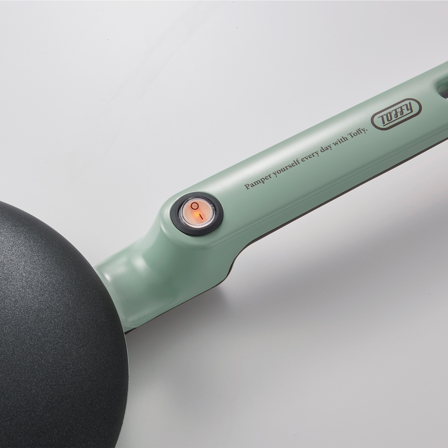 プレートの表面にはフッ素樹脂加工を施し、生地がきれいにはがれやすく、お手入れも簡単です。