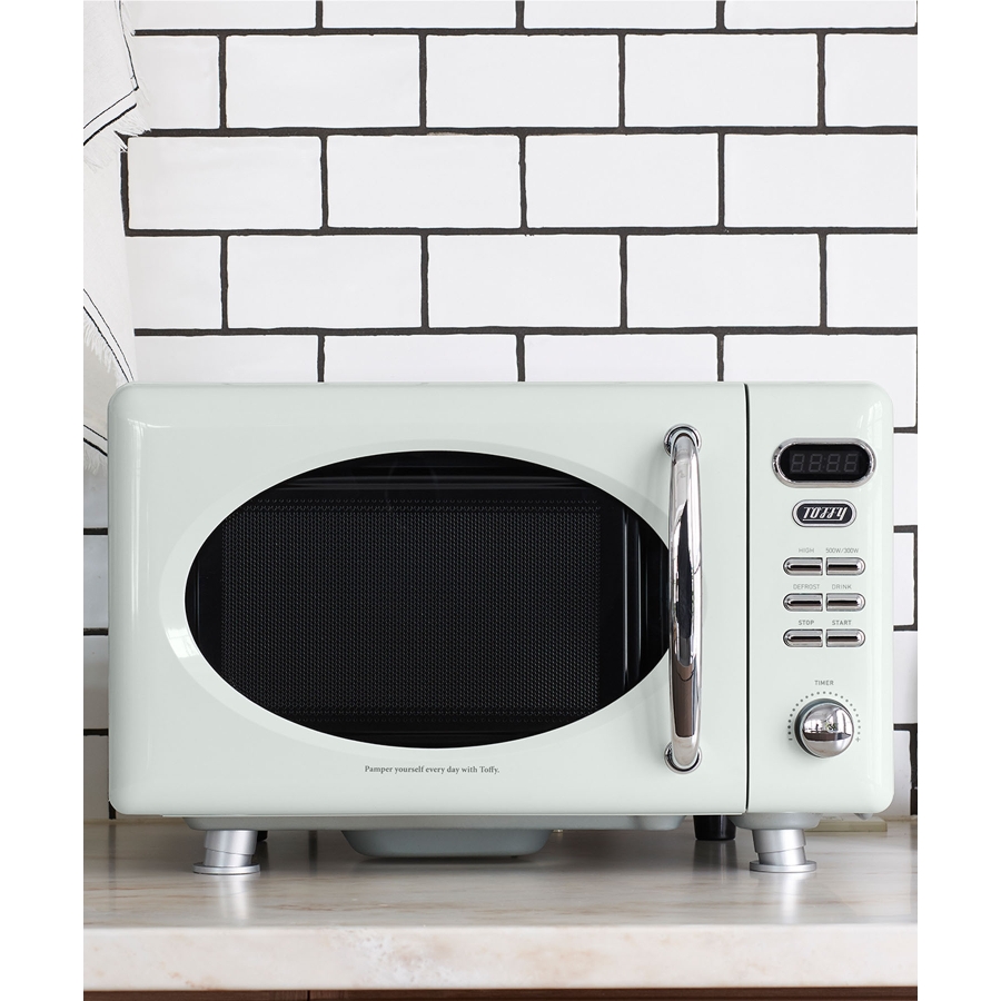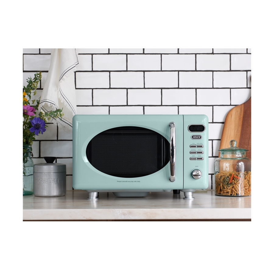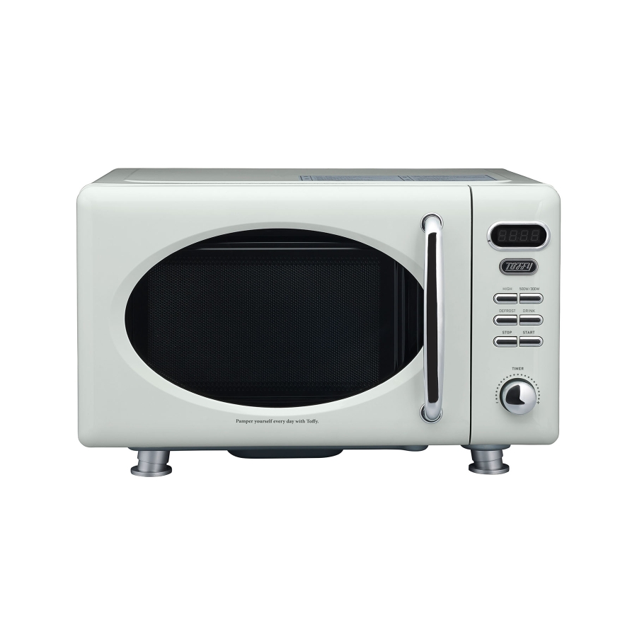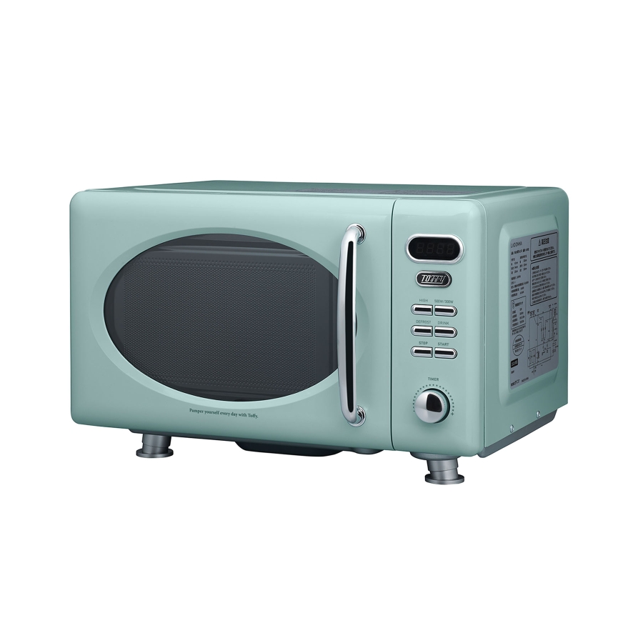 シンプル操作でカンタン調節! フラットな庫内で掃除もしやすいレトロスタイルの電子レンジです。