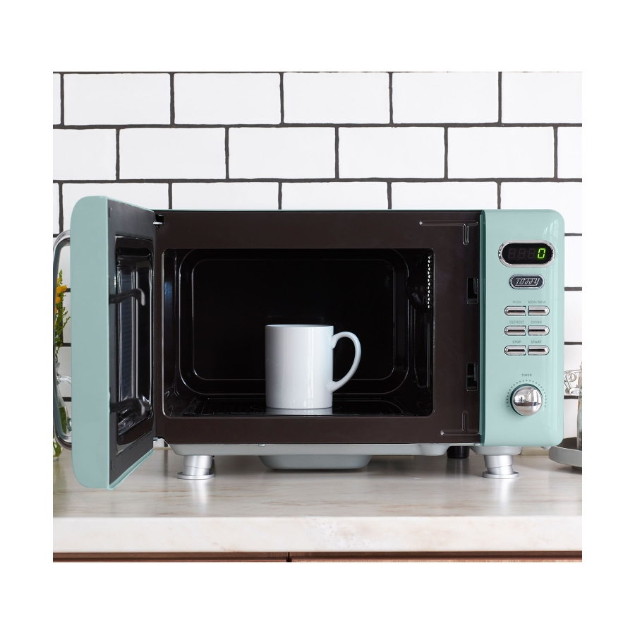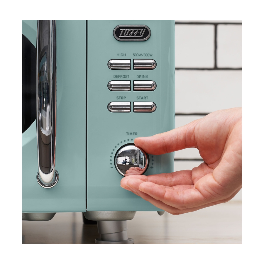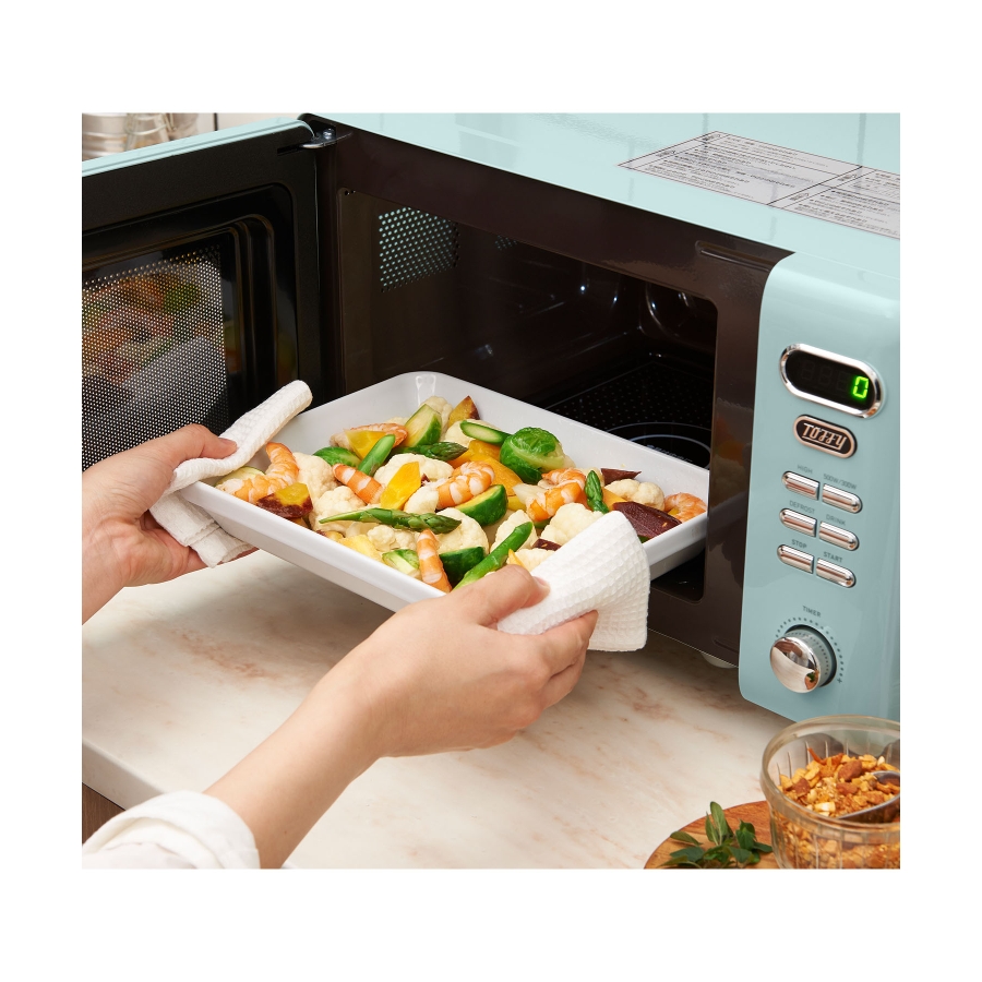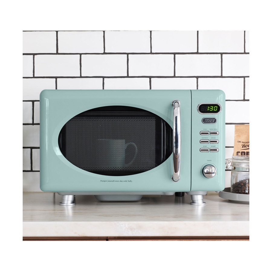 シンプル操作でカンタン調節! フラットな庫内で掃除もしやすいレトロスタイルの電子レンジです。
