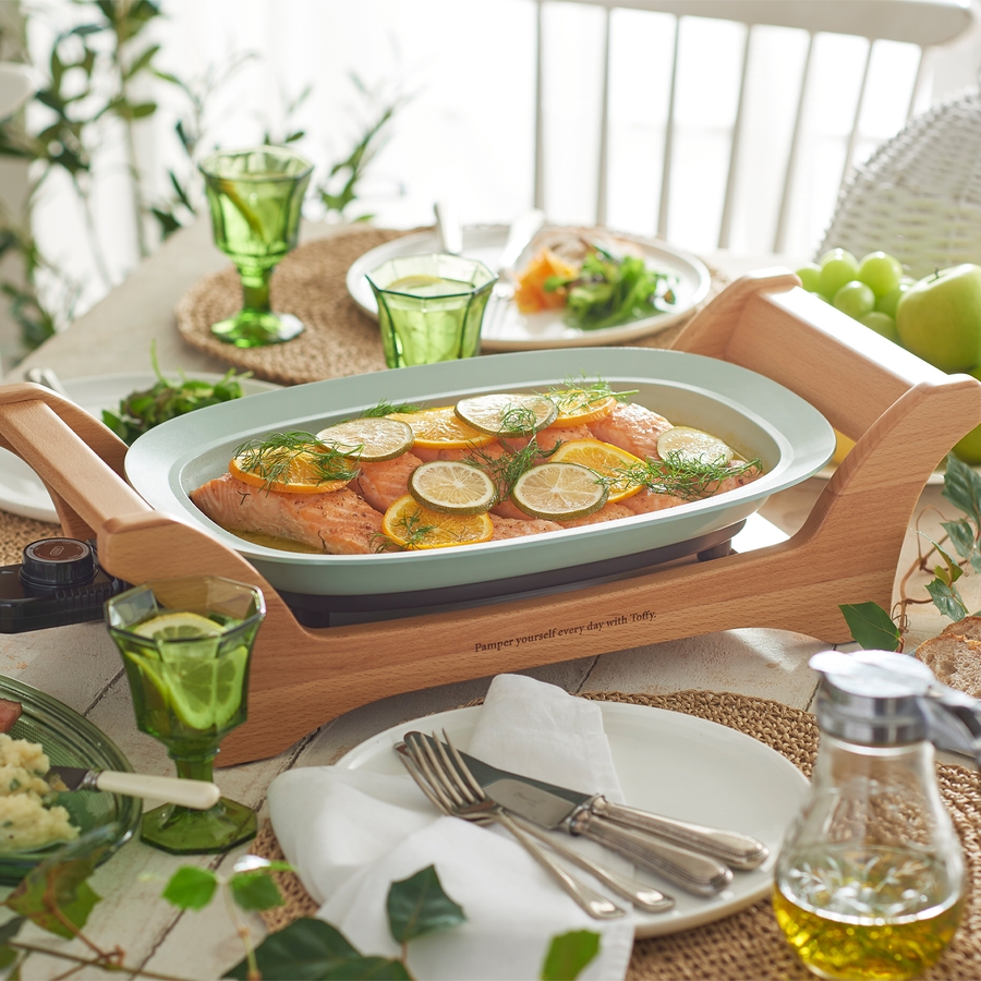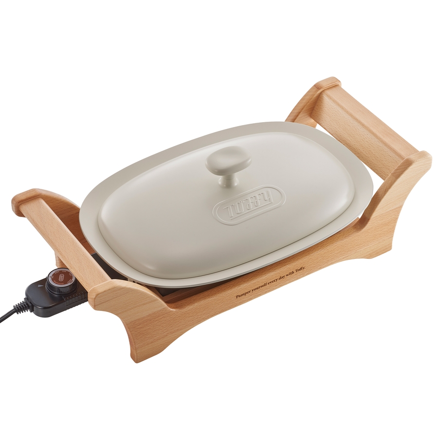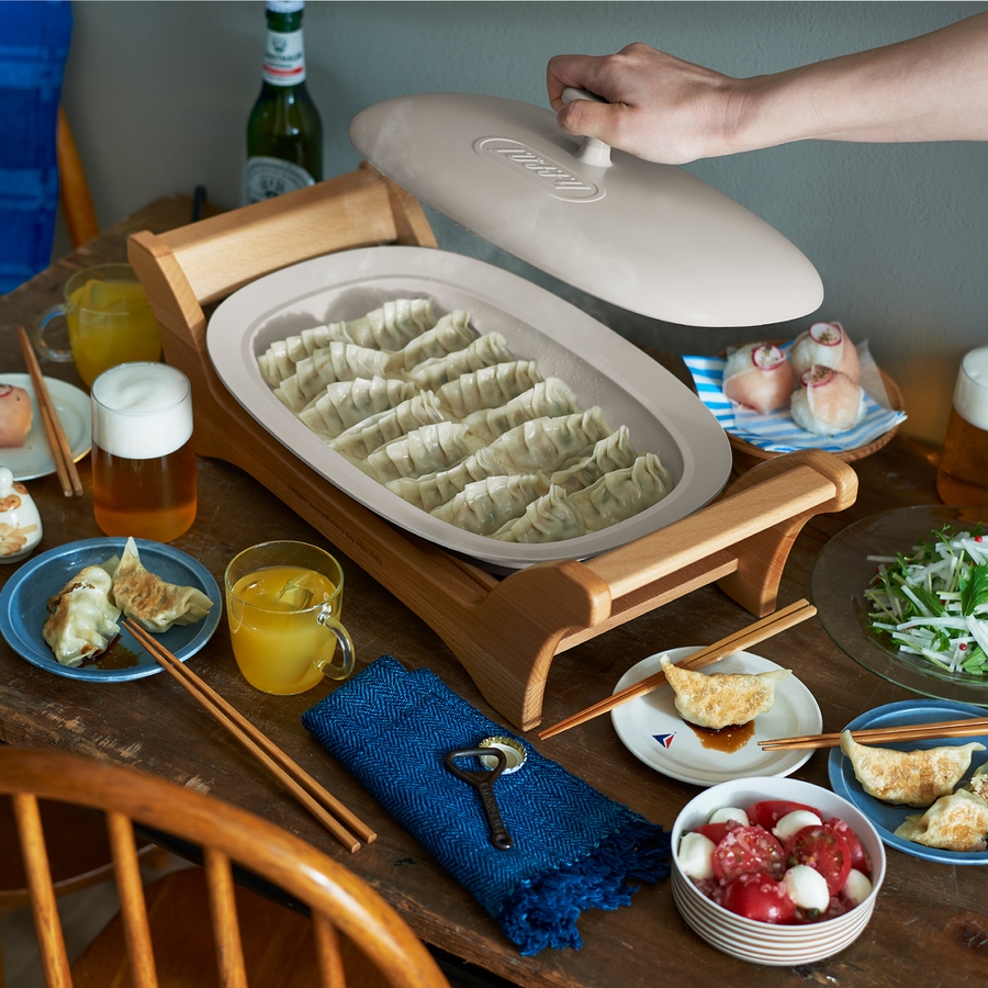 グリルプレートにはセラミック塗装を施し、一見家電とは思えない、食器のような質感を再現しています。