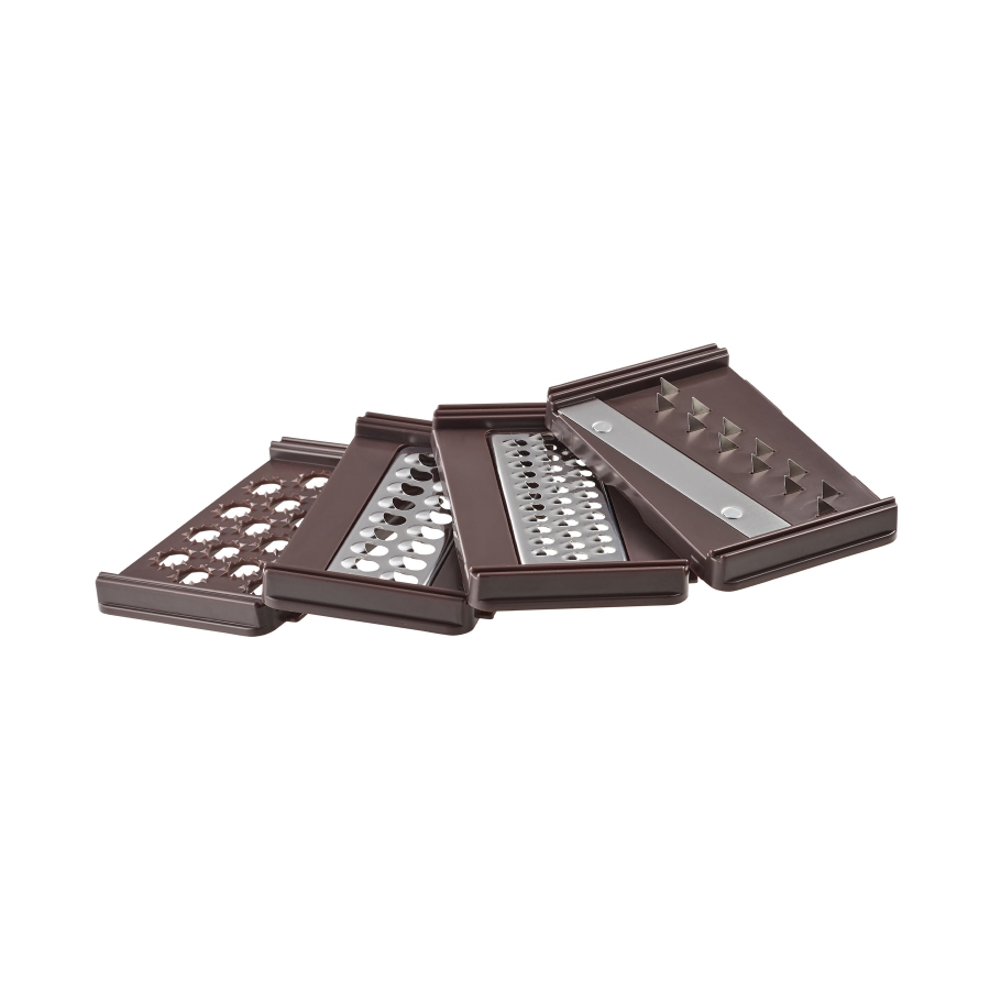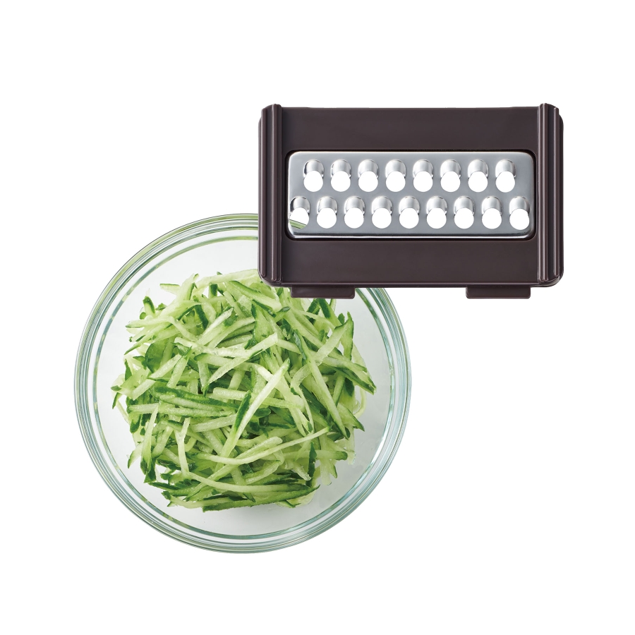 カッタープレートをセットして全5種類「薄切り」「薄千切り」「つま切り」「千切り」「おろし」の多彩なカット。