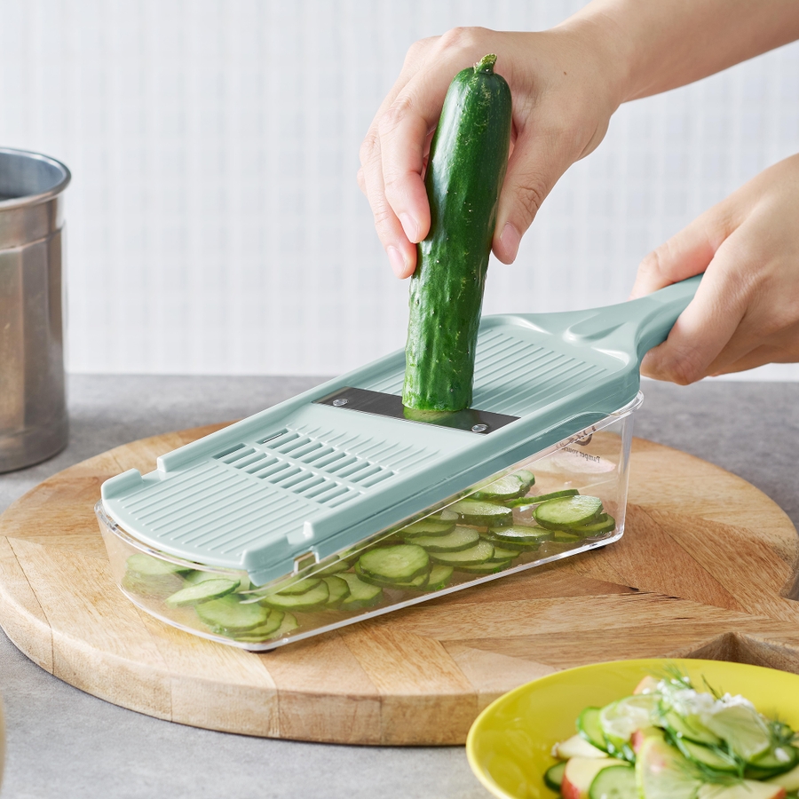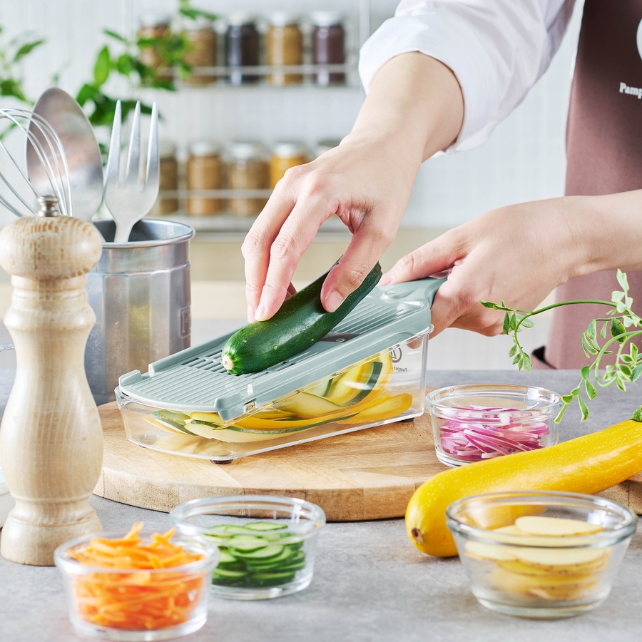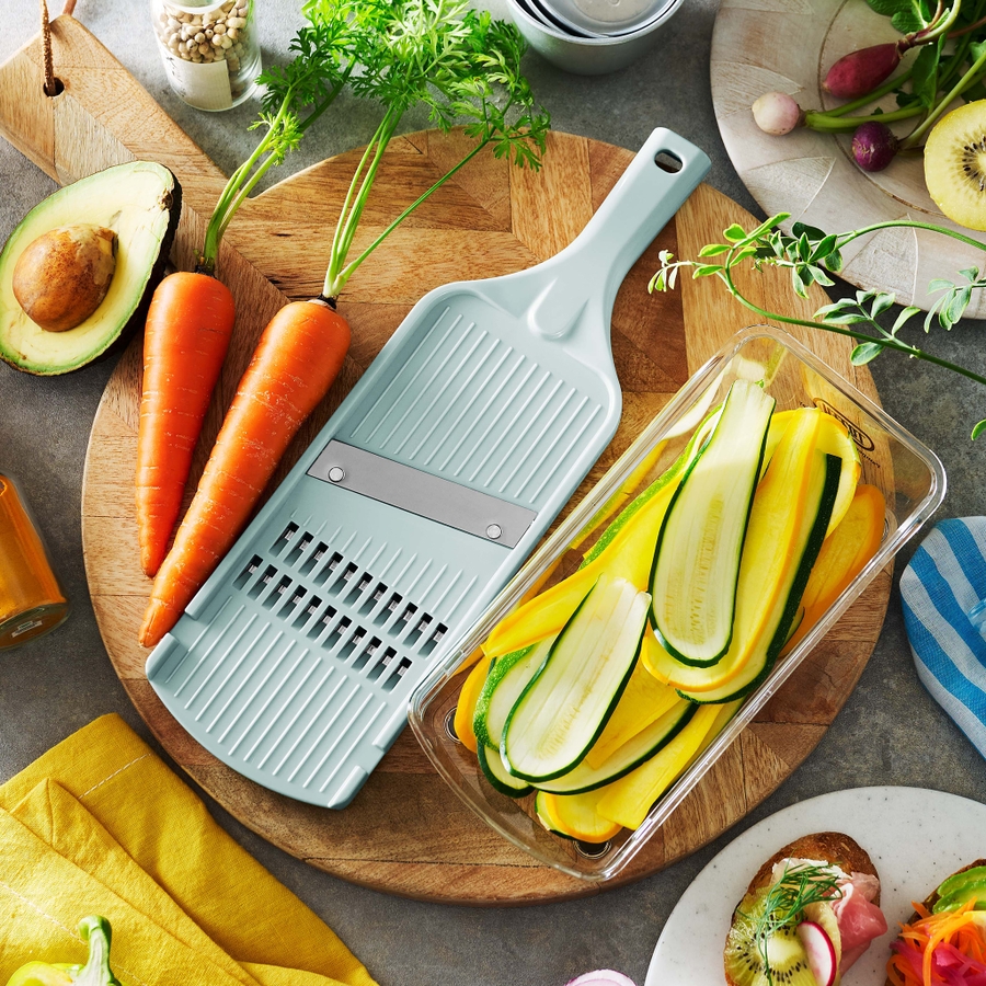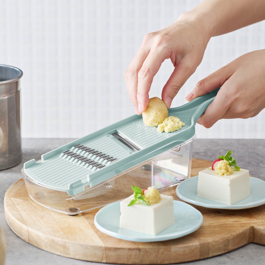 表面で薄切り、裏面で細切り&薬味おろしができる1台3役のハンディスライサー!