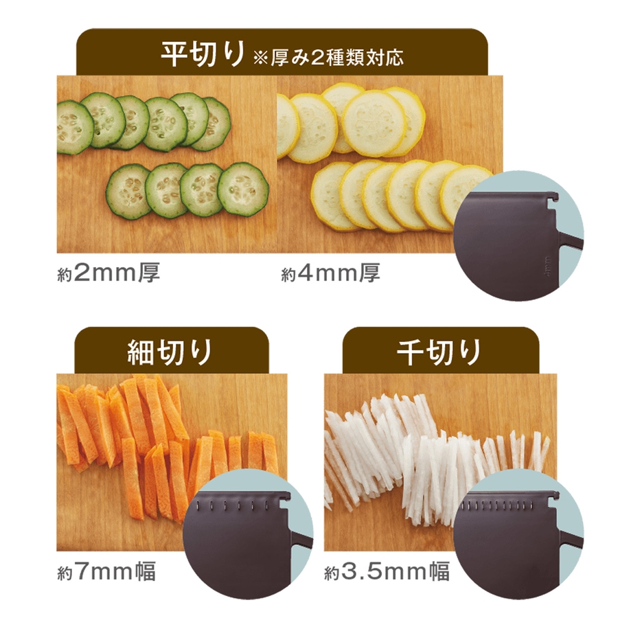 平切り・細切り・千切りの3WAYで毎日のお料理に大活躍!