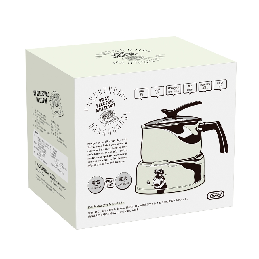 | ショップ情報 | "「Toffyが彩るとっておきな毎日!」 2016年にキッチン家電からスタートしたブランド【Toffy(トフィー)】。 朝食から午後のティータイムに、元気がほしい時やリラックスしたい時に、Toffyはいつだって私の味方。 シンプルで使いやすく、見た目もステキなアイテムは、毎日の暮らしをとっておきに彩ります。 Toffy storeは、そんなToffyのキッチン家電をはじめ、「幸せをお手伝いするアイテム」を取り揃えています。 |