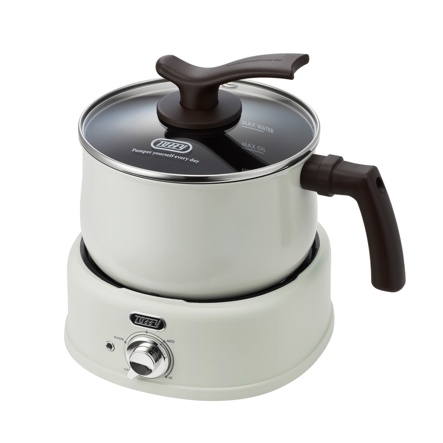 コンパクトながら1.6Lとたっぷり容量!火力は保温~約240℃まで細かく無段階調節ができ、