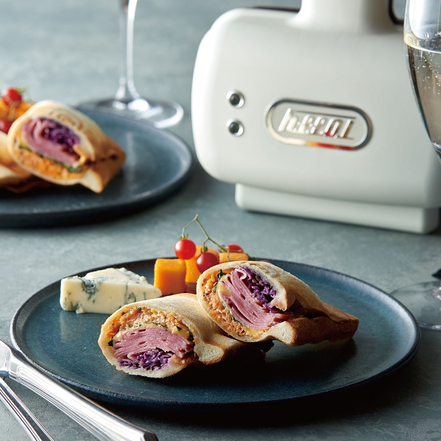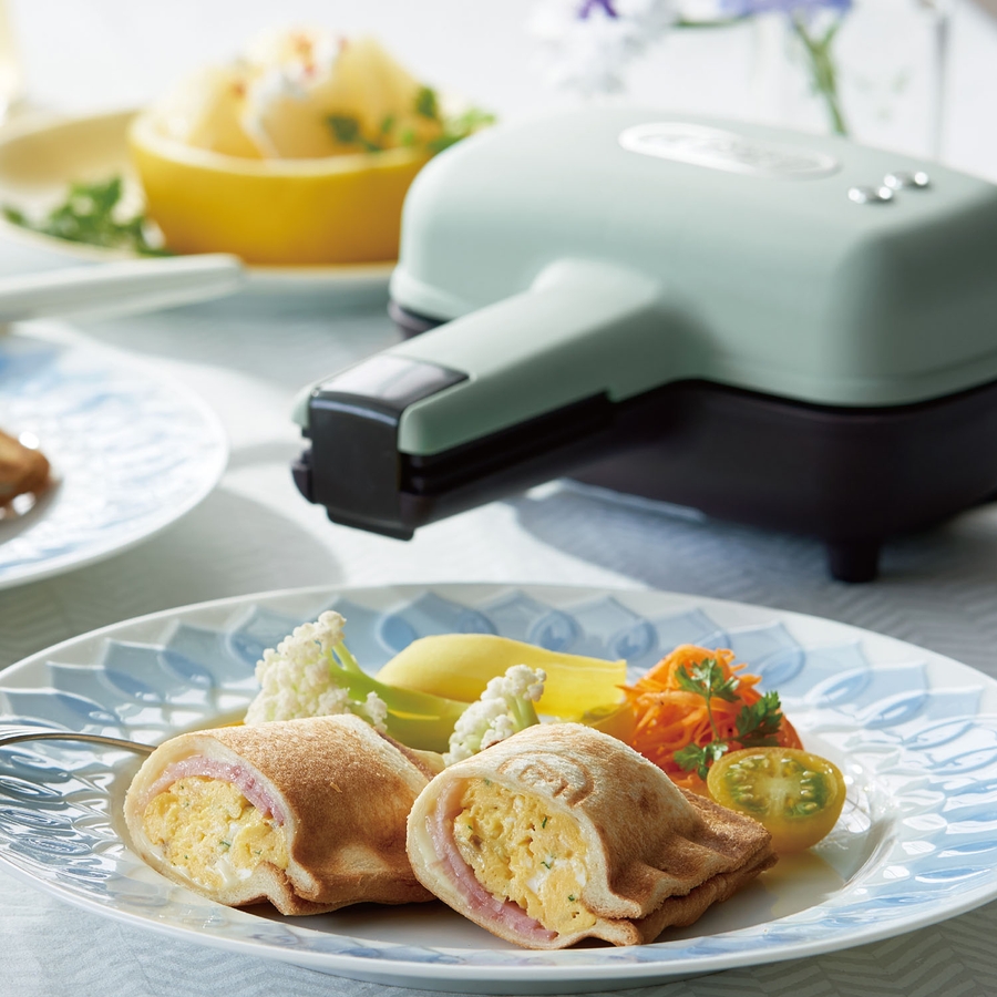 一枚の食パンを折りたたんで作る“ハーフホットサンド”ができる電気ホットサンドメーカー。