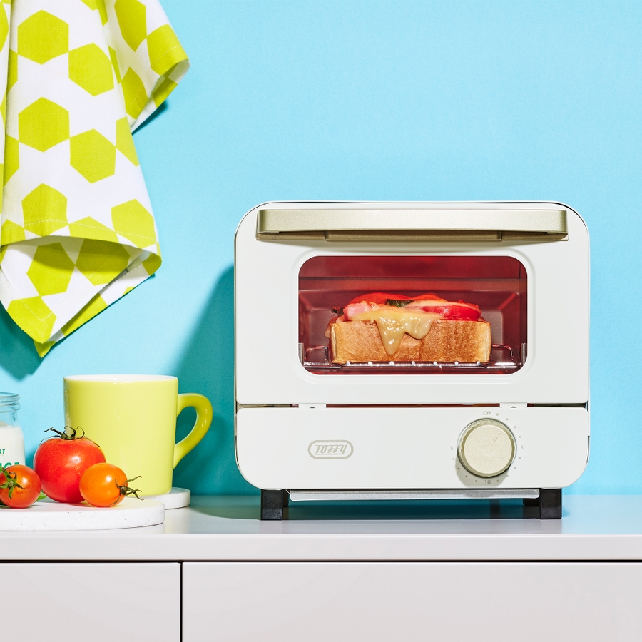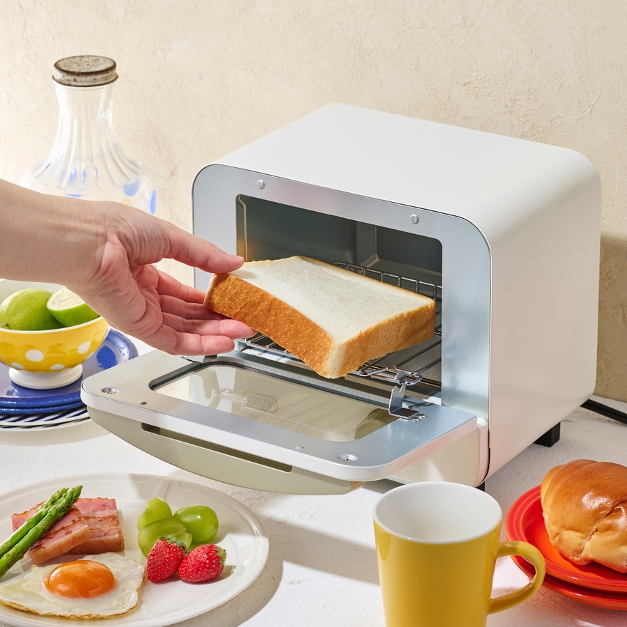 食パン1枚がすっきり入って、かさばらないミニサイズのかわいい卓上トースター。