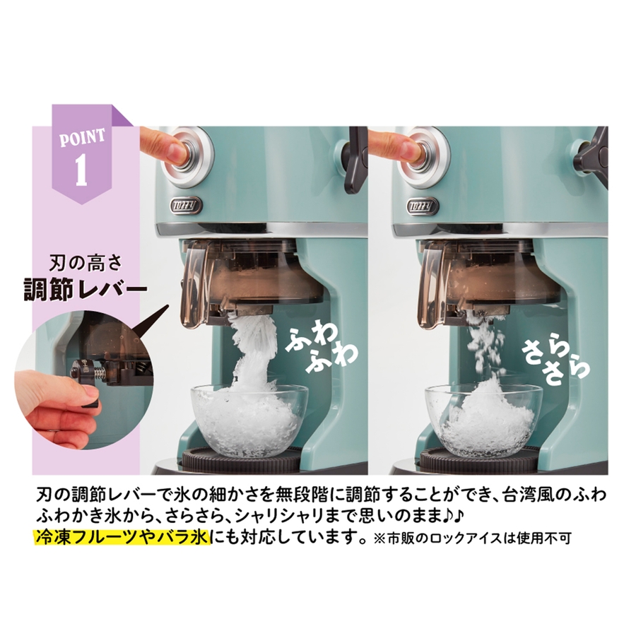 さらにふわふわなかき氷が作れ、なめらかな食感がいっそう楽しめる!!