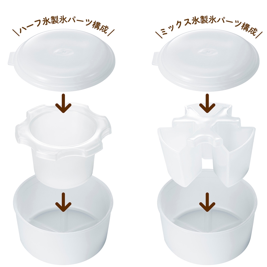 ハーフ氷やミックス氷にも対応する製氷パーツが付属!