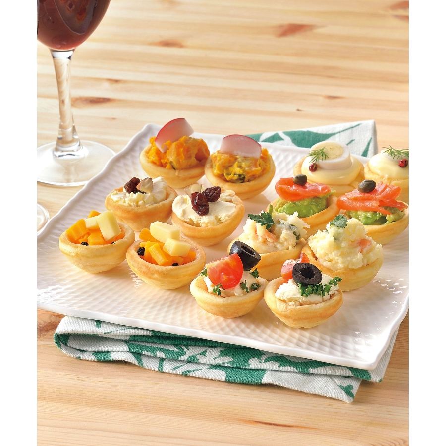 ●焼いてスタンプ! たこ焼き器とホットケーキミックスで簡単にプチカップが作れます。サクサク食感のプチカップにお好きな食材を入れて楽しめます。 お好みのアレンジでデザートからおつまみまで!